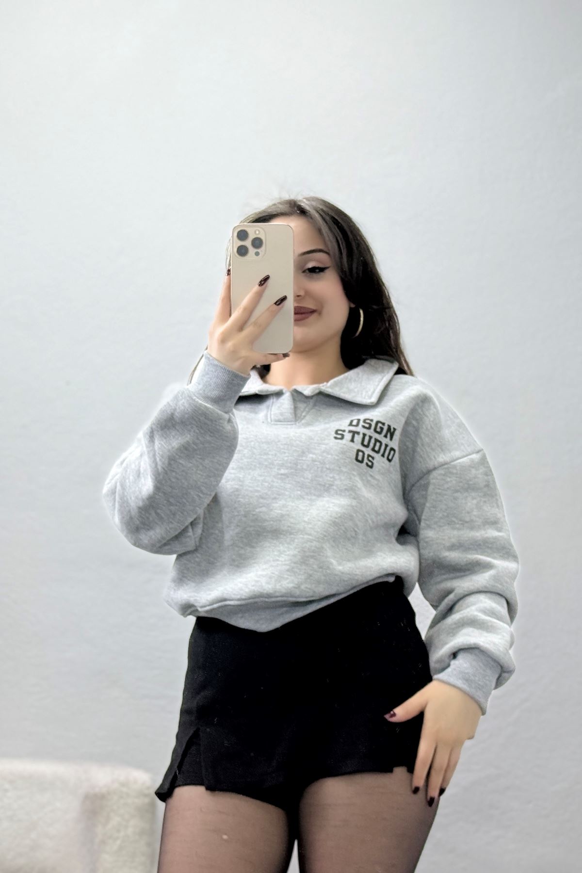 3 İplik Şardonlu Polo Yaka Baskılı Sweat Gri - 42602.1878.