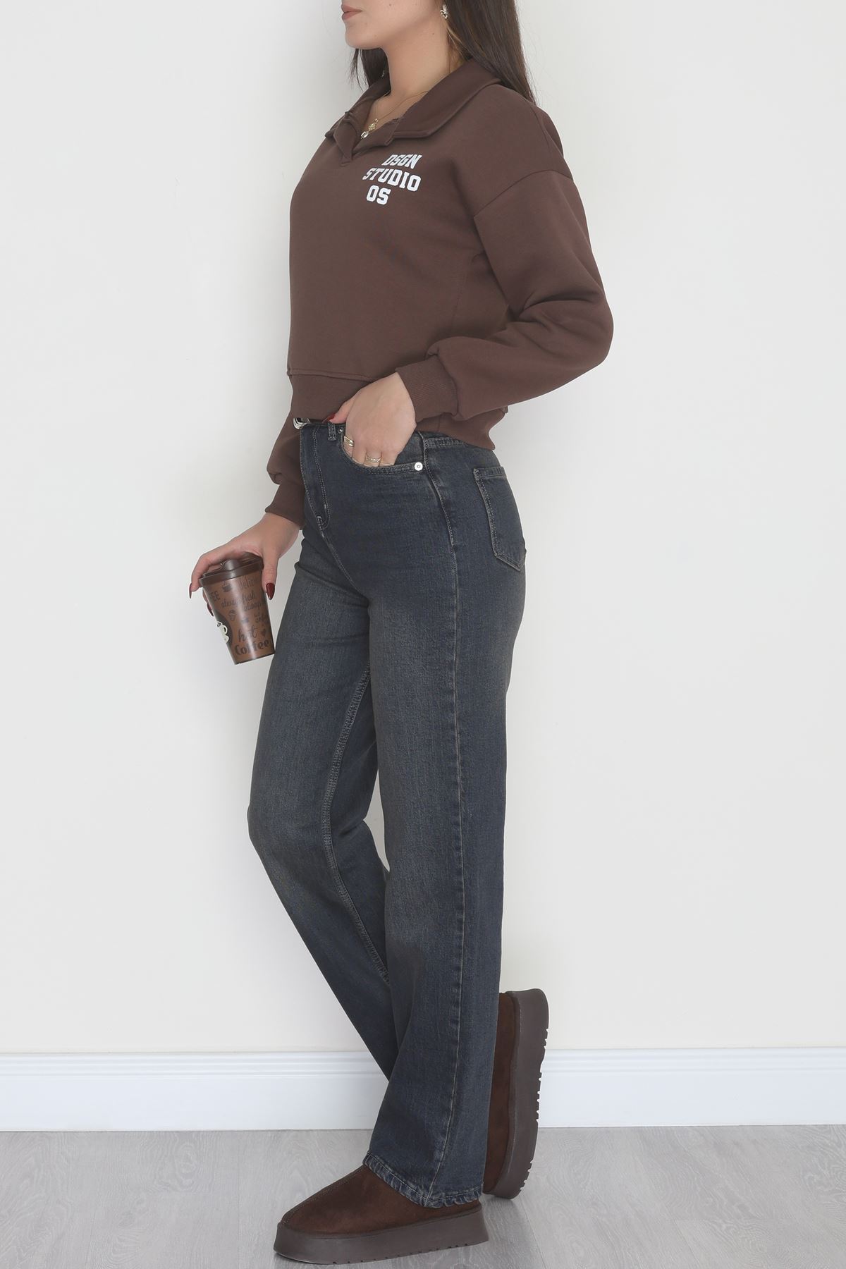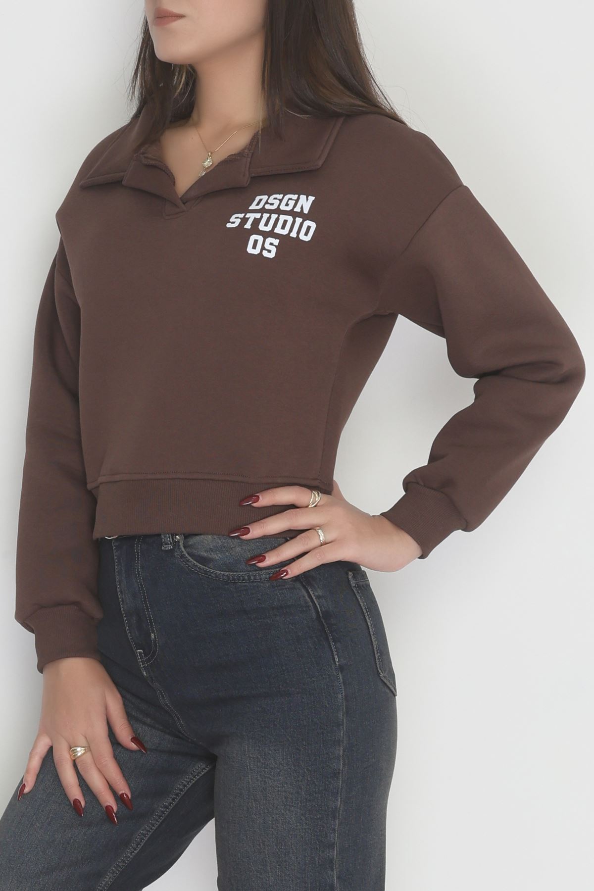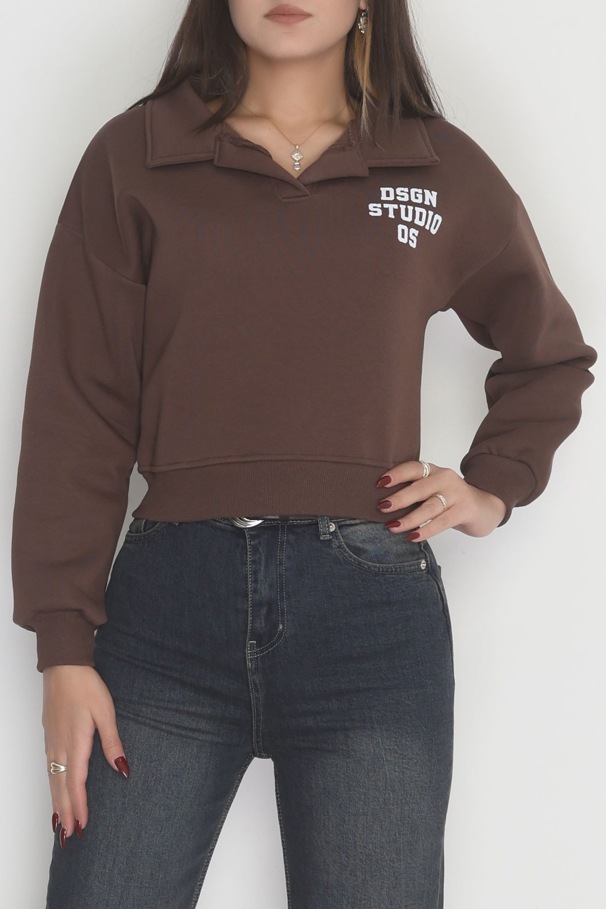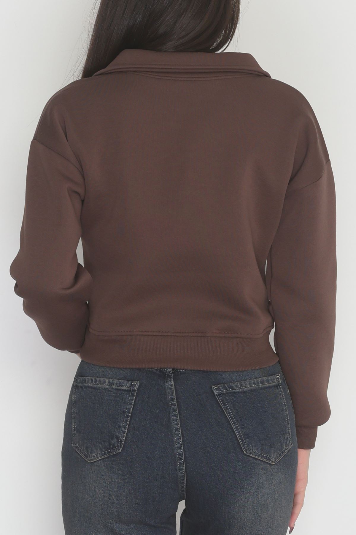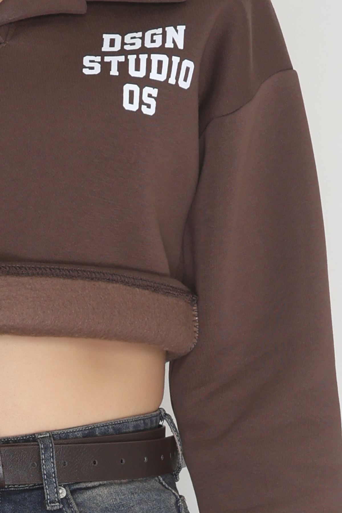 3 İplik Şardonlu Polo Yaka Baskılı Sweat Kahve - 42602.1878.