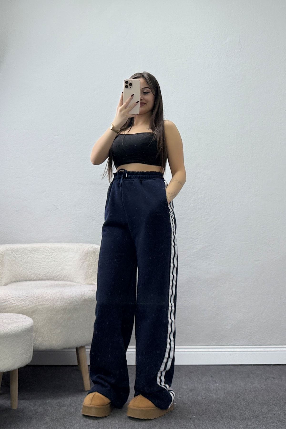 3 İplik Şardonlu Şeritli Eşofman Altı Lacivert - 52023.1857.