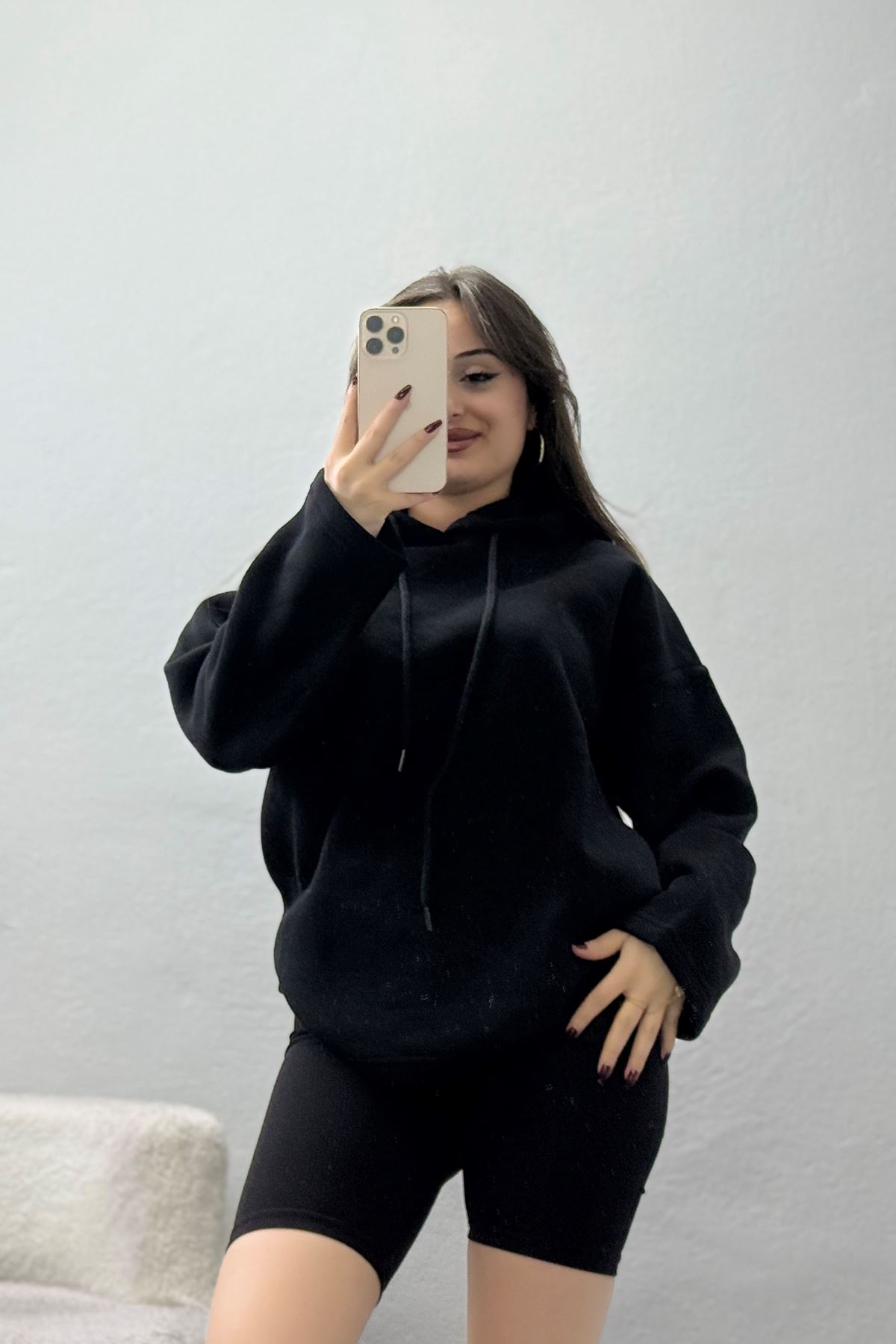 3 İplik Şardonlu Sweat Siyah - 42610.1878.