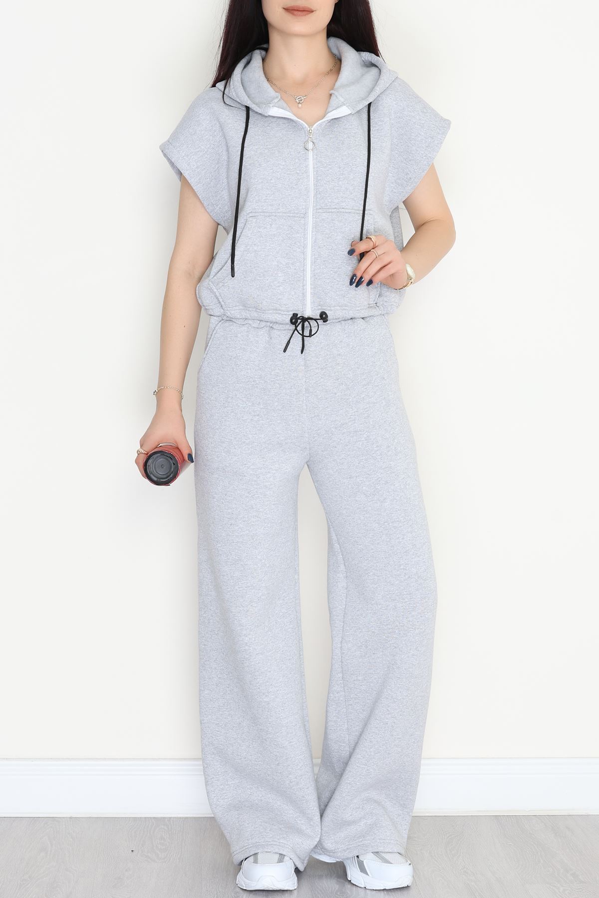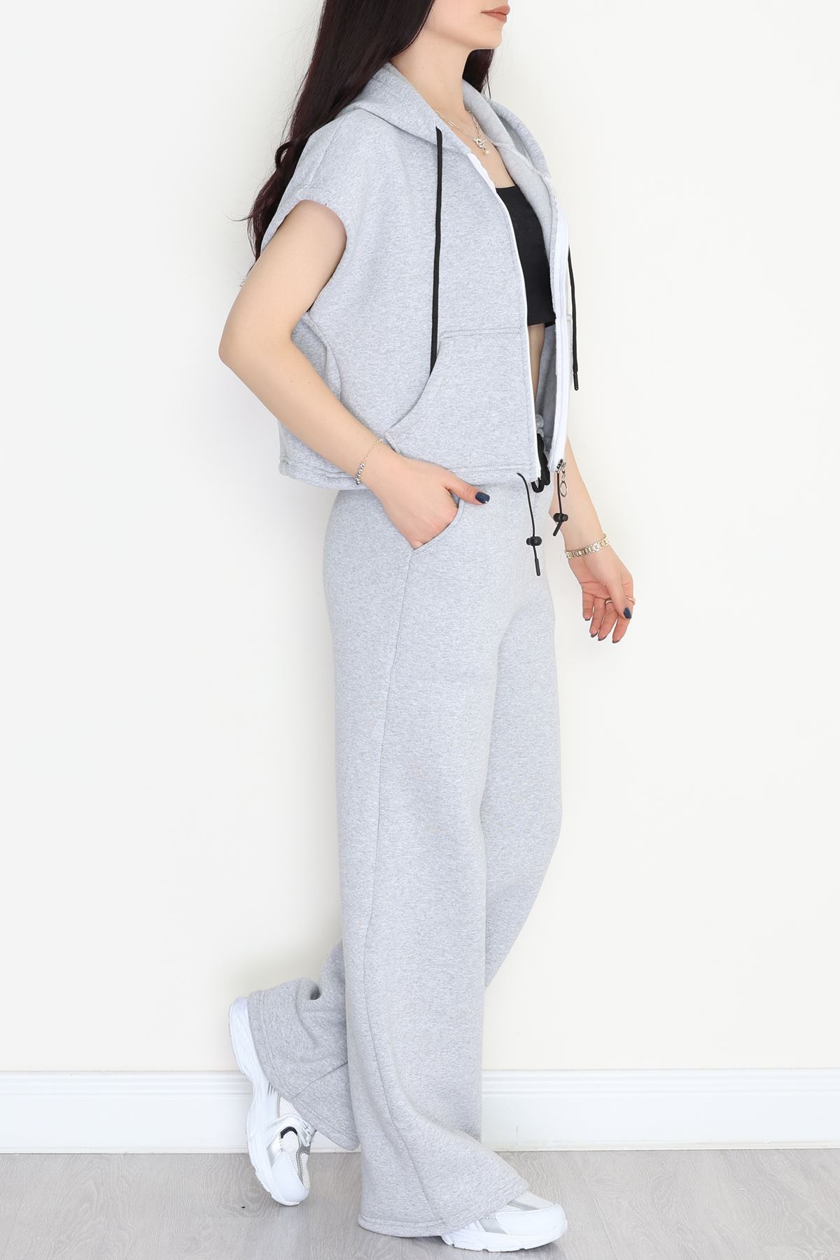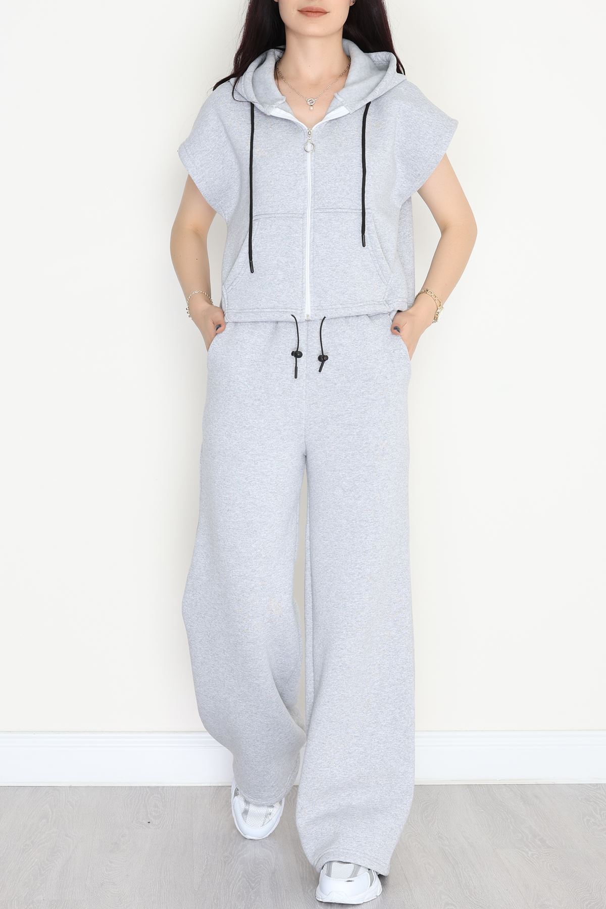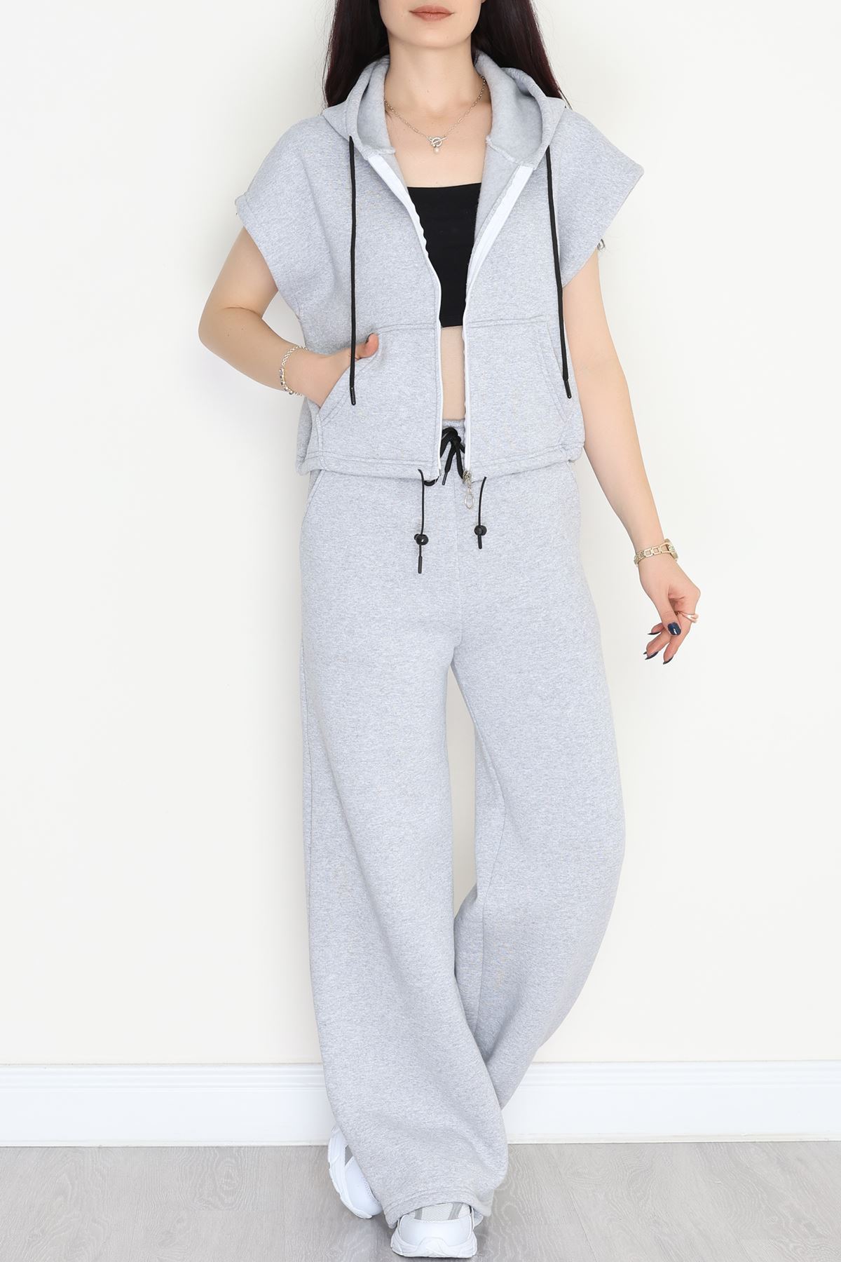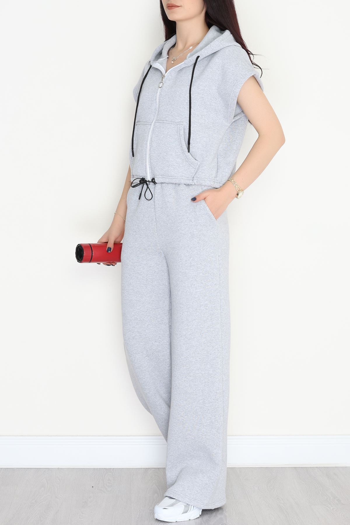 3 İplik Şardonlu Yelekli Takım Açıkgri - 42200.1857.