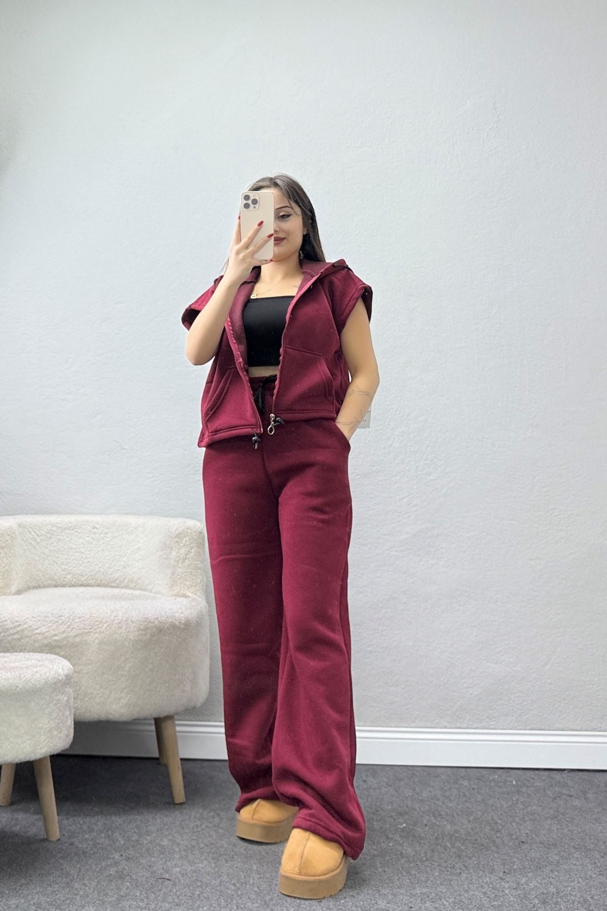 3 İplik Şardonlu Yelekli Takım Bordo - 42200.1857.