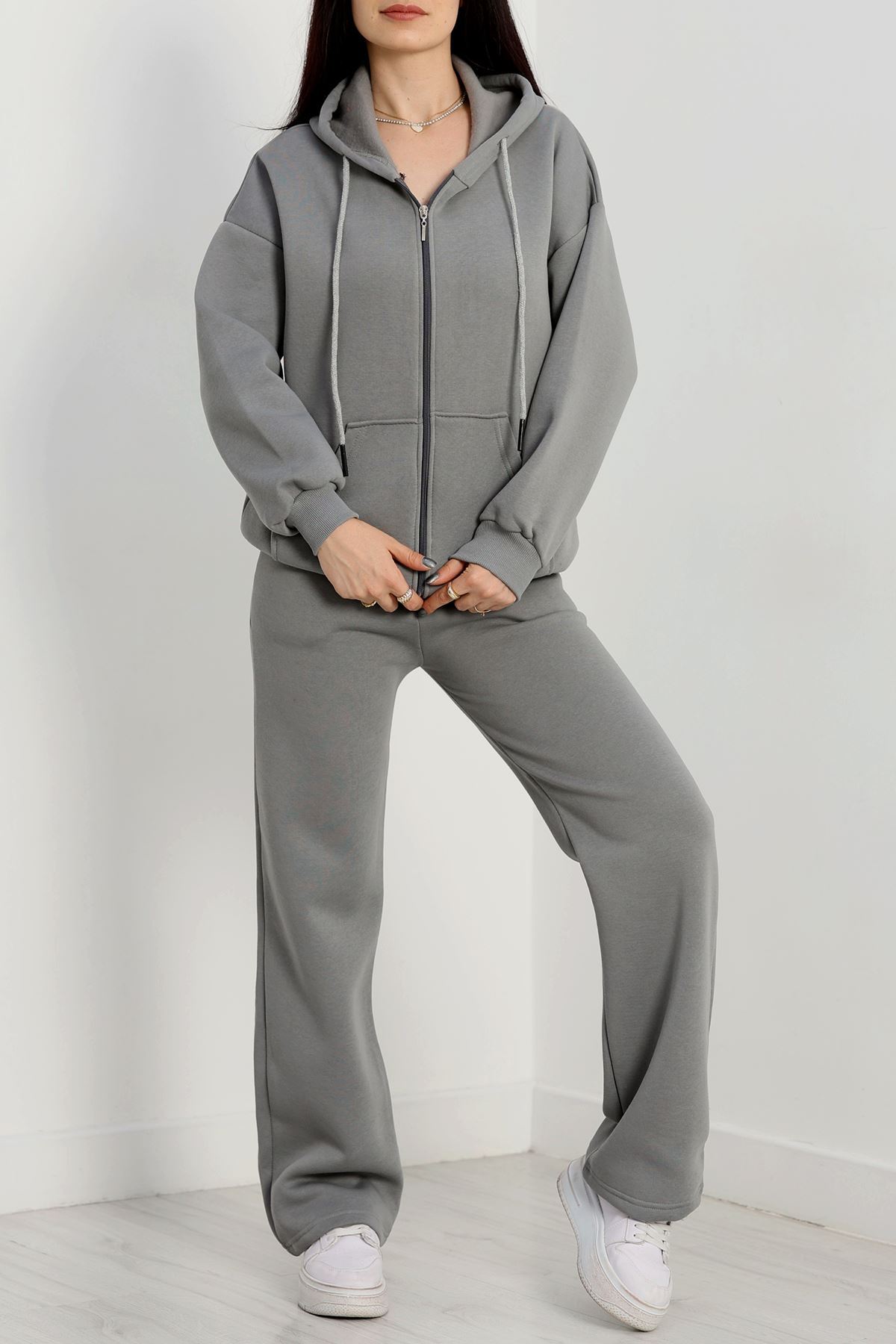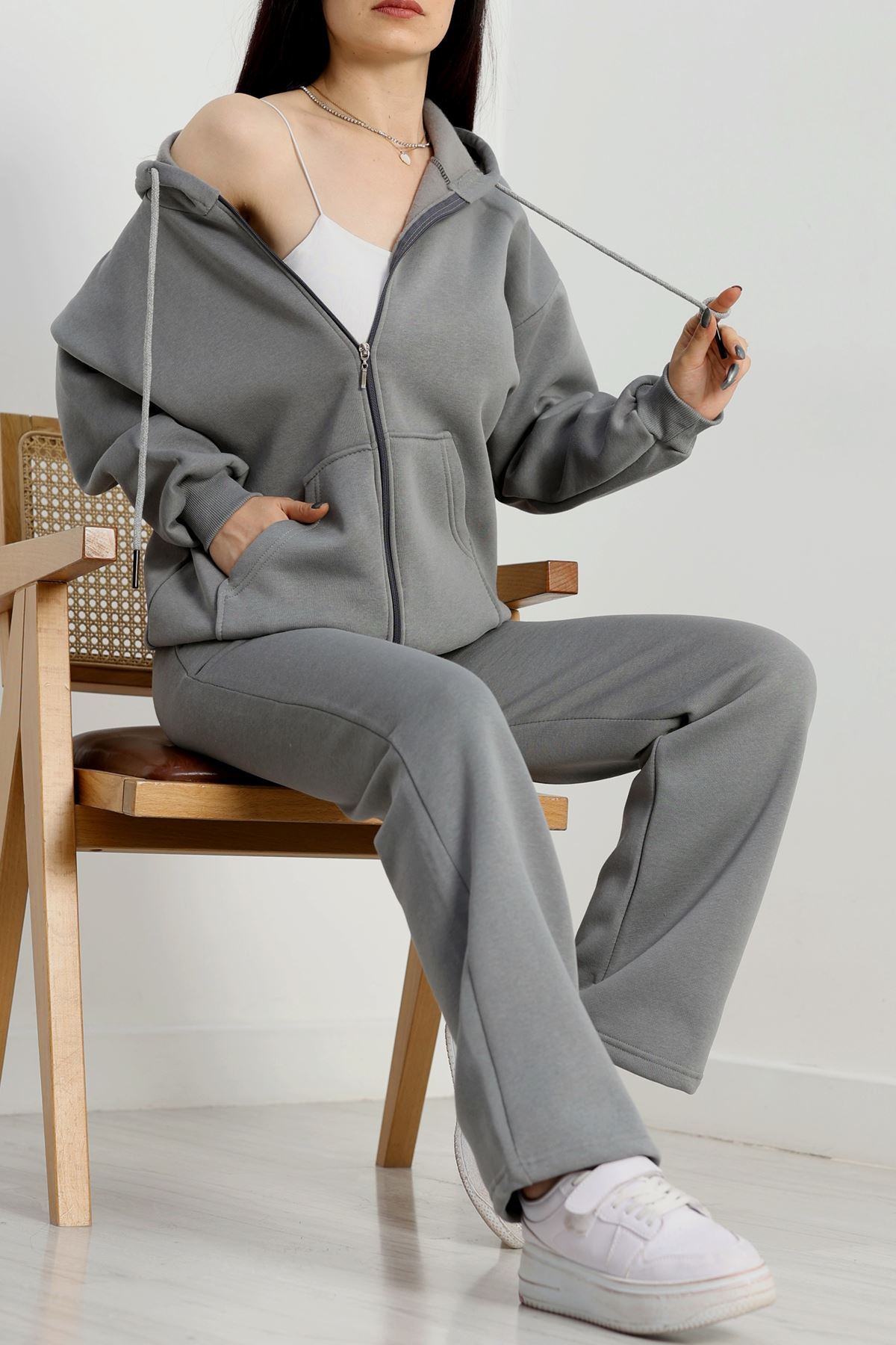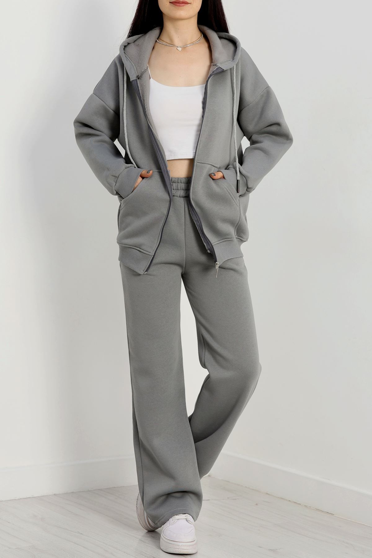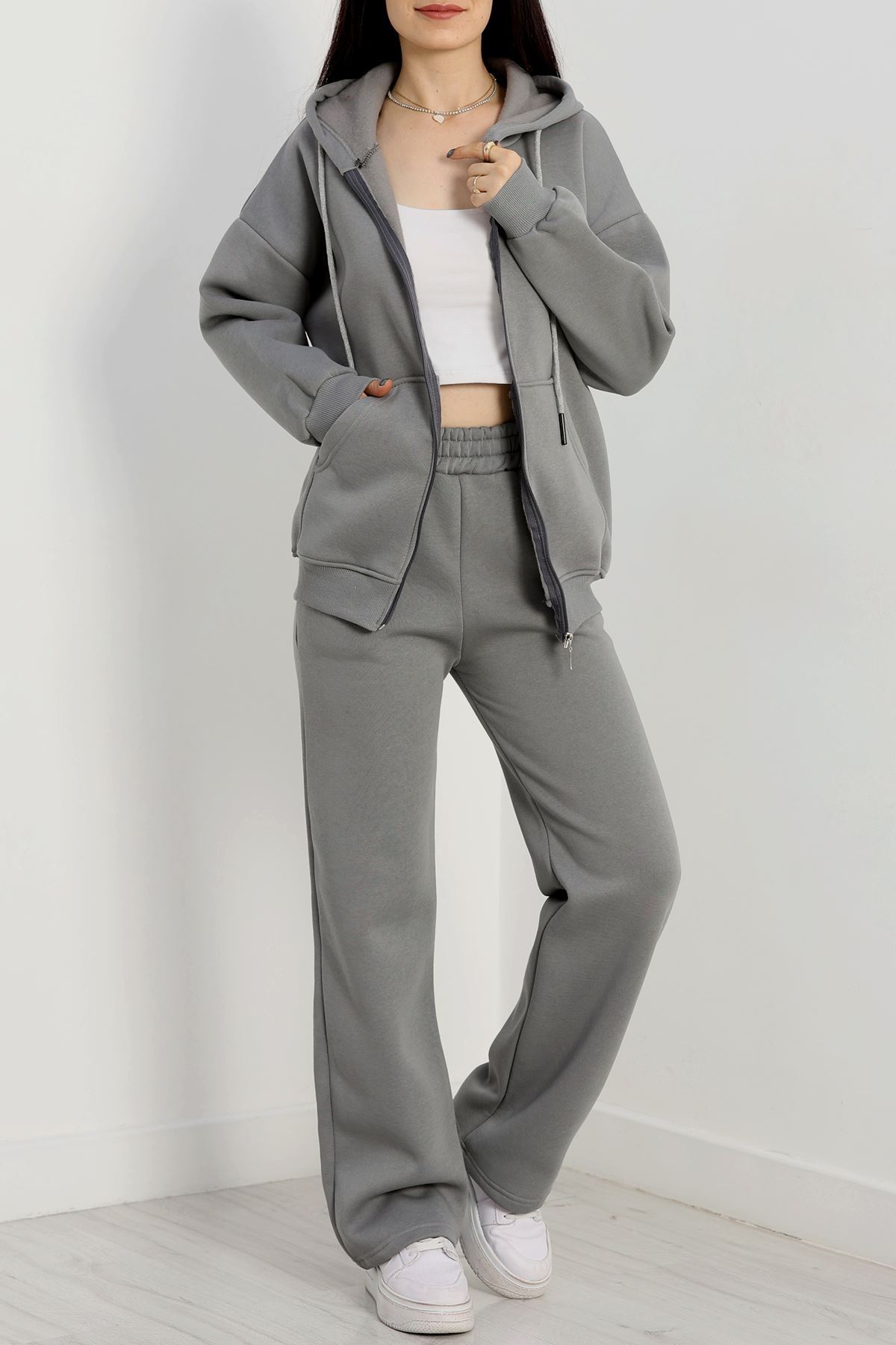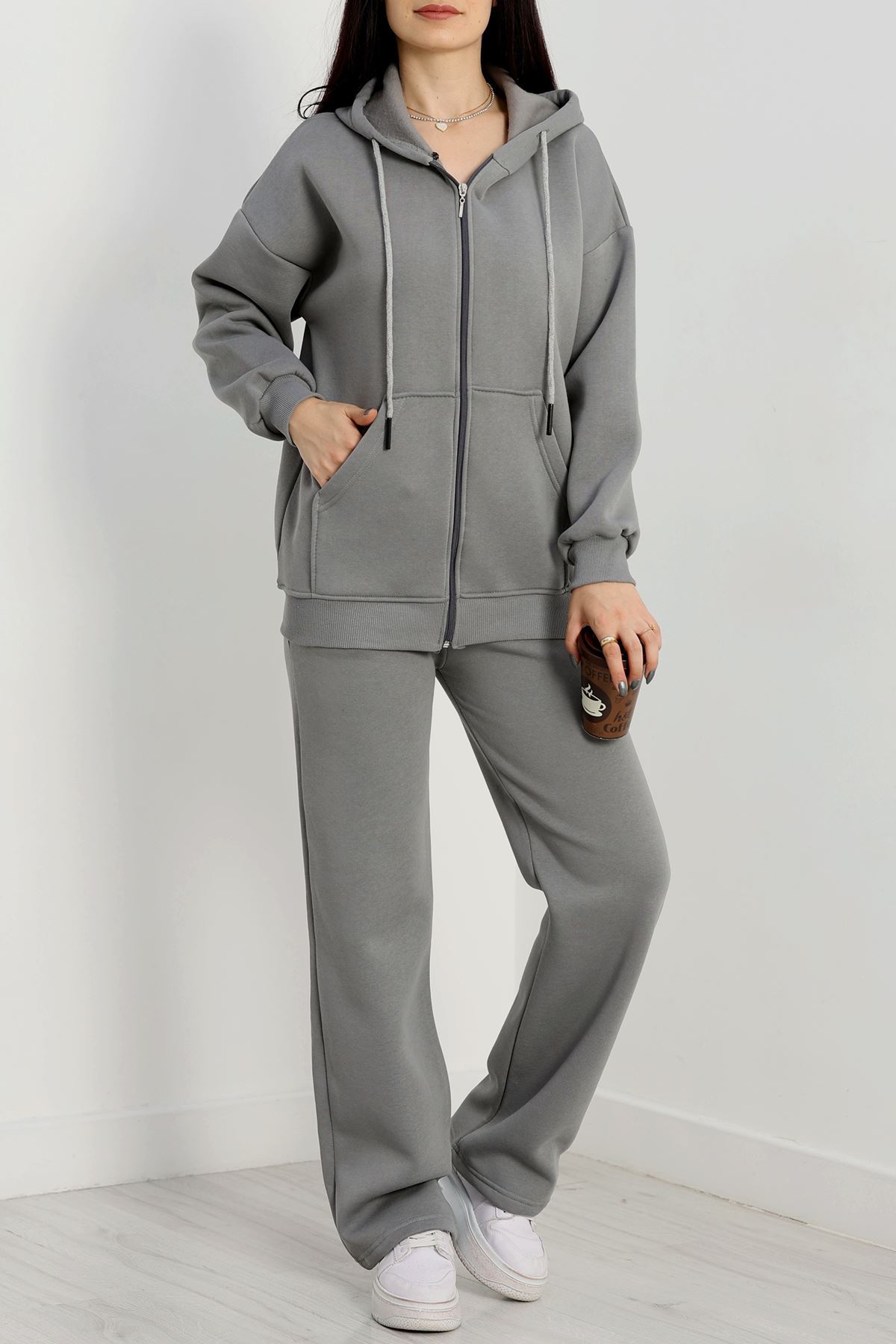 Biyeli Baskılı 2 İplik Eşofman Takımı Füme - 50791.1857.