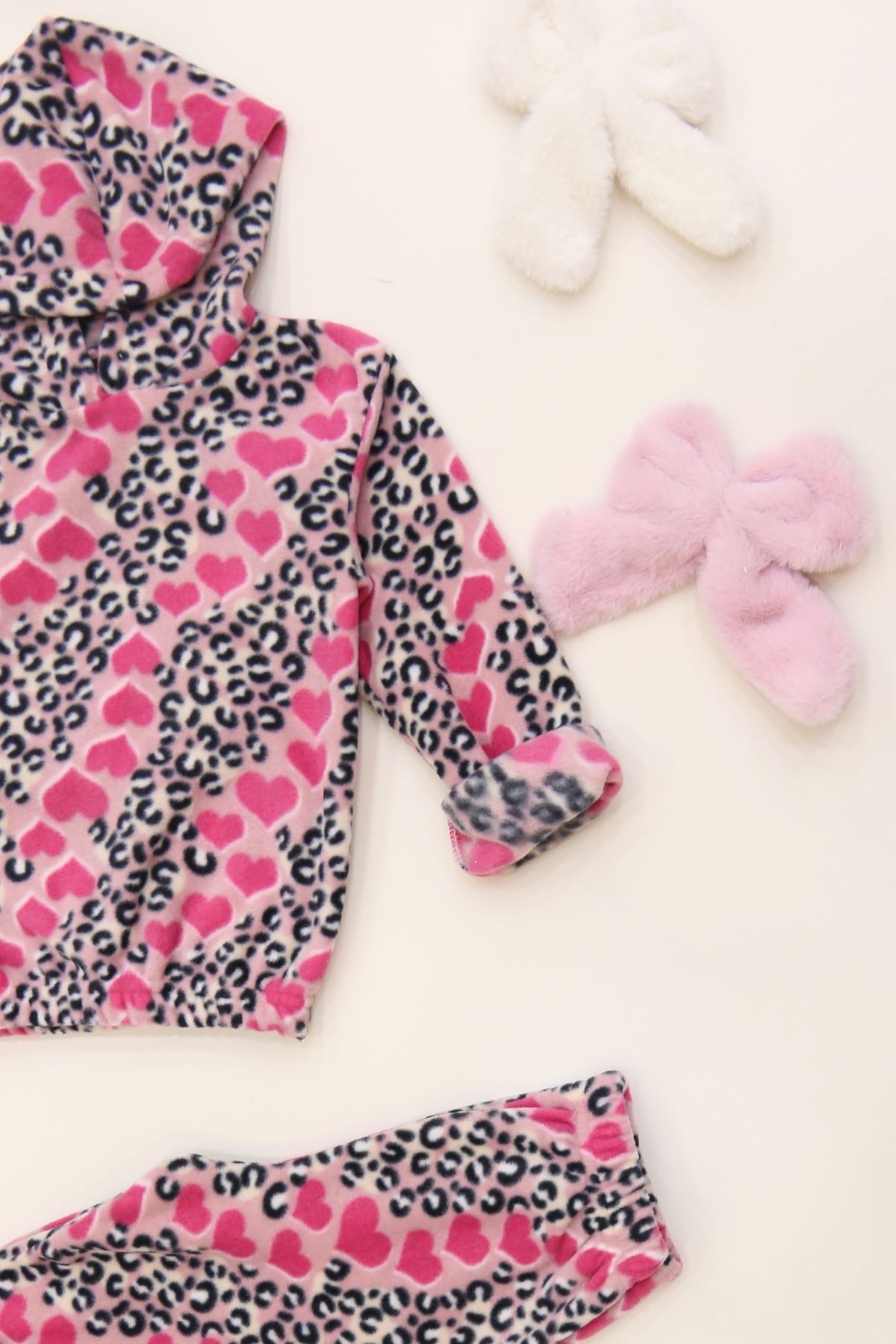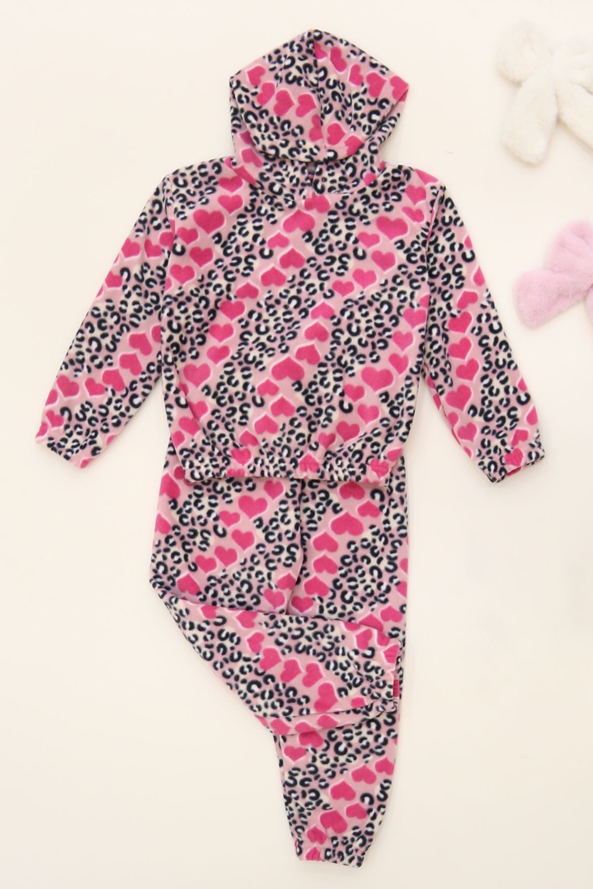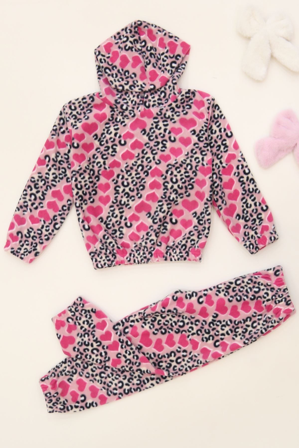 4-10 Yaş Polar Kapşonlu İkili Takım Pembeleopar - 52076.1776.