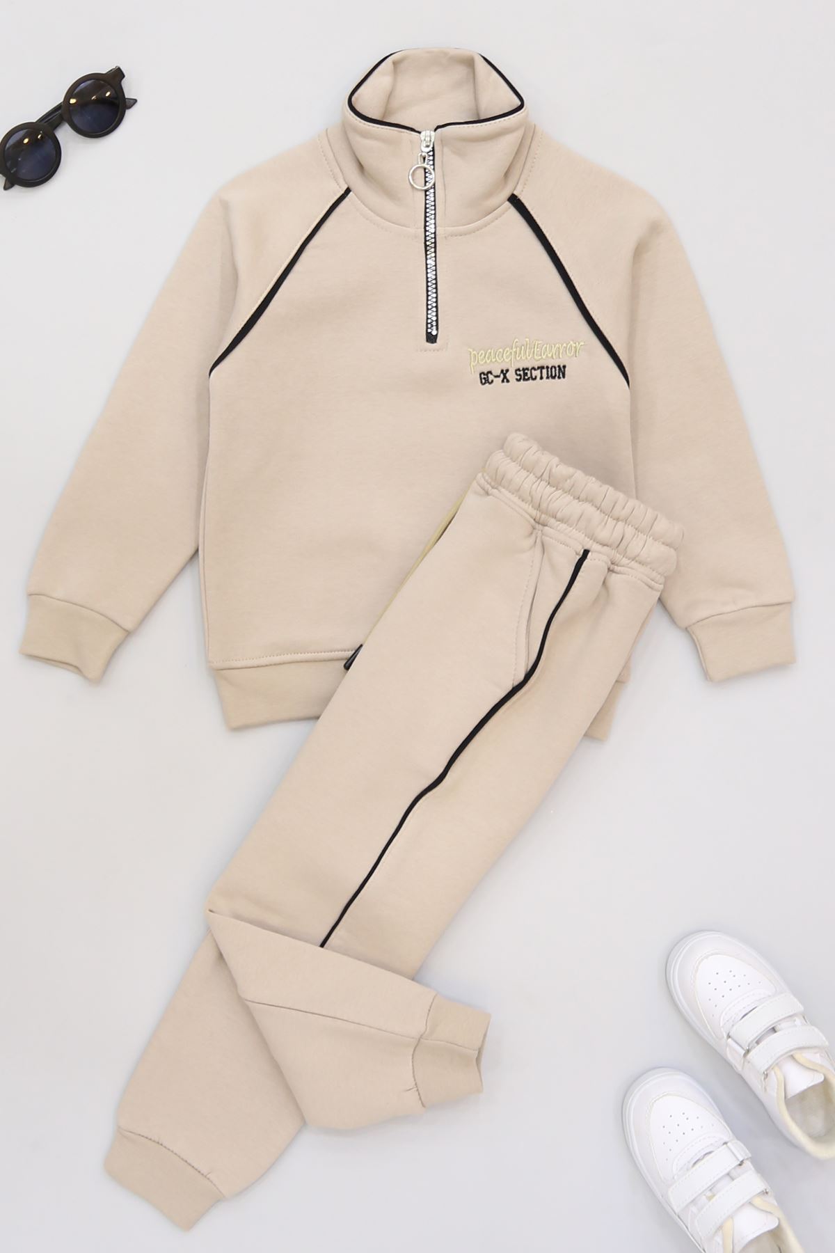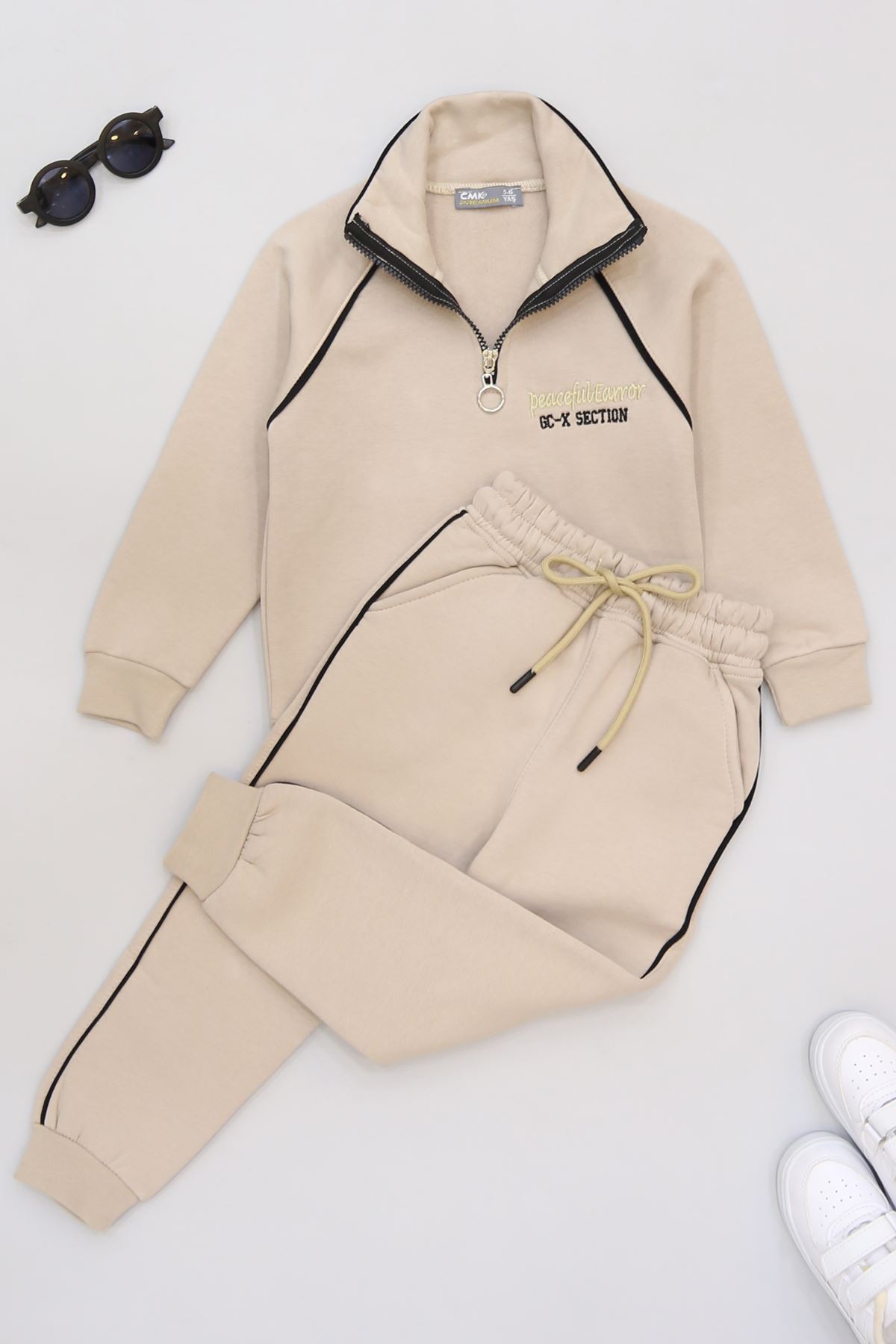 5-12 Yaş 3 İplik Şardonlu Biyeli Takım Bej - 60200.1867.
