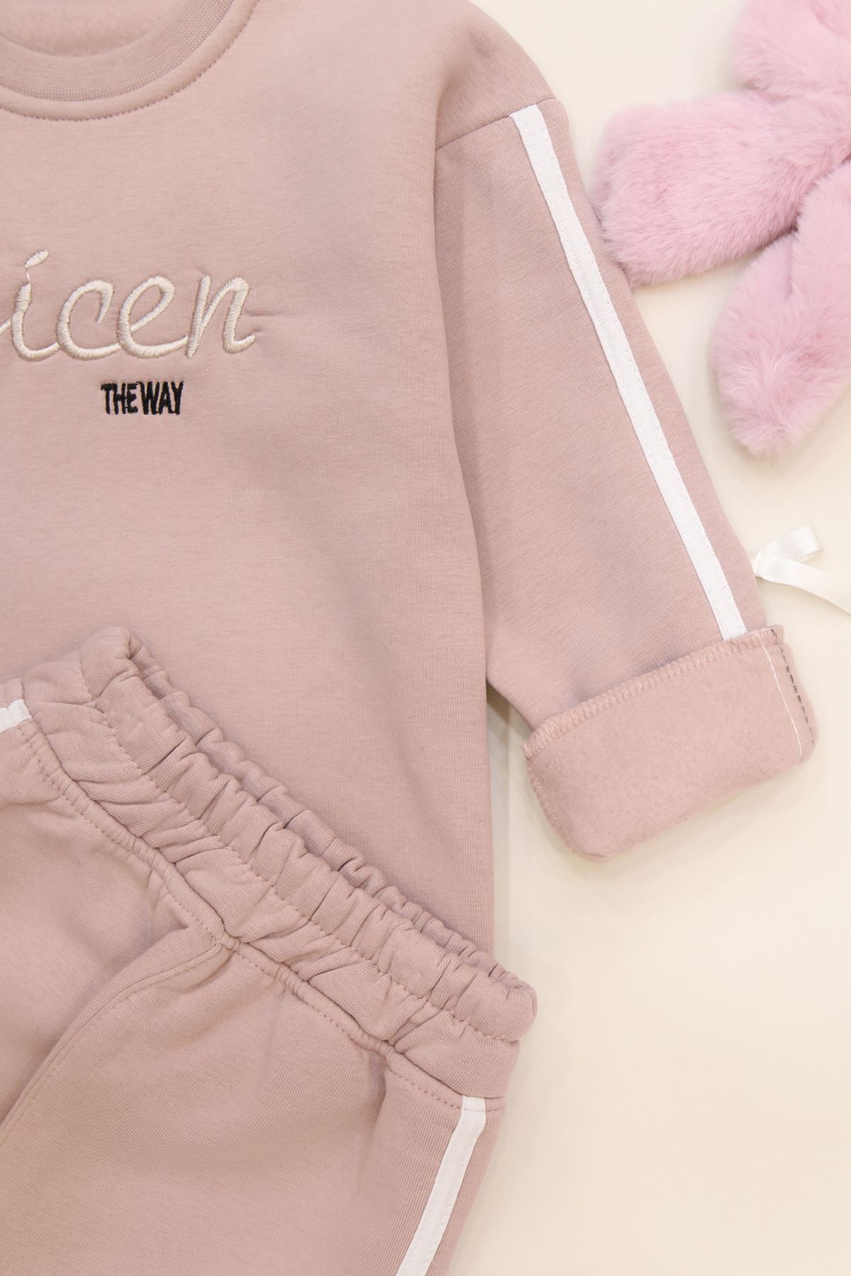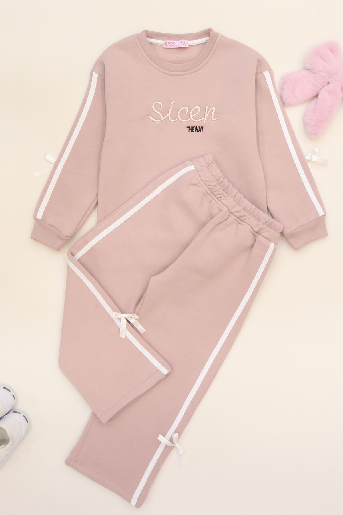 5-12 Yaş 3 İplik Şardonlu Fiyonklu Takım Pudra - 60335.1867.