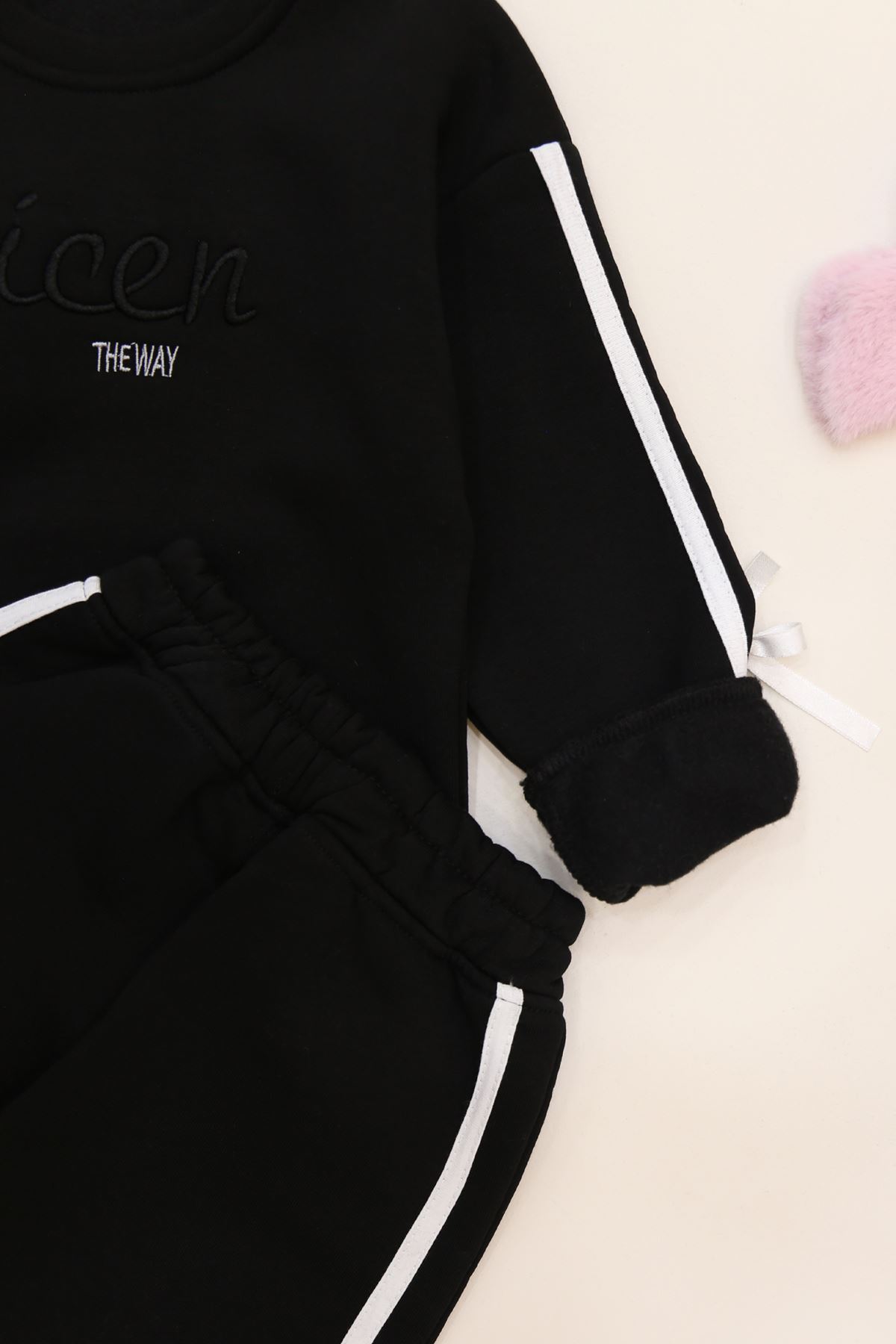 5-12 Yaş 3 İplik Şardonlu Fiyonklu Takım Siyah - 60335.1867.