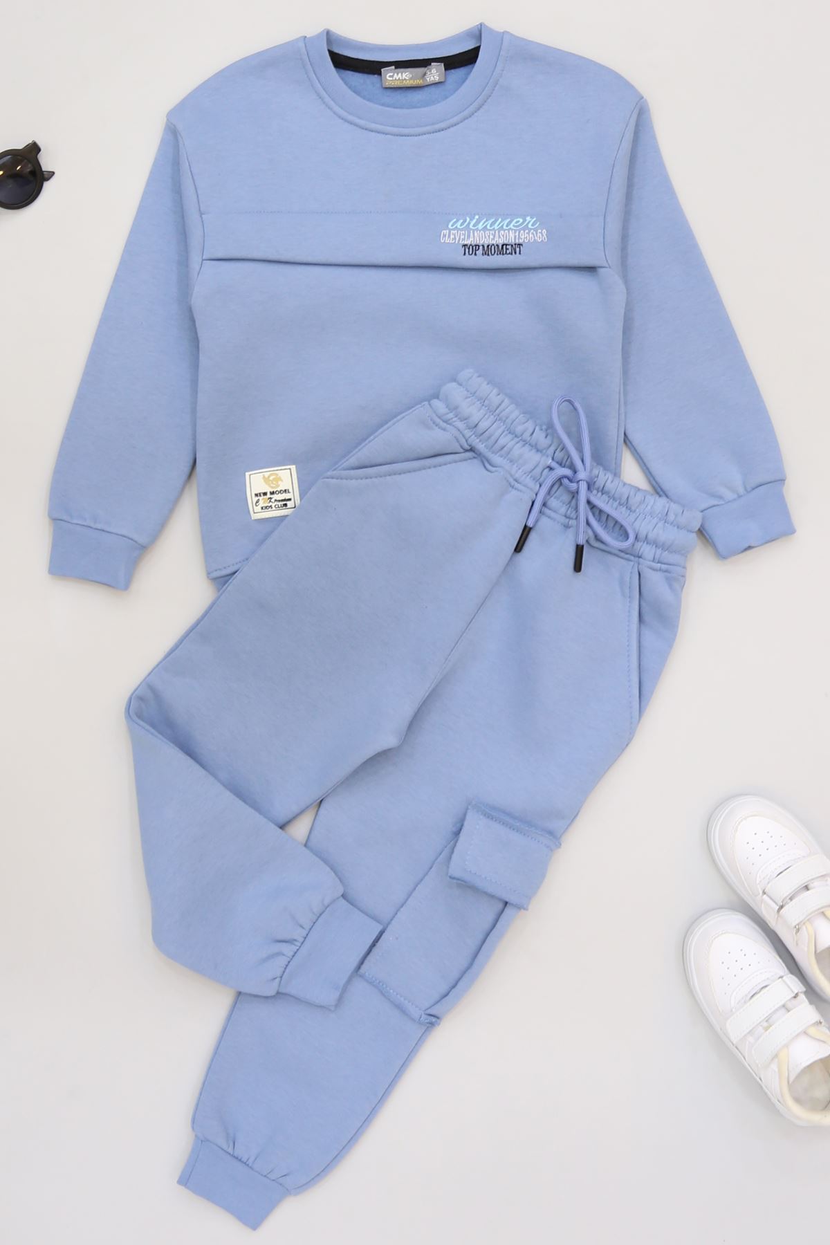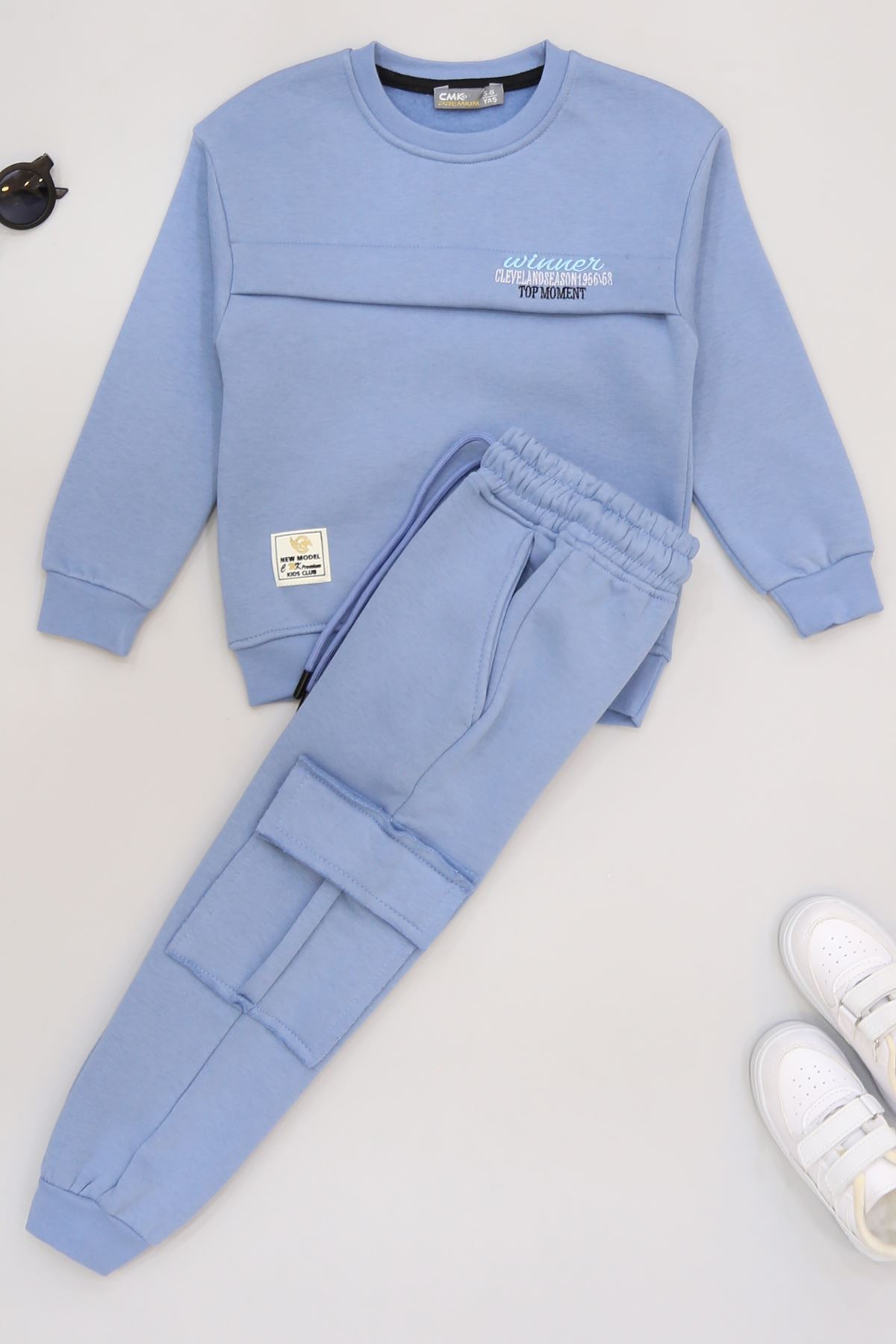 5-12 Yaş 3 İplik Şardonlu Kargo Cep Takım Mavi - 60205.1867.