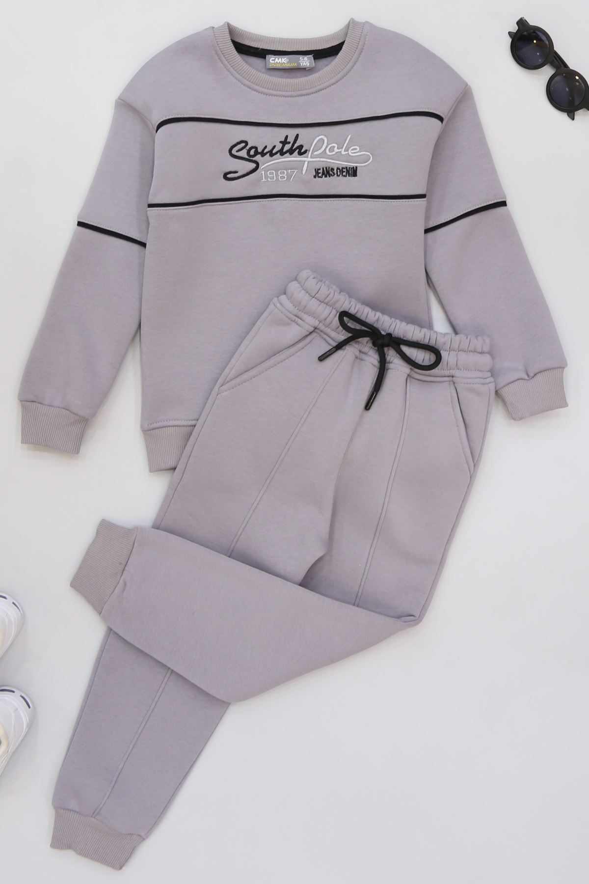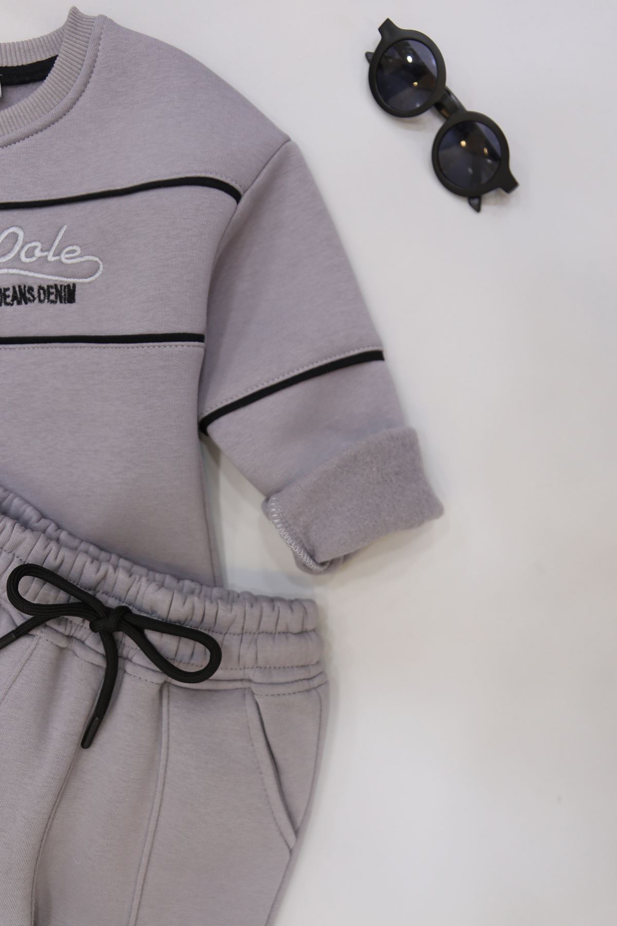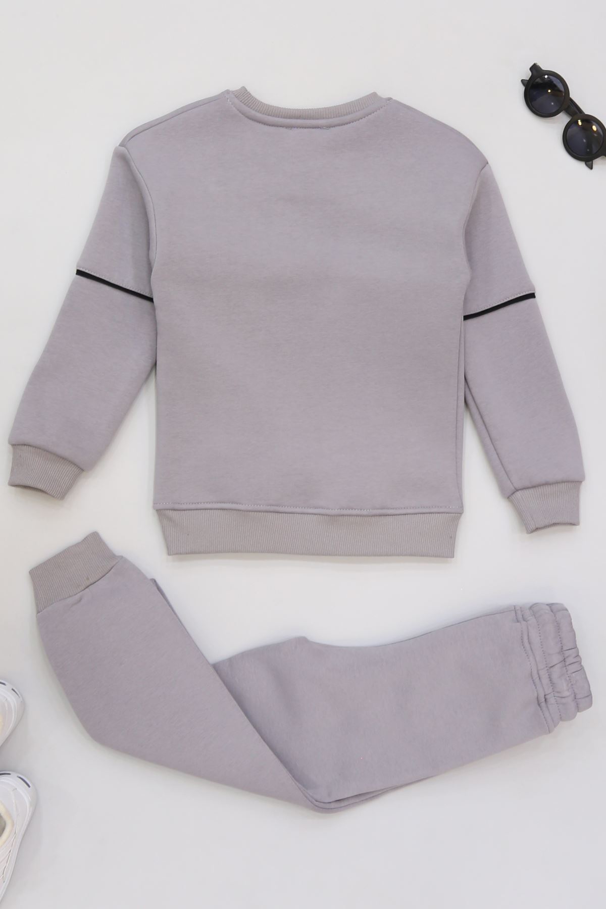 6-9 Yaş Şardonlu Yumoş Kumaş Takım Gri - 2264252.1576.