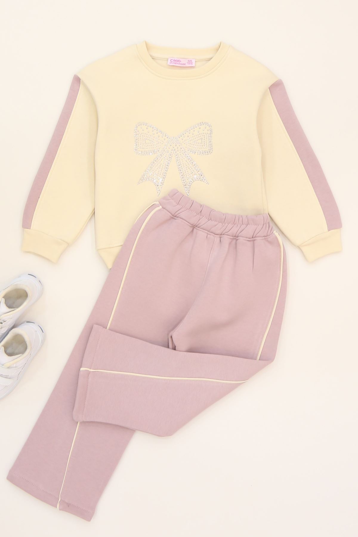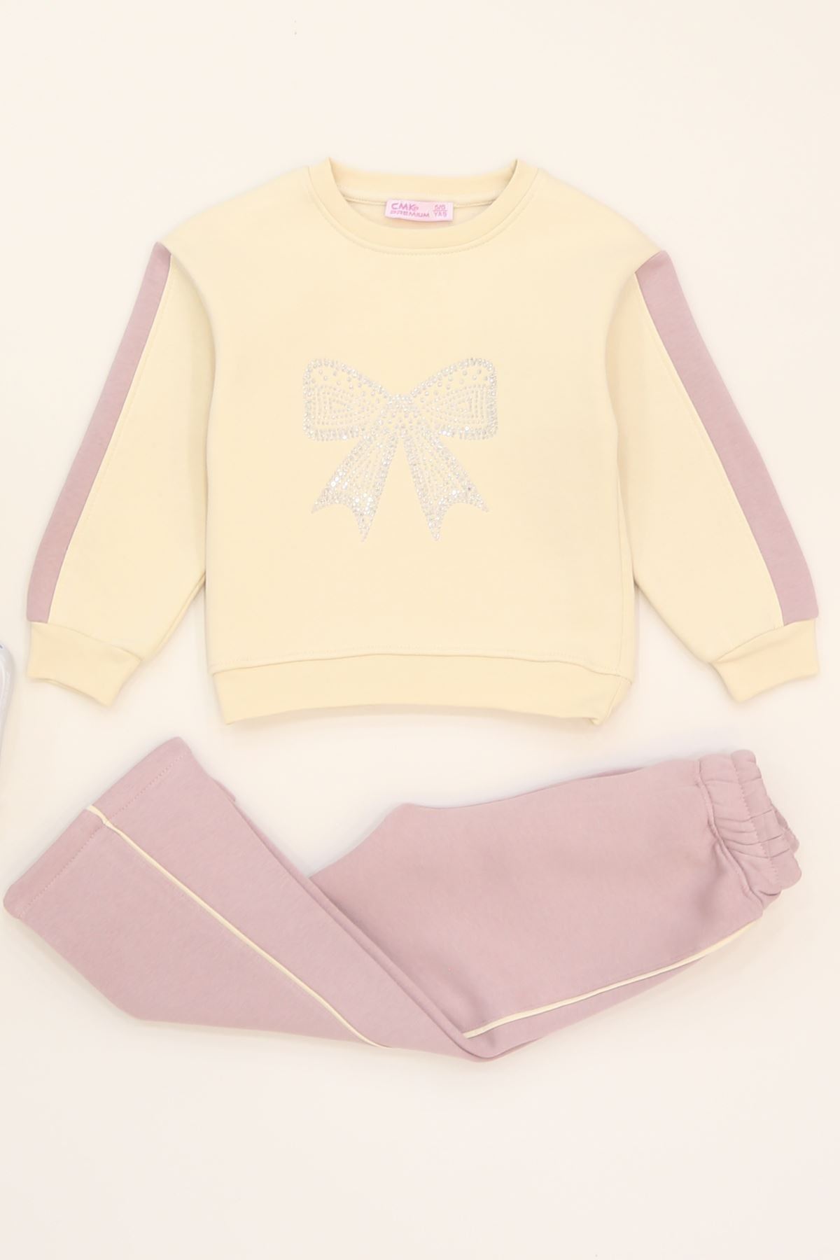 5-12 Yaş 3 İplik Şardonlu Taşlı Takım Açıkpudra - 60330.1867.