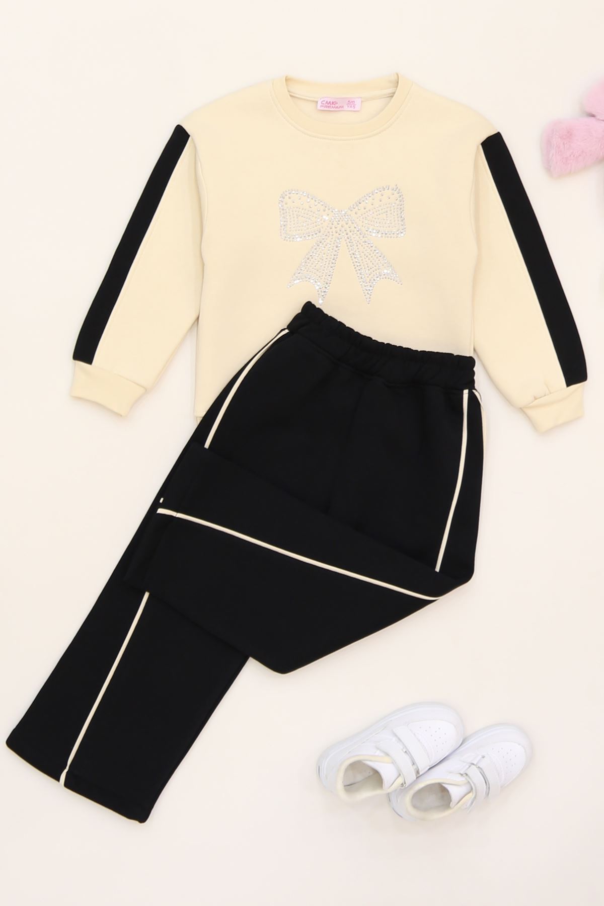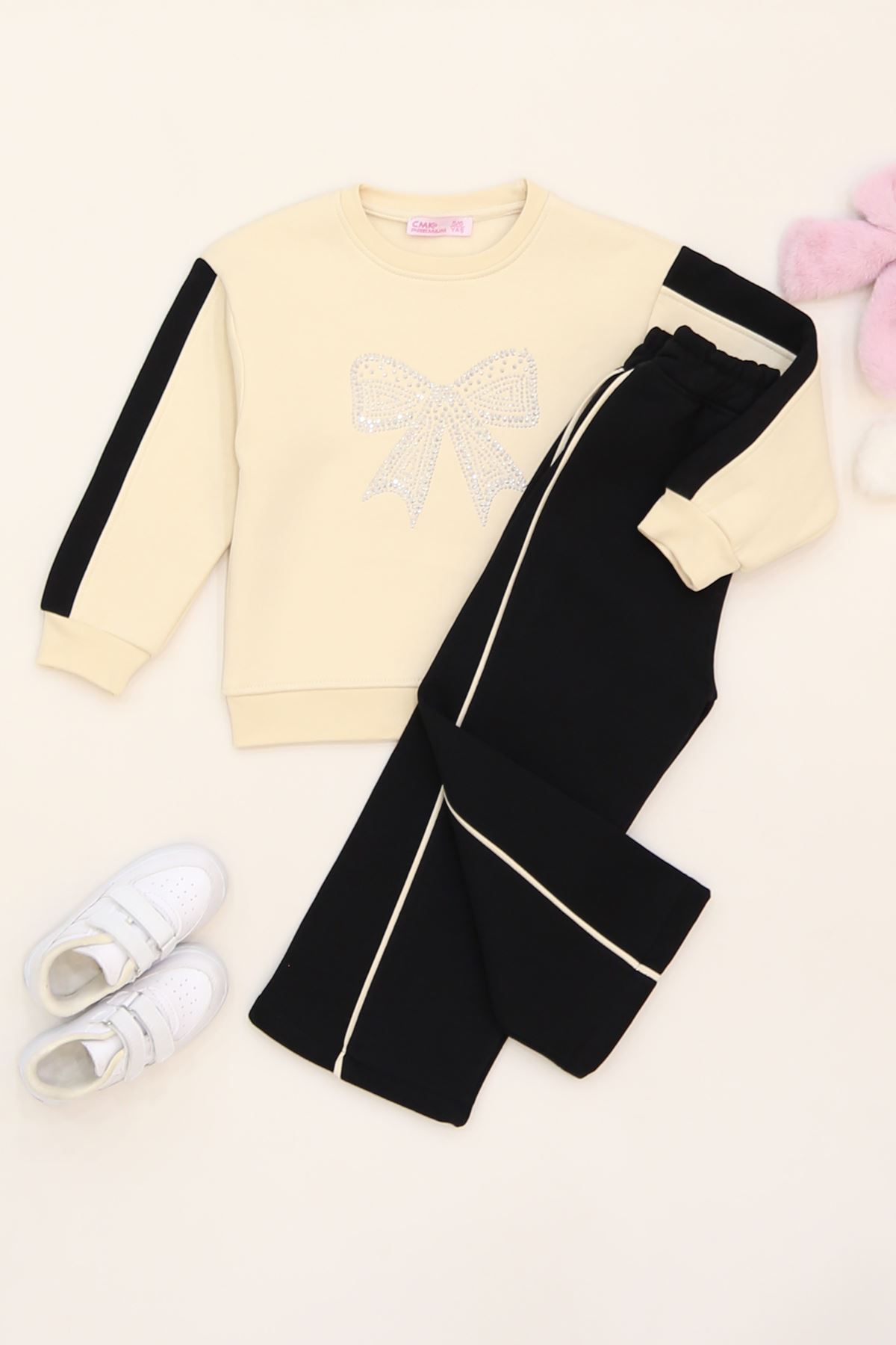 5-12 Yaş 3 İplik Şardonlu Taşlı Takım Siyah - 60330.1867.