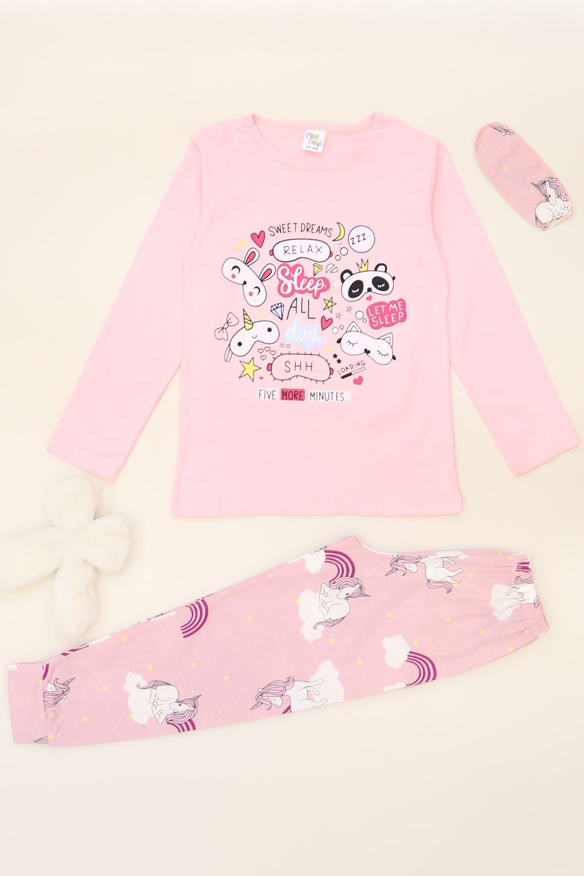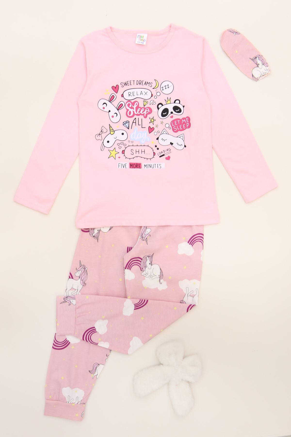 5-12 Yaş Süprem Penye Pijama Takımı Pembebeyaz - 52081.1951.