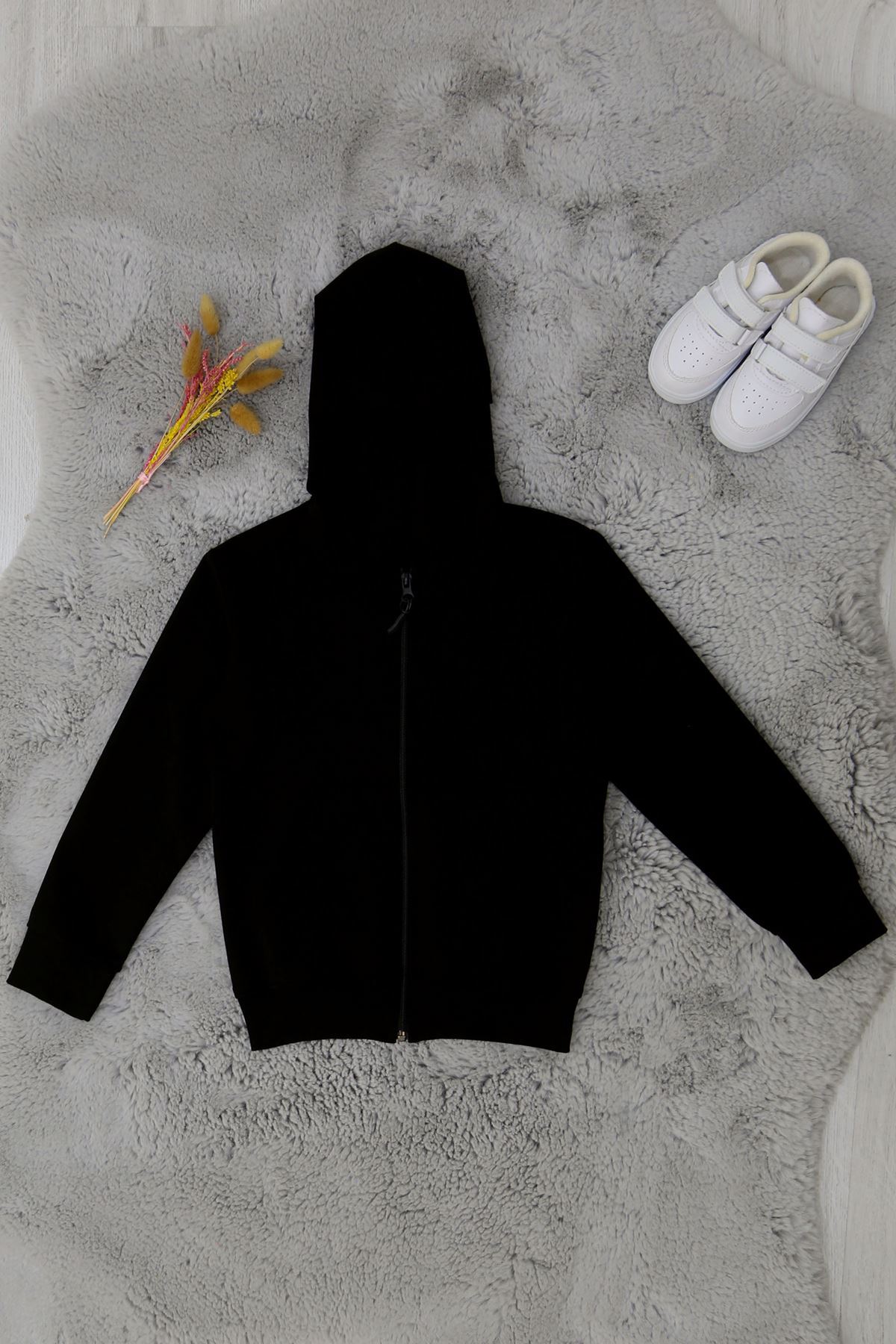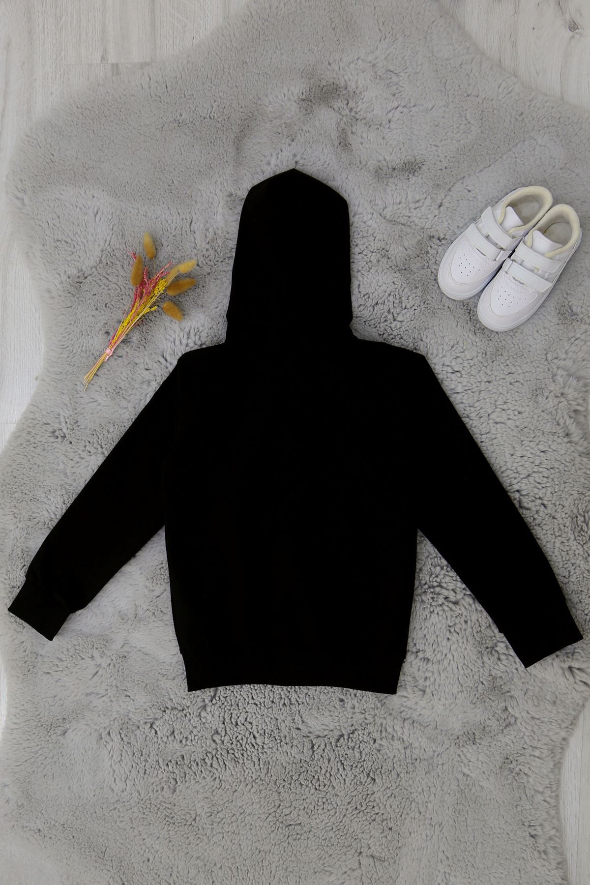 6-10 Yaş İki İplik Kompak Penye Kapşonlu Sweat Unisex Siyah - 90230.2032.