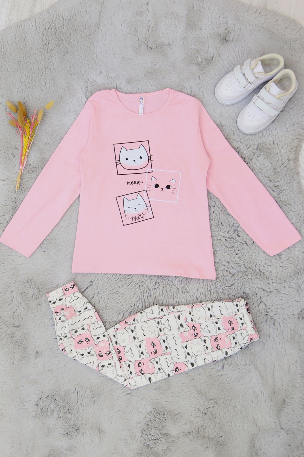 6-14 Yaş Baskılı Çocuk Pijama Takımı Pembebeyaz - 40101.1931.