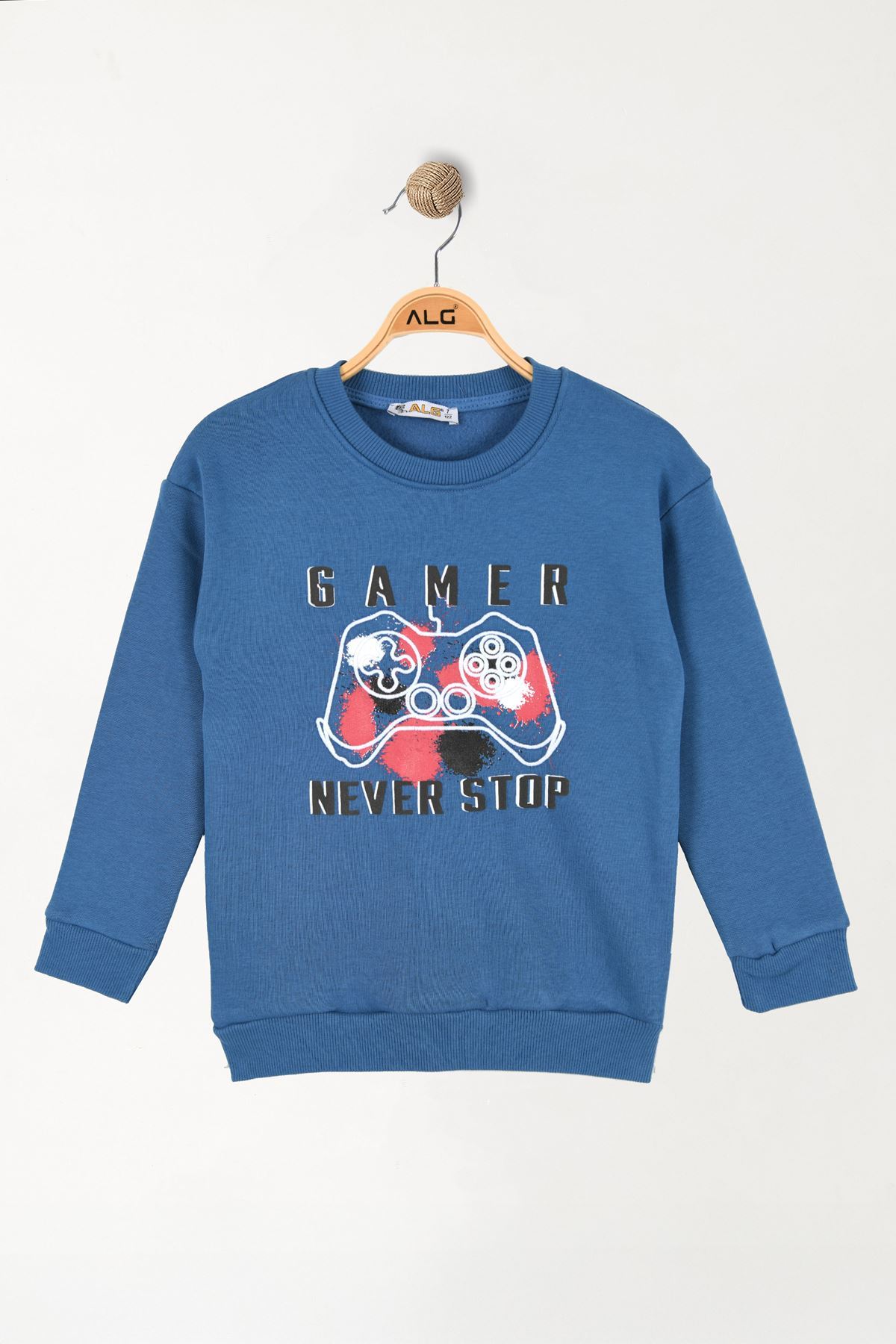 6-9 Yaş 3 İp Şardonlu Sweatshirt Mavi - 2264219.1576.