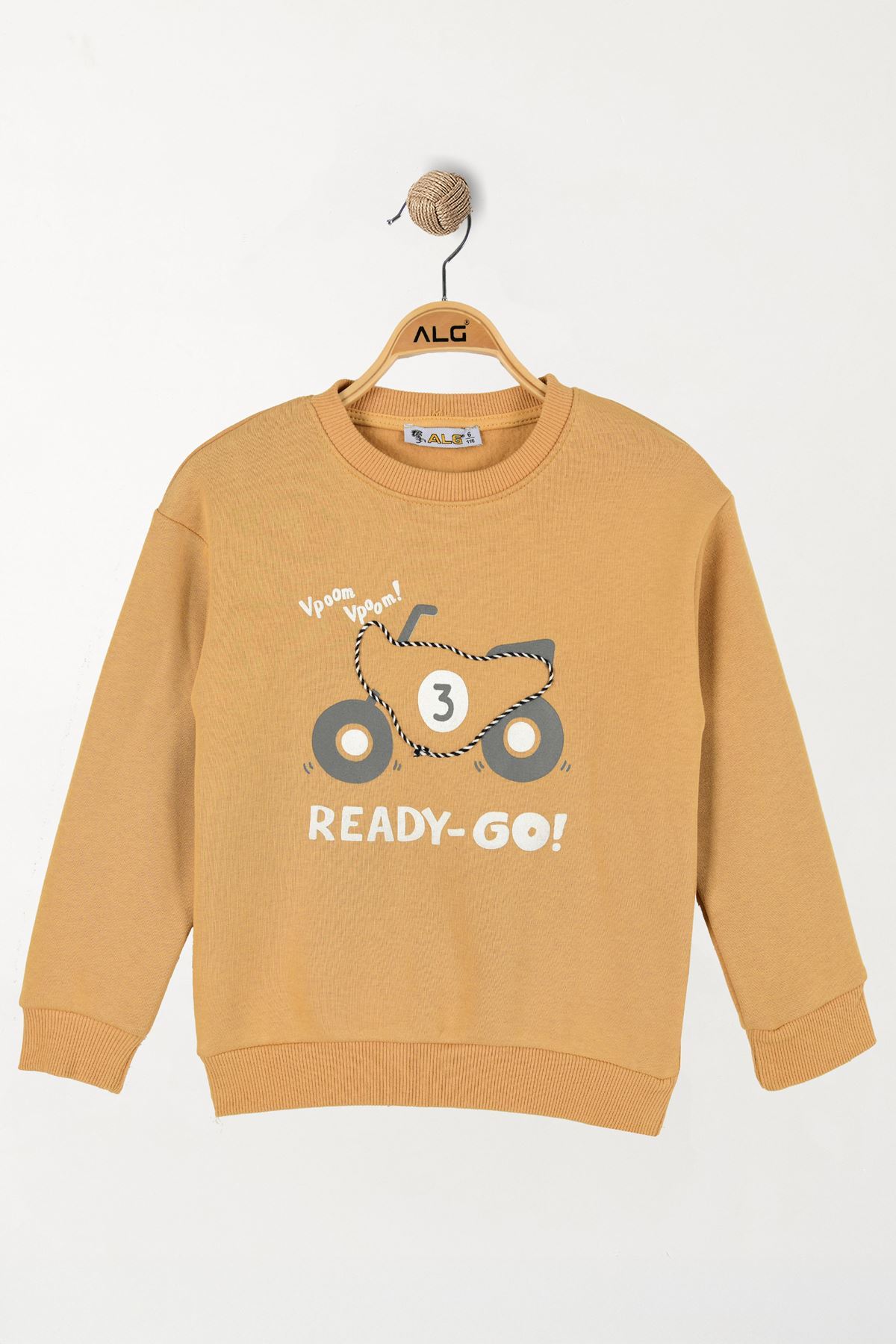 6-9 Yaş Baskılı 3 İp Şardonlu Sweatshirt Hardal - 2264189.1576.