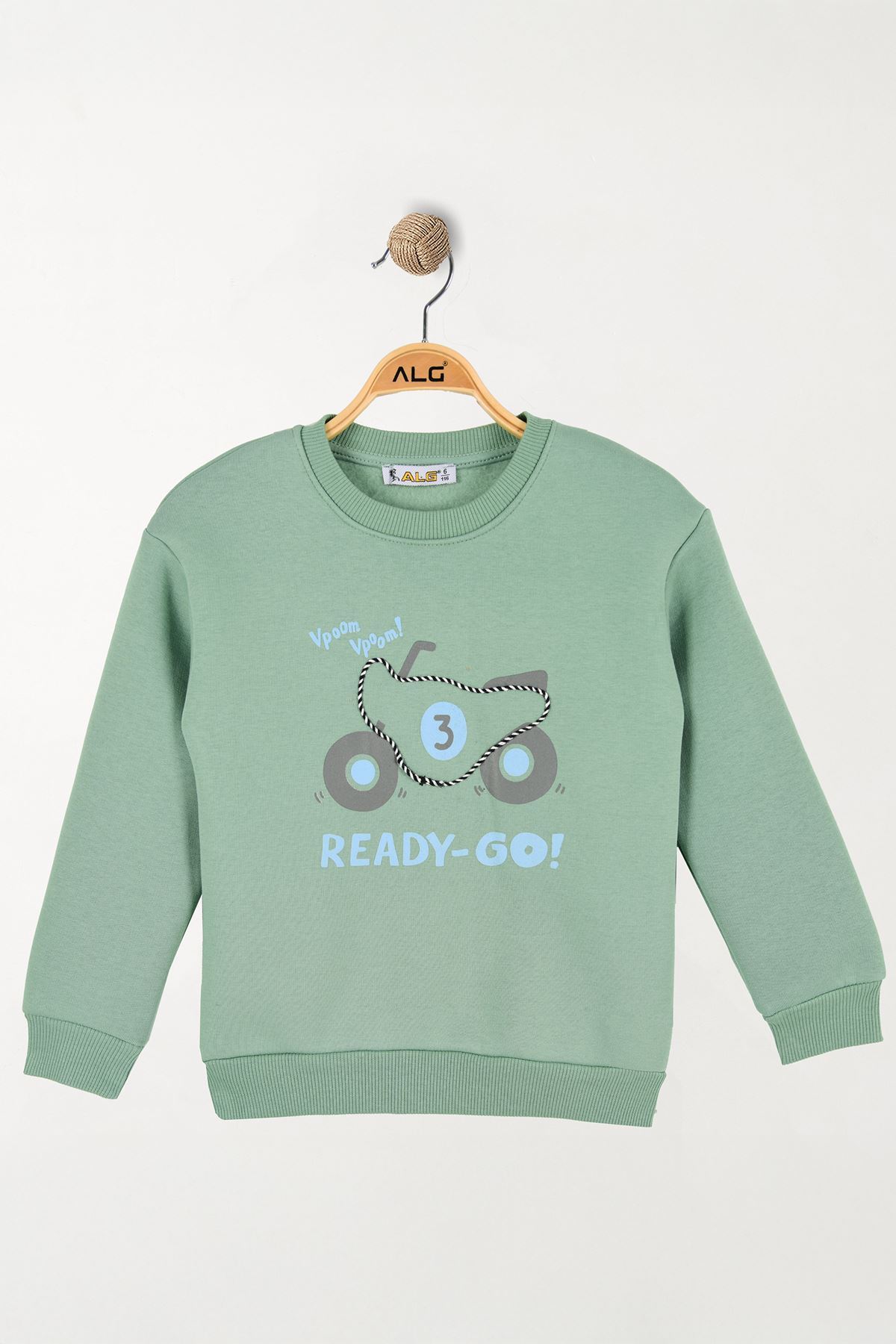 6-9 Yaş Baskılı 3 İp Şardonlu Sweatshirt Mint - 2264189.1576.