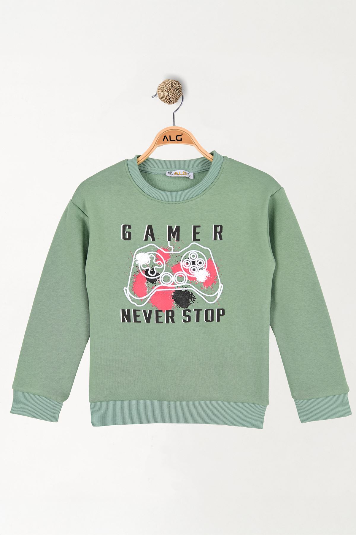 6-9 Yaş Gamer Baskılı 3 İp Şardonlu Sweatshirt Mint - 2264219.1576.