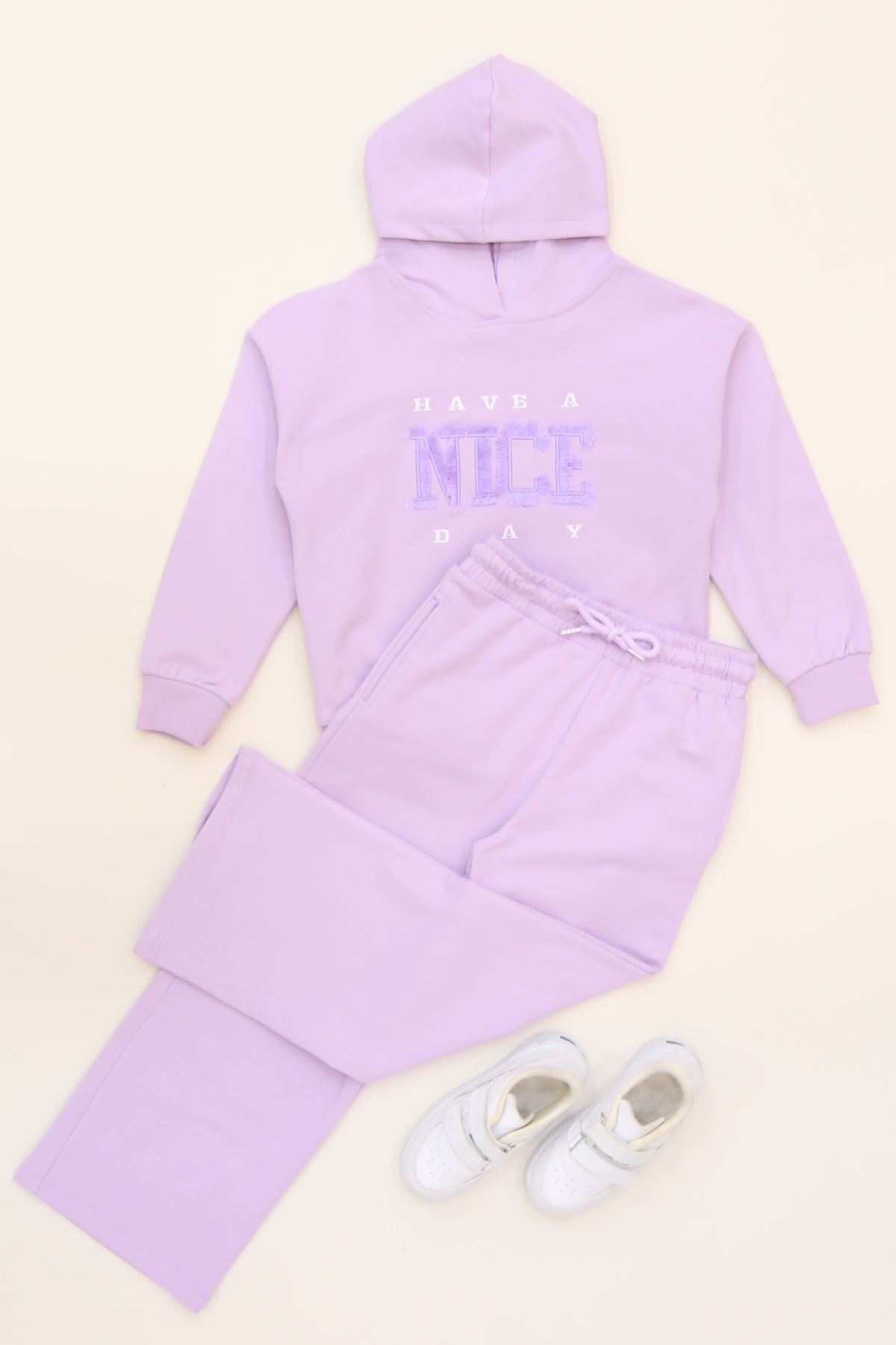 6-9 Yaş Şardonlu Yumoş Kumaş Takım Lila - 6264359.1576.