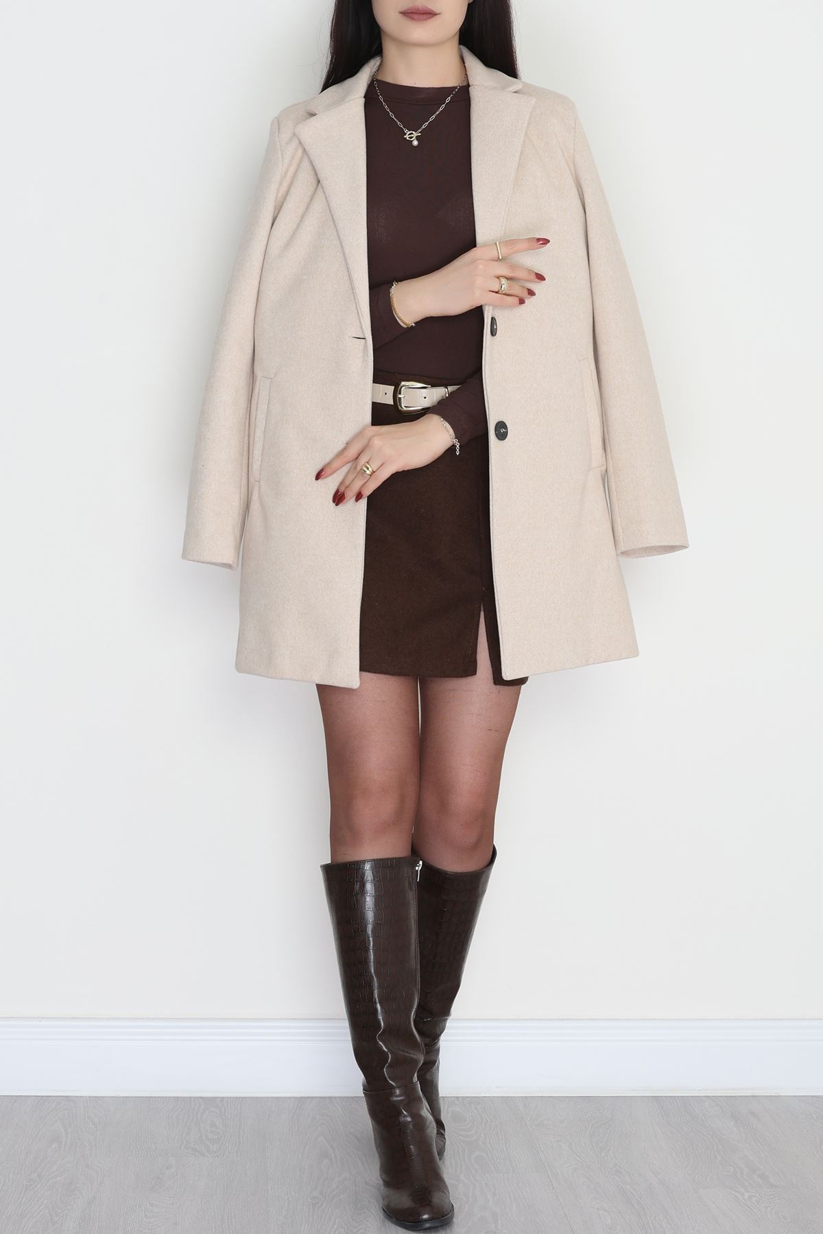 85 Cm Astarlı Kaşe Kaban Bej - 90037.1839.