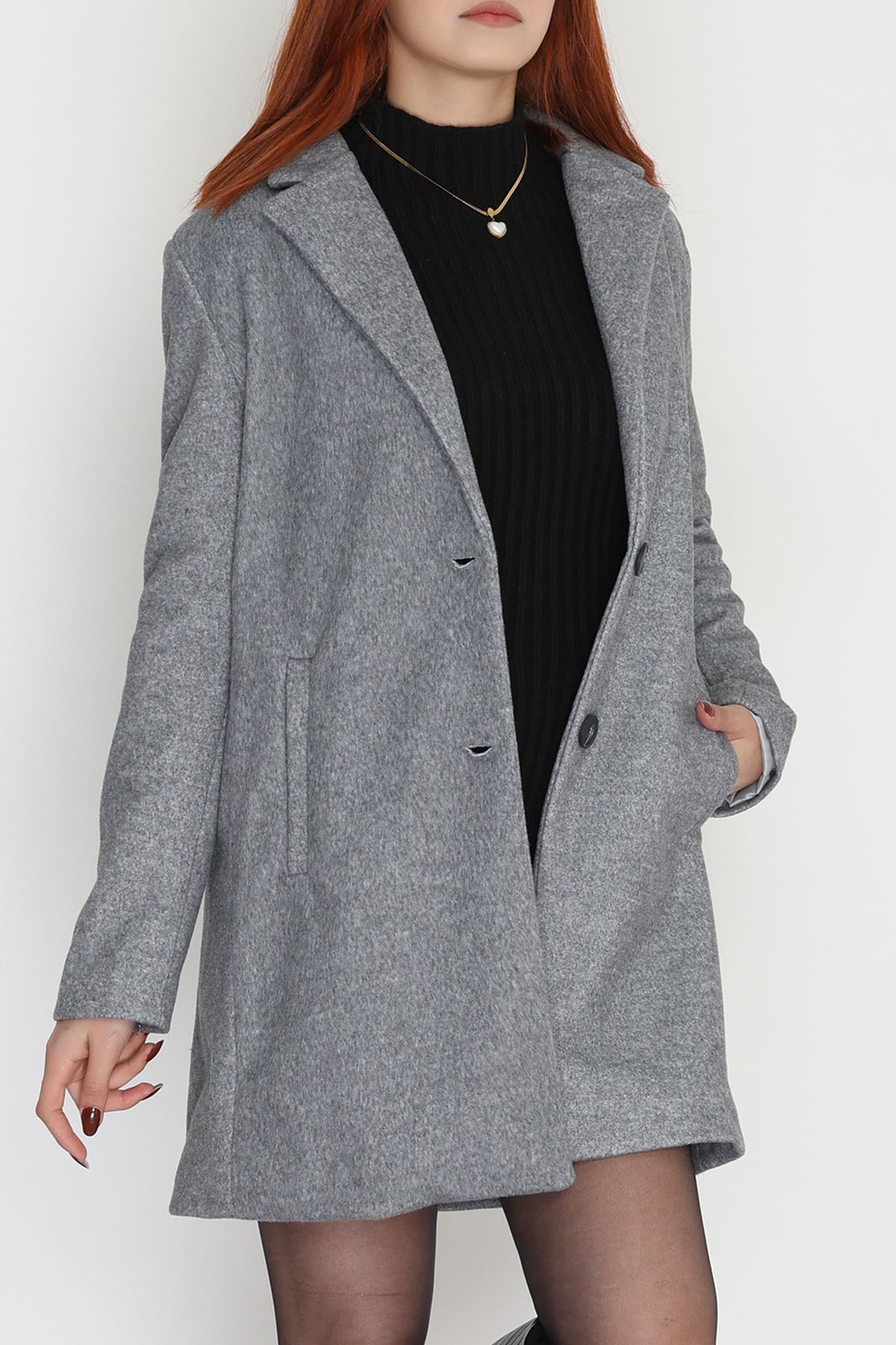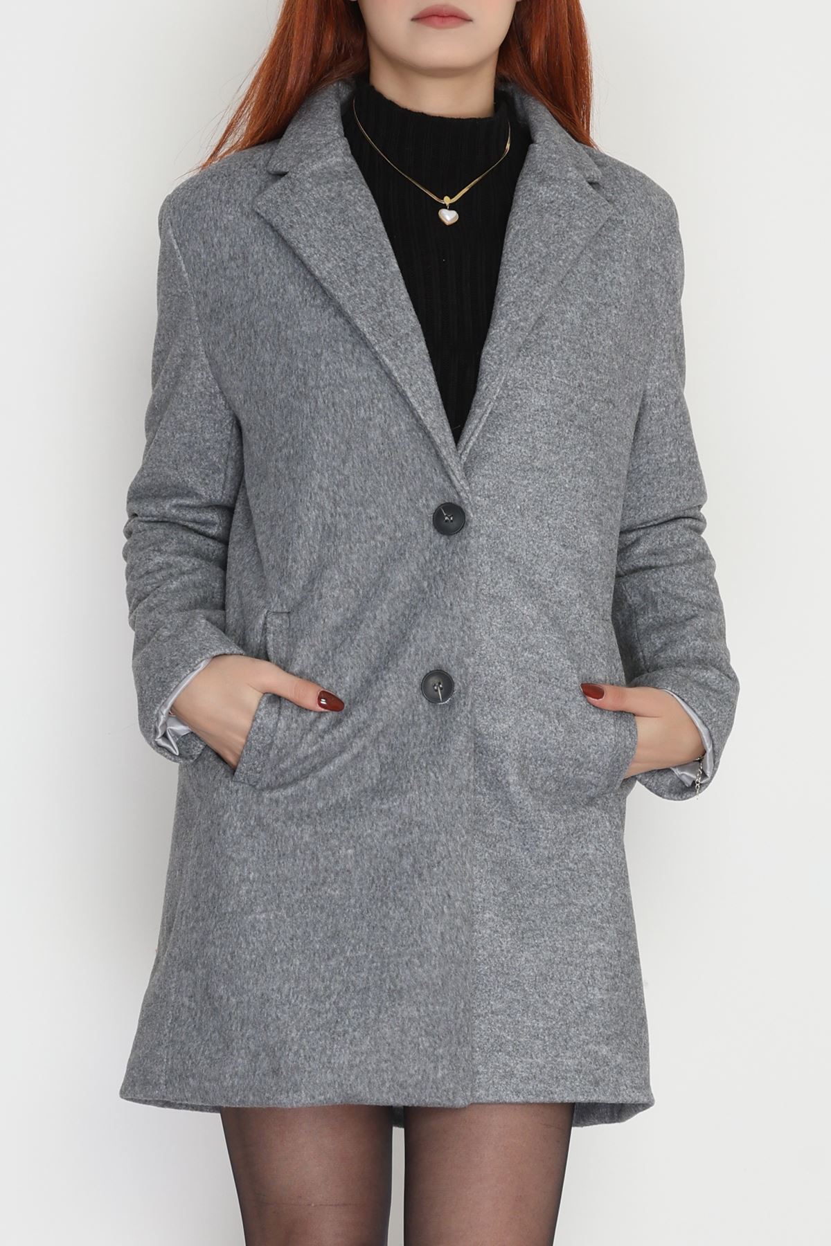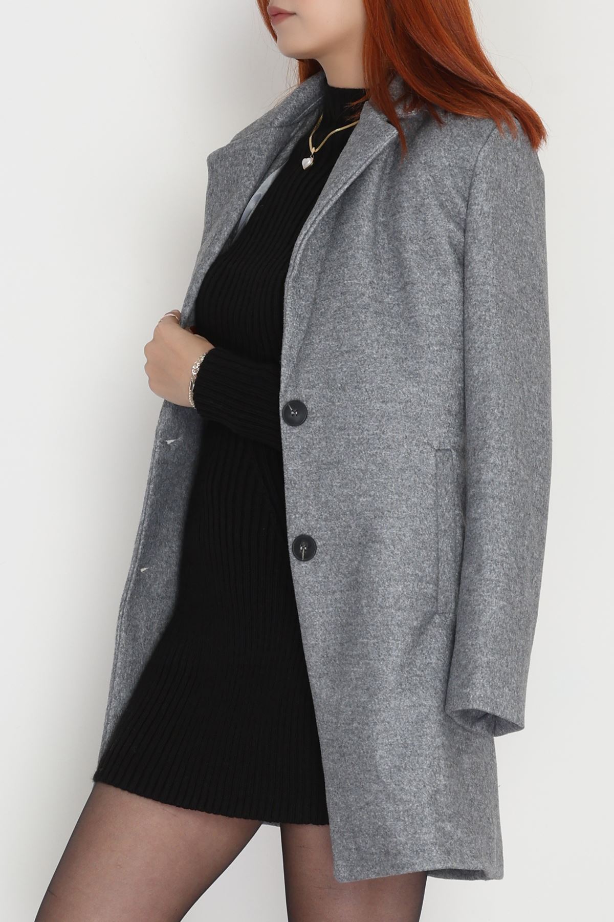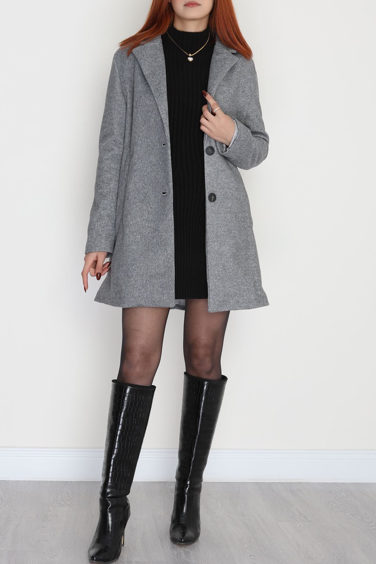 85 Cm Astarlı Kaşe Kaban Gri - 90037.1839.