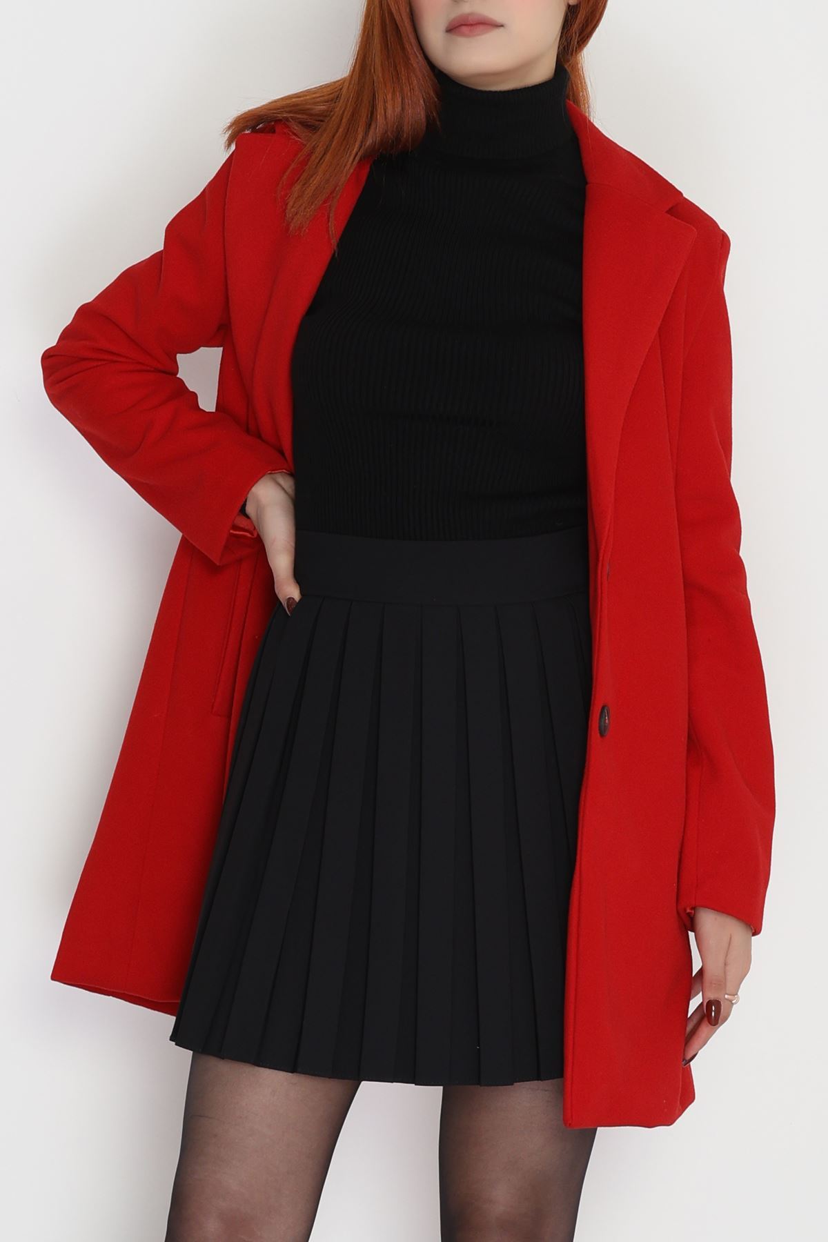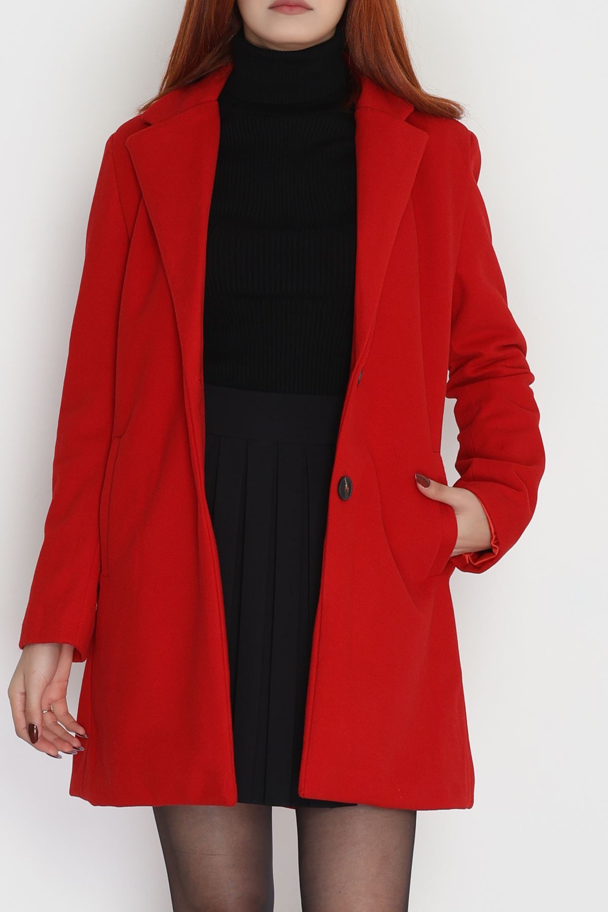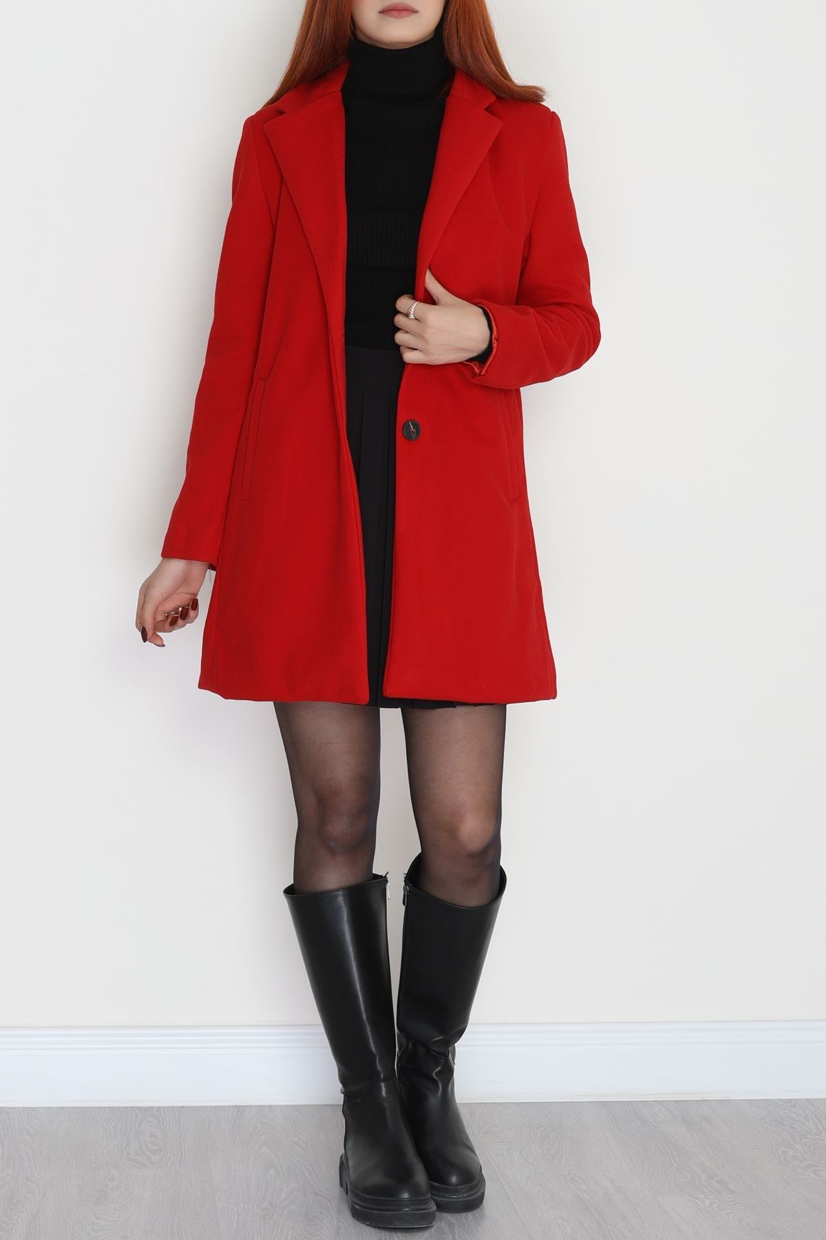 85 Cm Astarlı Kaşe Kaban Kırmızı - 90037.1839.