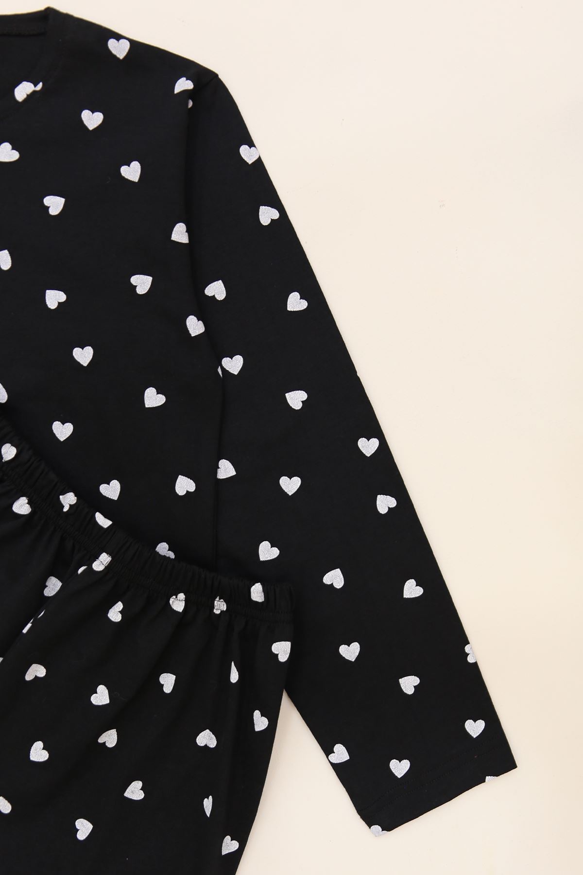 3-14 Yaş Süet Manşetli Alt Üst Aynı Takım Siyahbeyazkalp - 410.1287.