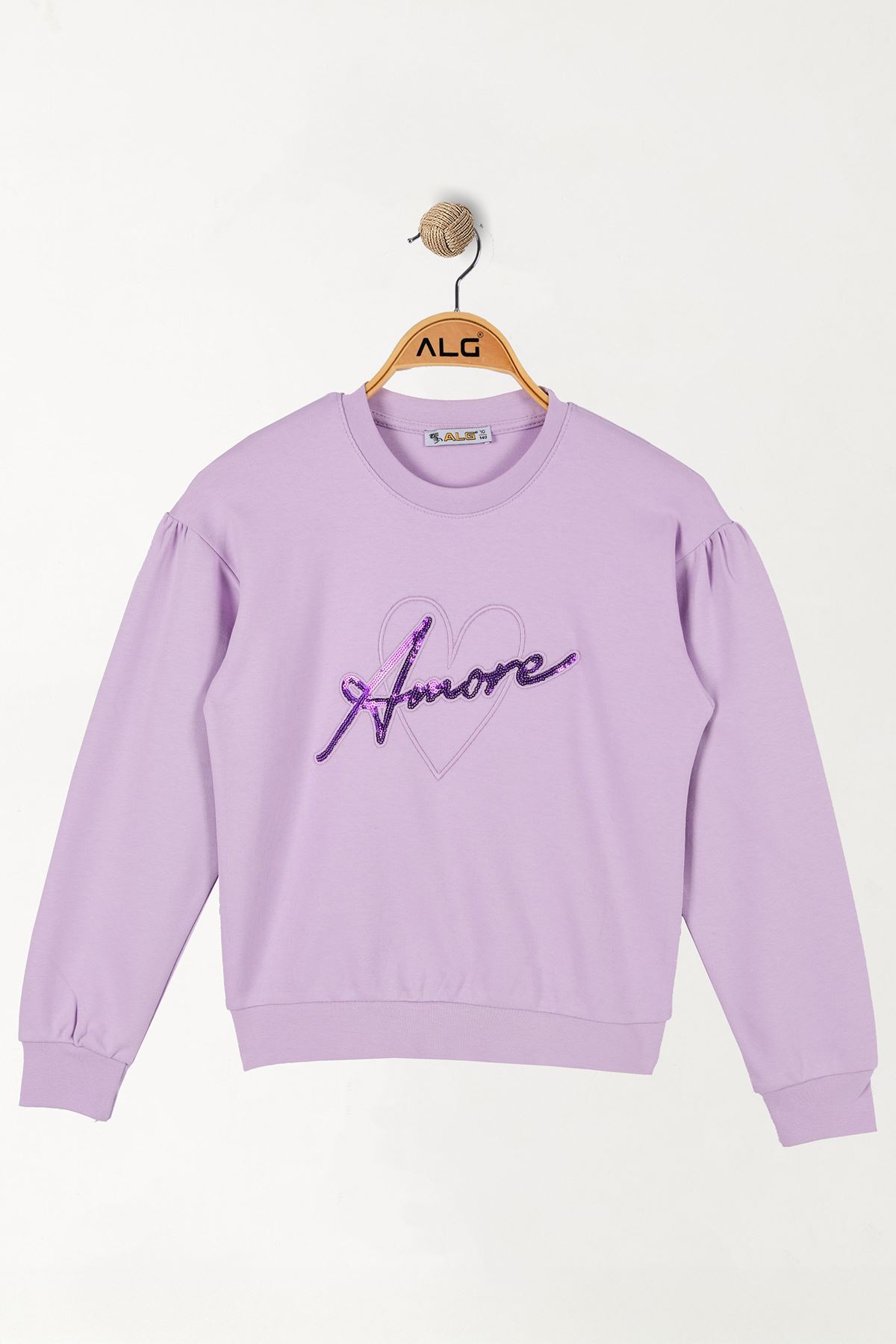 Amore Baskılı 10-13 Yaş Sweatshirt Lila - 7264166.1576.