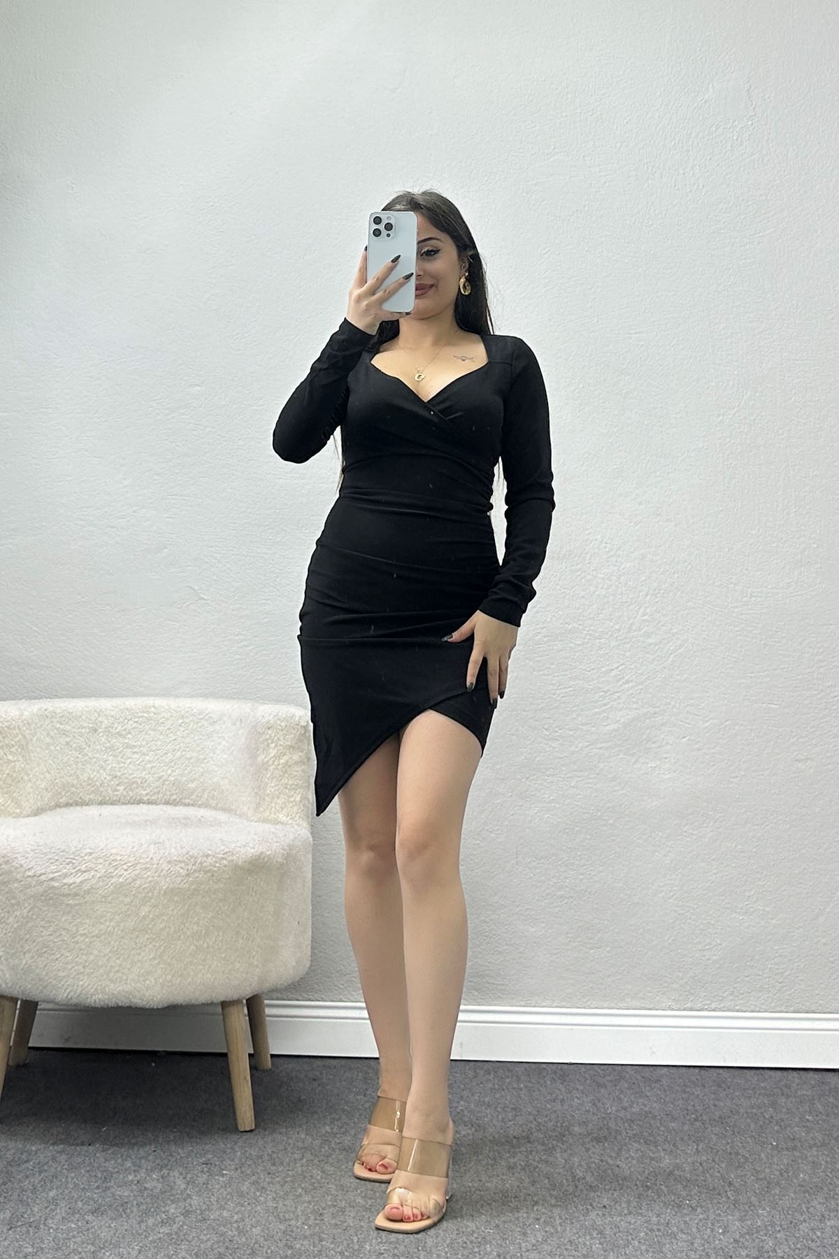 Asimetrik İthal Krep Elbise Siyah - 582001.1592.