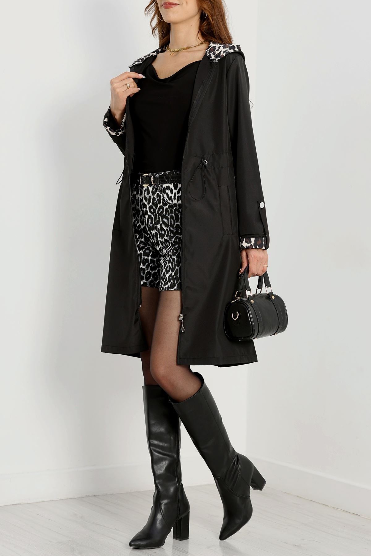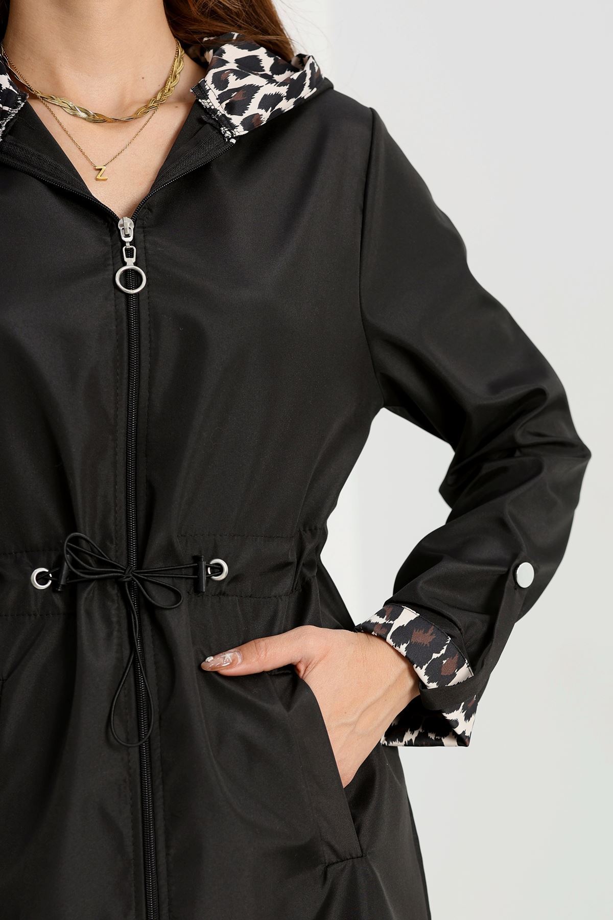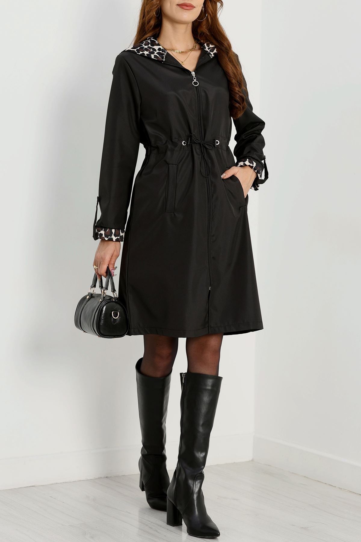 Astarsız Bel Lastikli Trençkot Siyah - 31136.147.