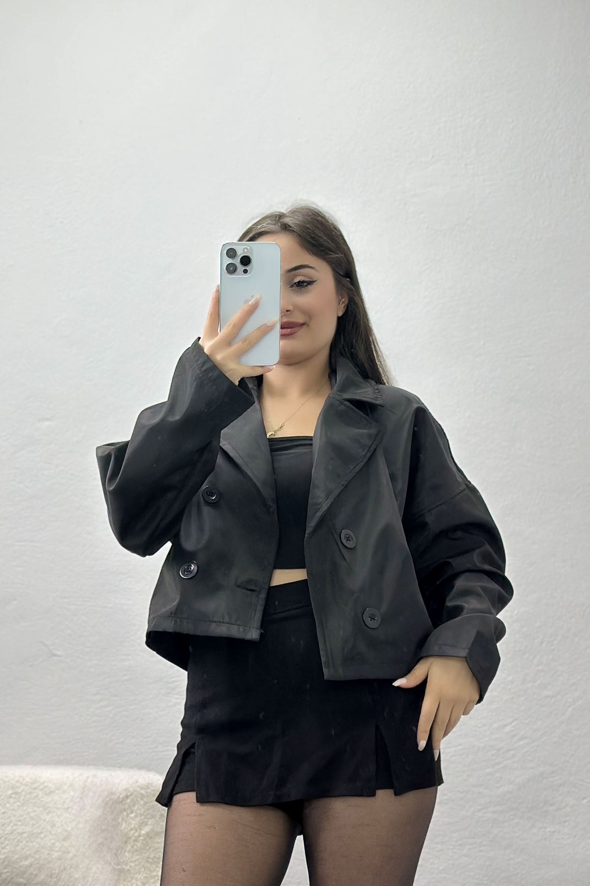 Astarsız Kruvaze Yaka Kısa Trençkot Siyah - 90906.147.