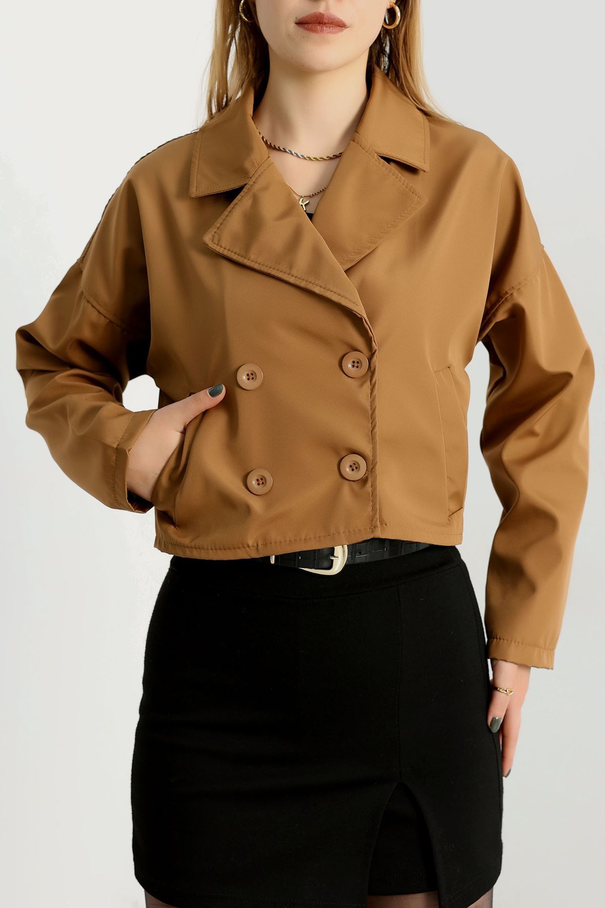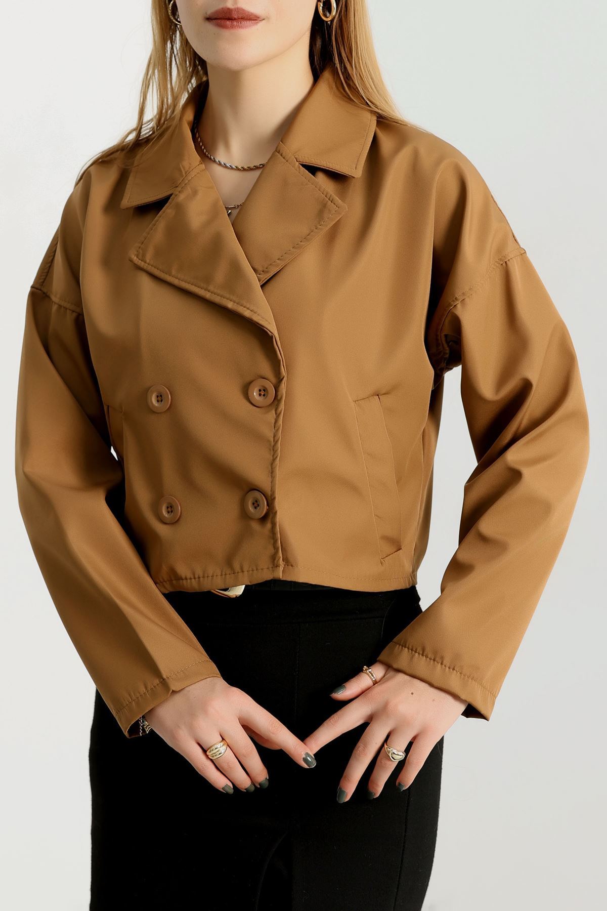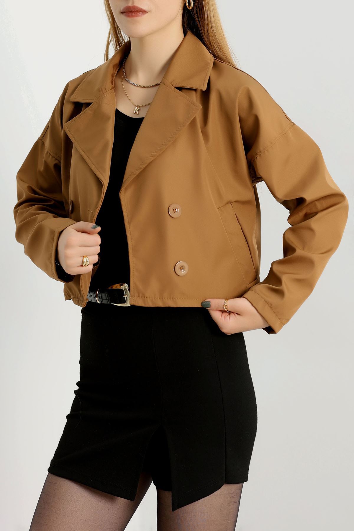 Astarsız Kruvaze Yaka Kısa Trençkot Taba - 90906.147.