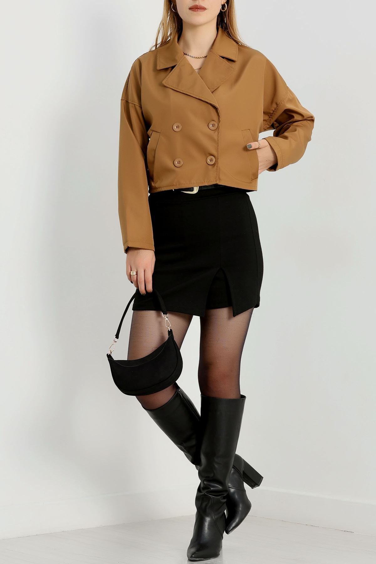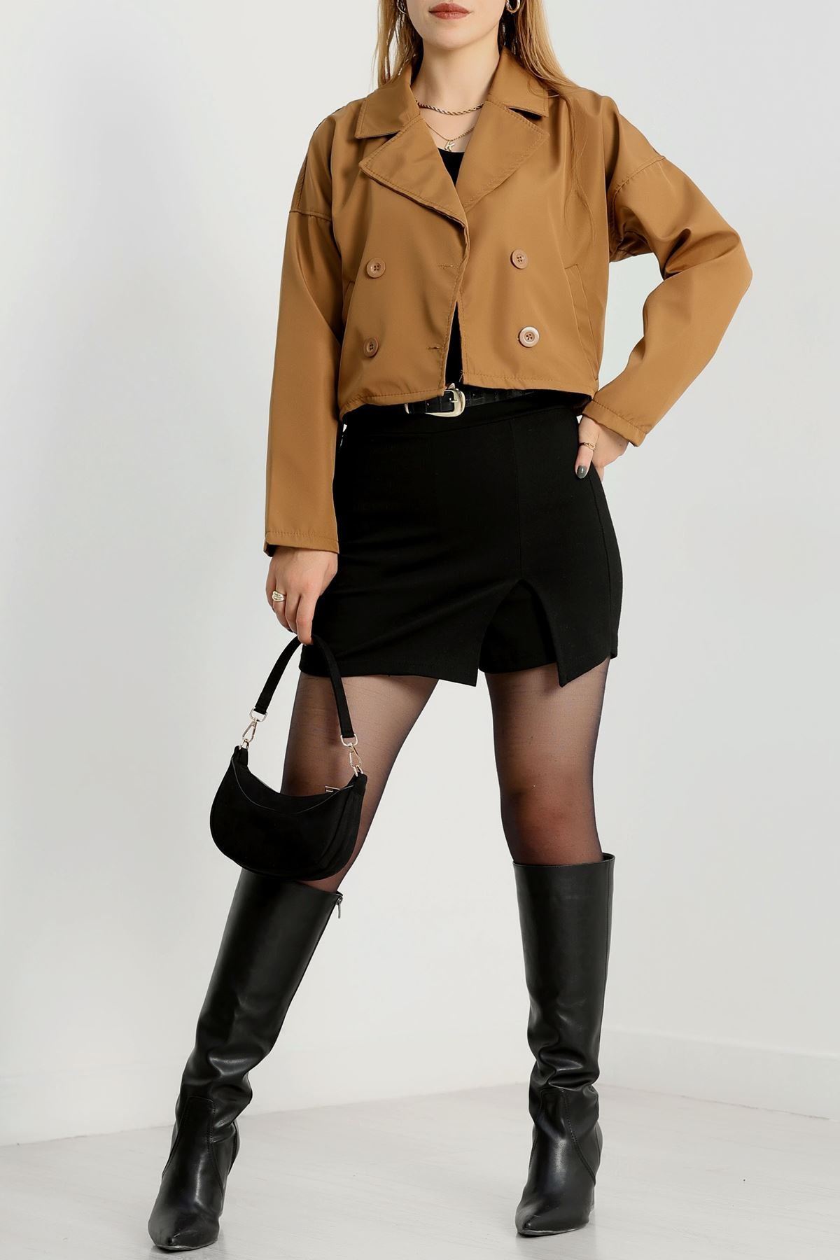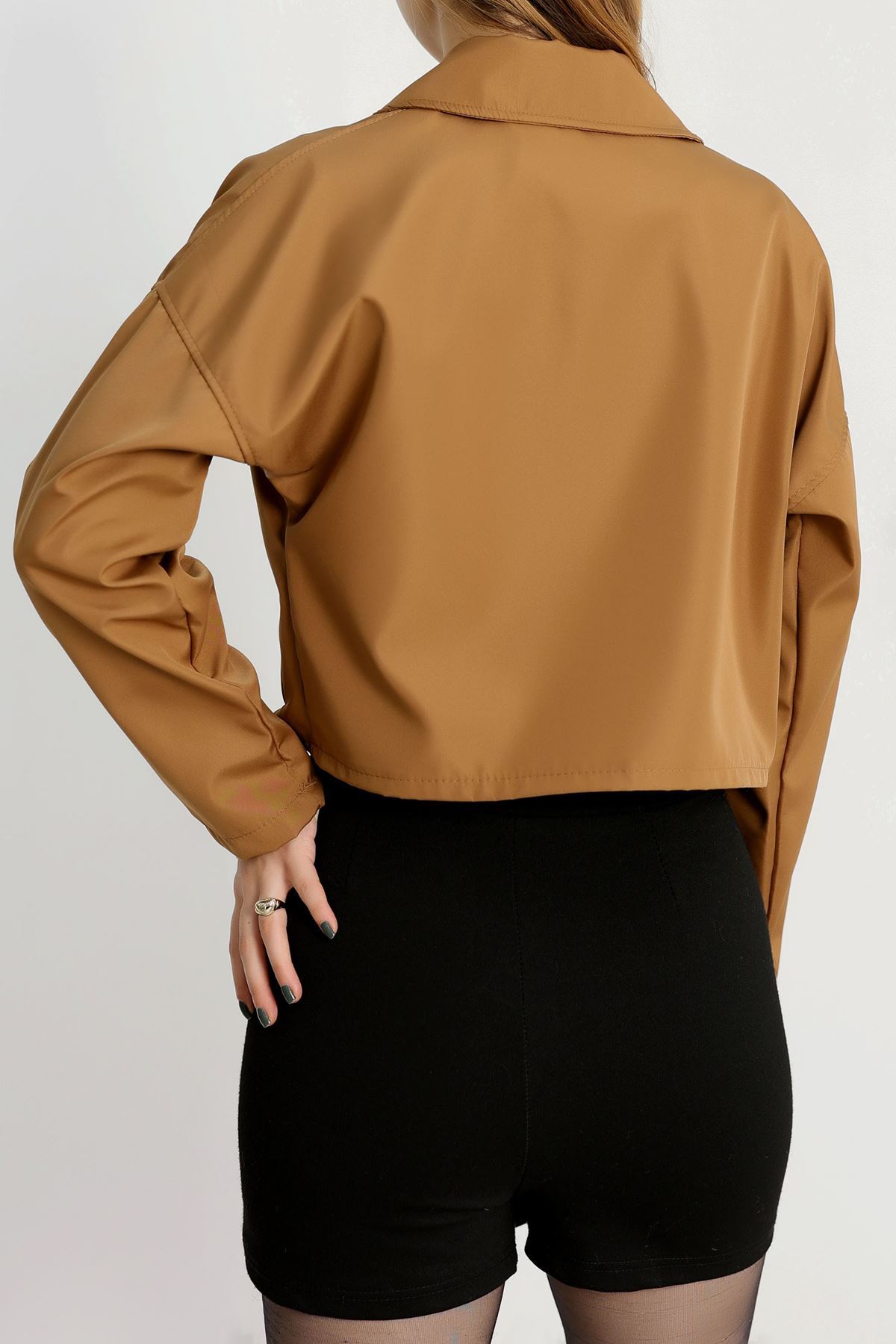Astarsız Kruvaze Yaka Kısa Trençkot Taba - 90906.147.