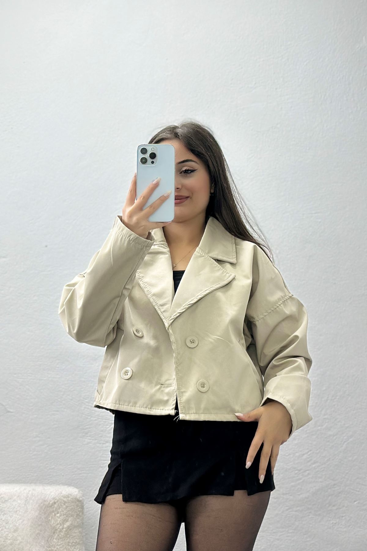 Astarsız Kruvaze Yaka Kısa Trençkot Taş - 90906.147.