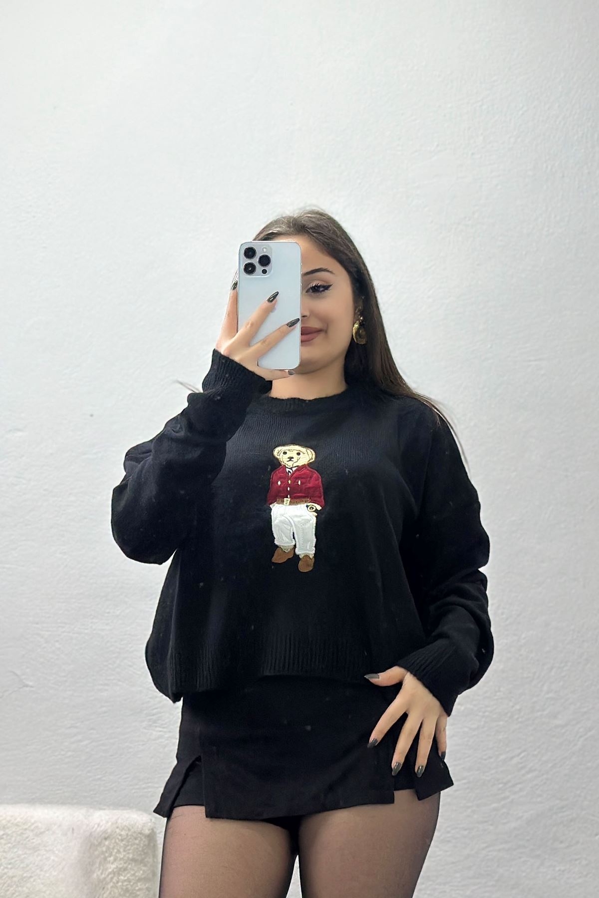 Ayıcık Baskılı Triko Siyah - 2340.1765.