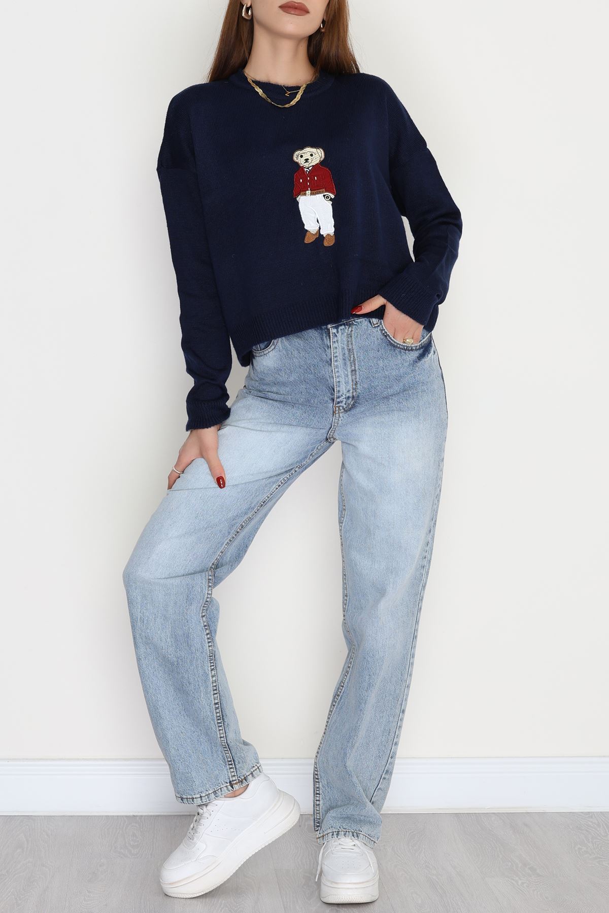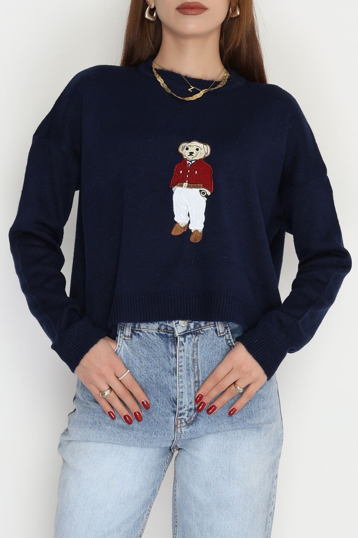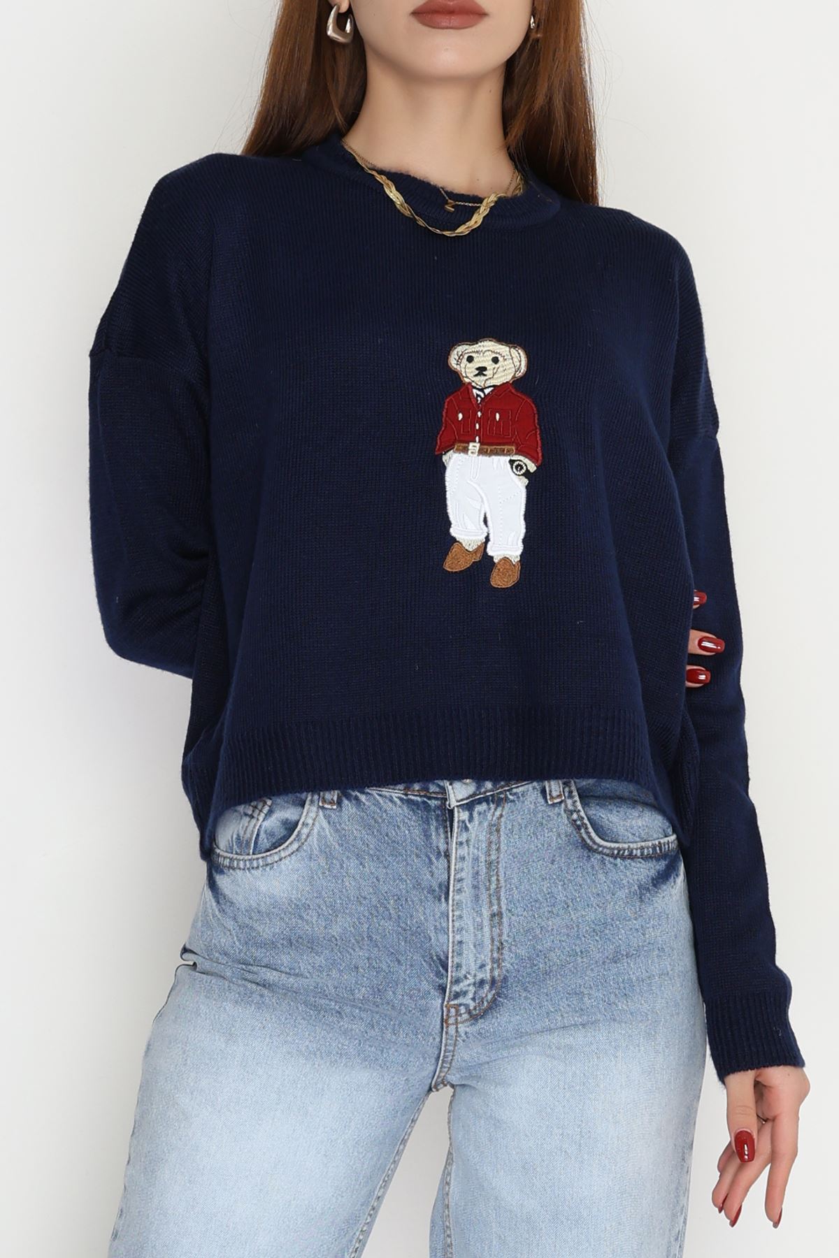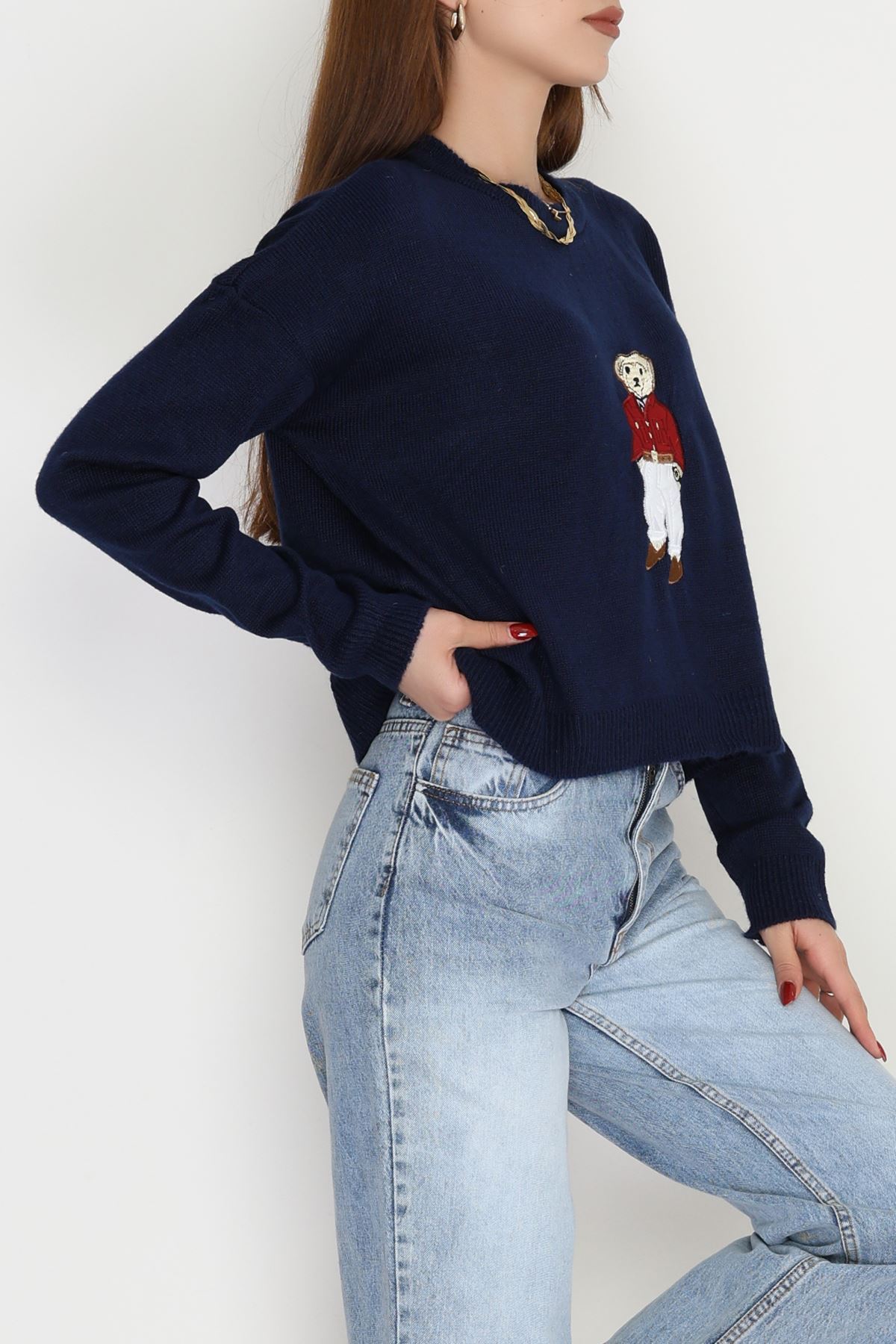 Ayıcık Nakışlı Triko Lacivert - 2340.1765.