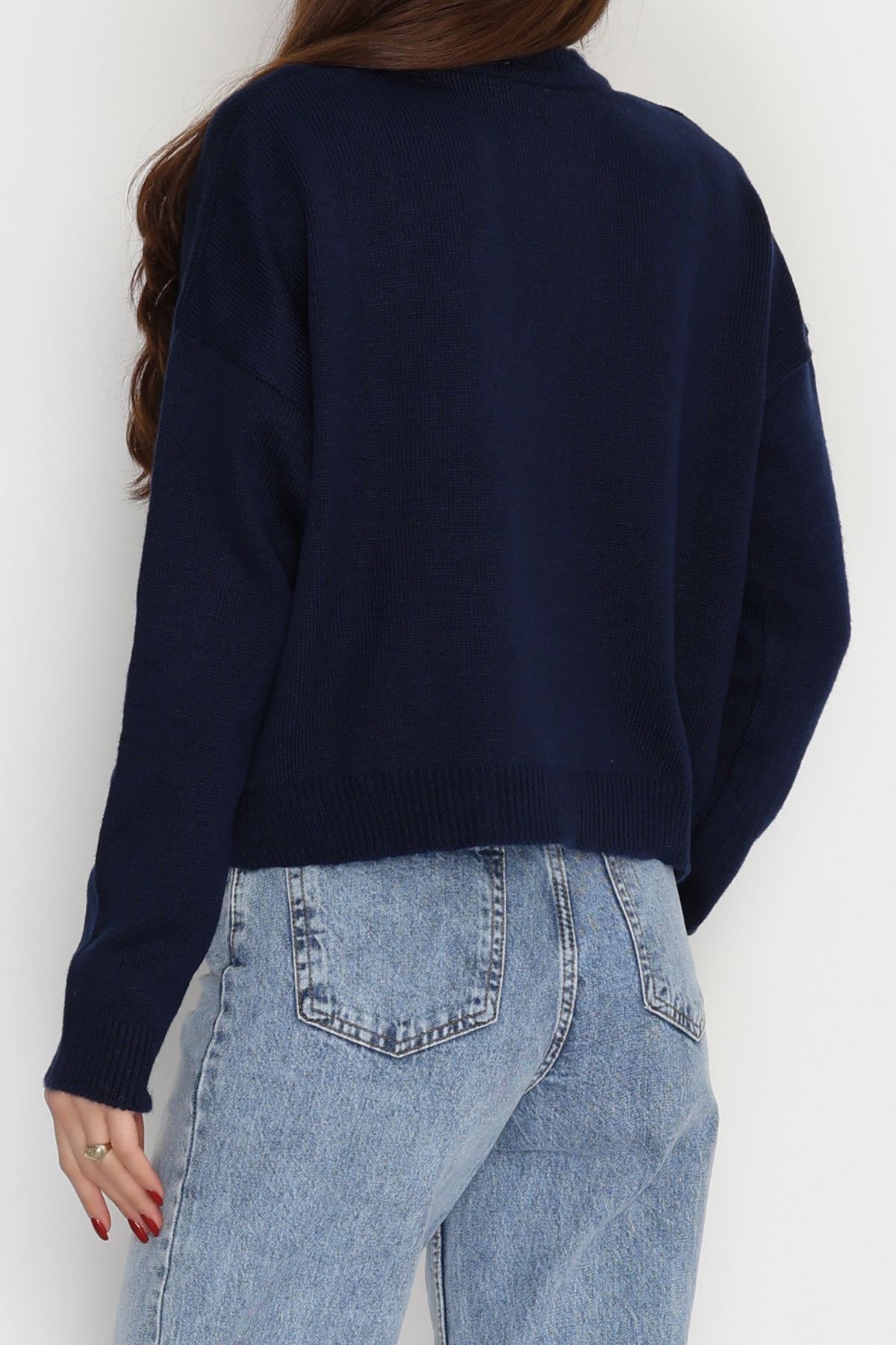 Madonna Yaka Önü Düğümlü Triko Lacivert - 2432.1765.