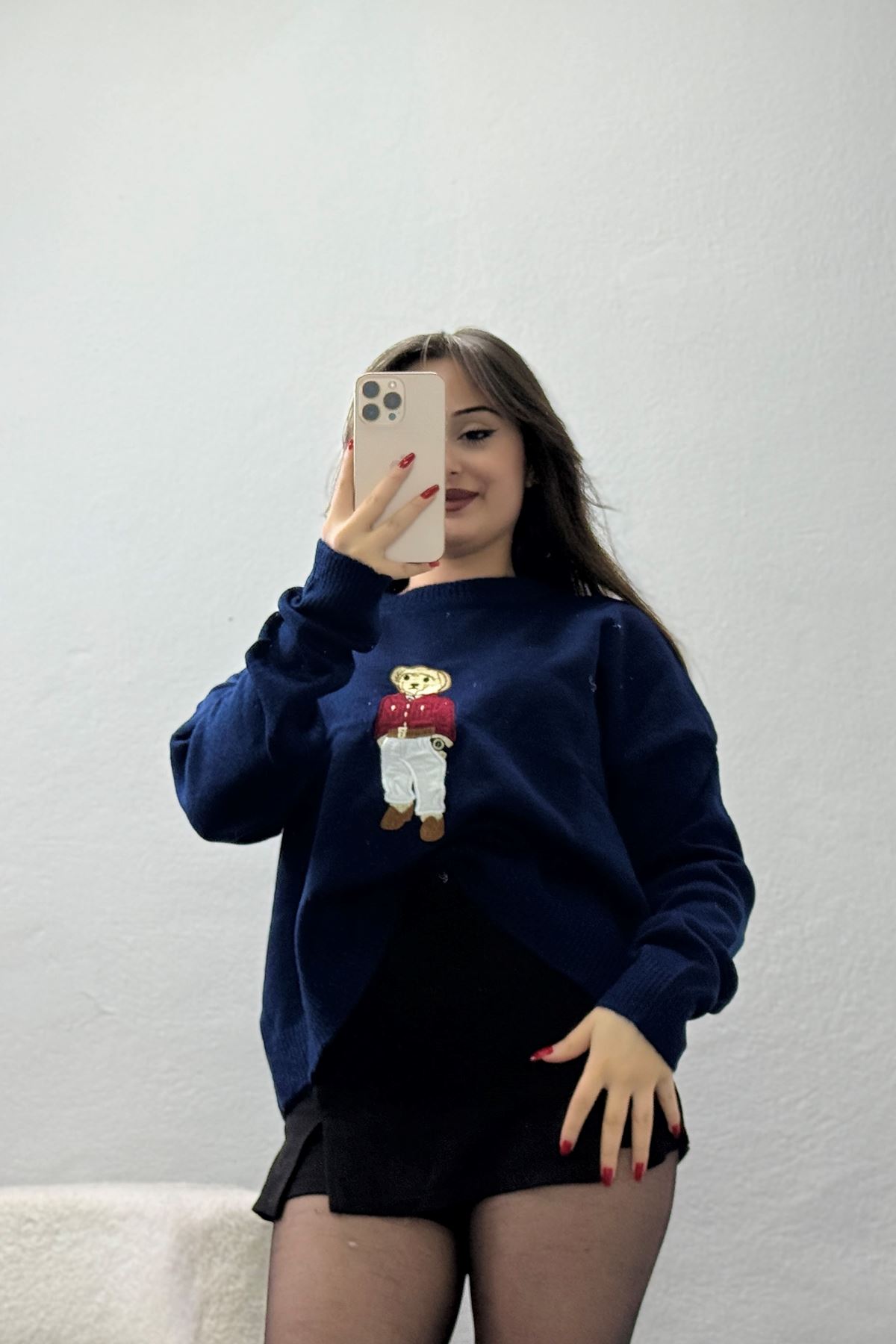 Ayıcık Nakışlı Triko Lacivert - 2340.1765.