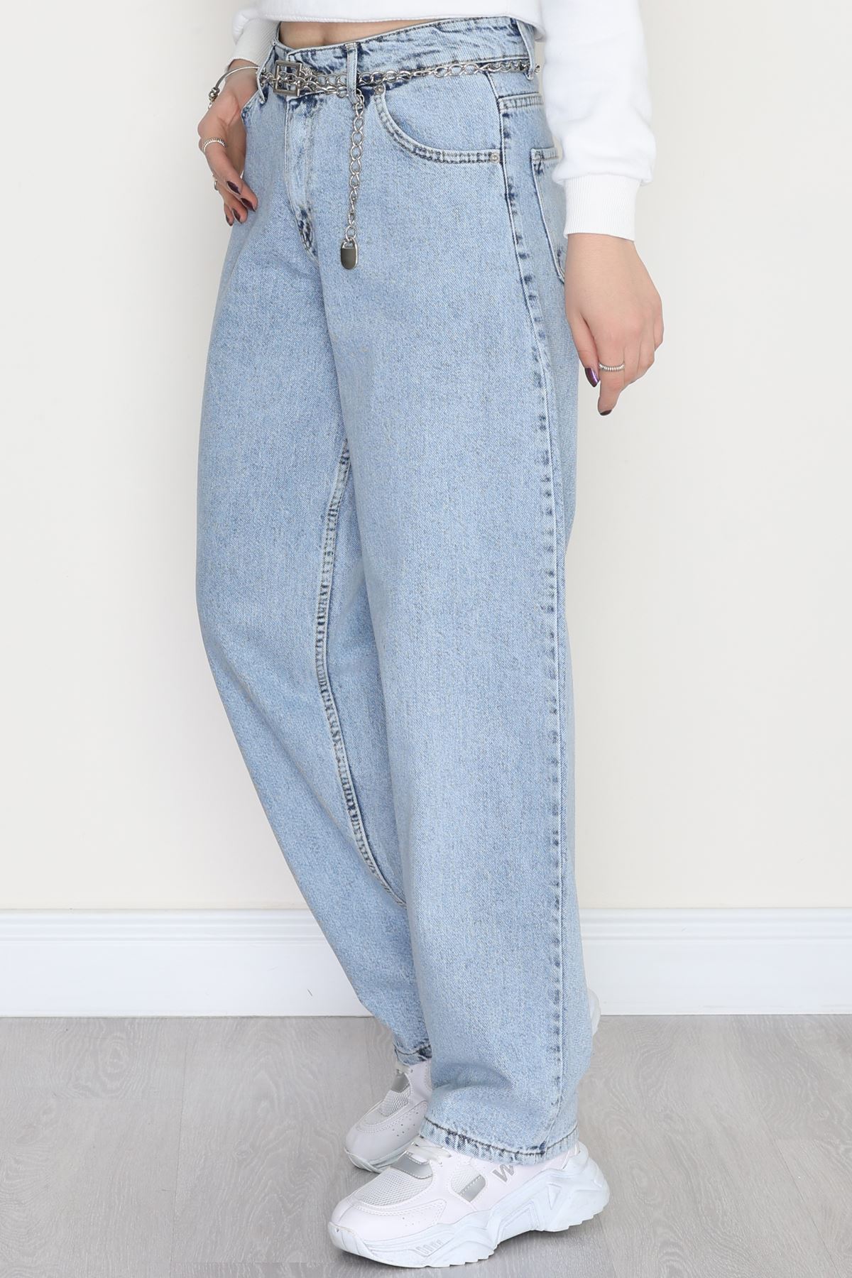 Tokalı Baggy Kot Pantolon Mavi - 31581.1184.