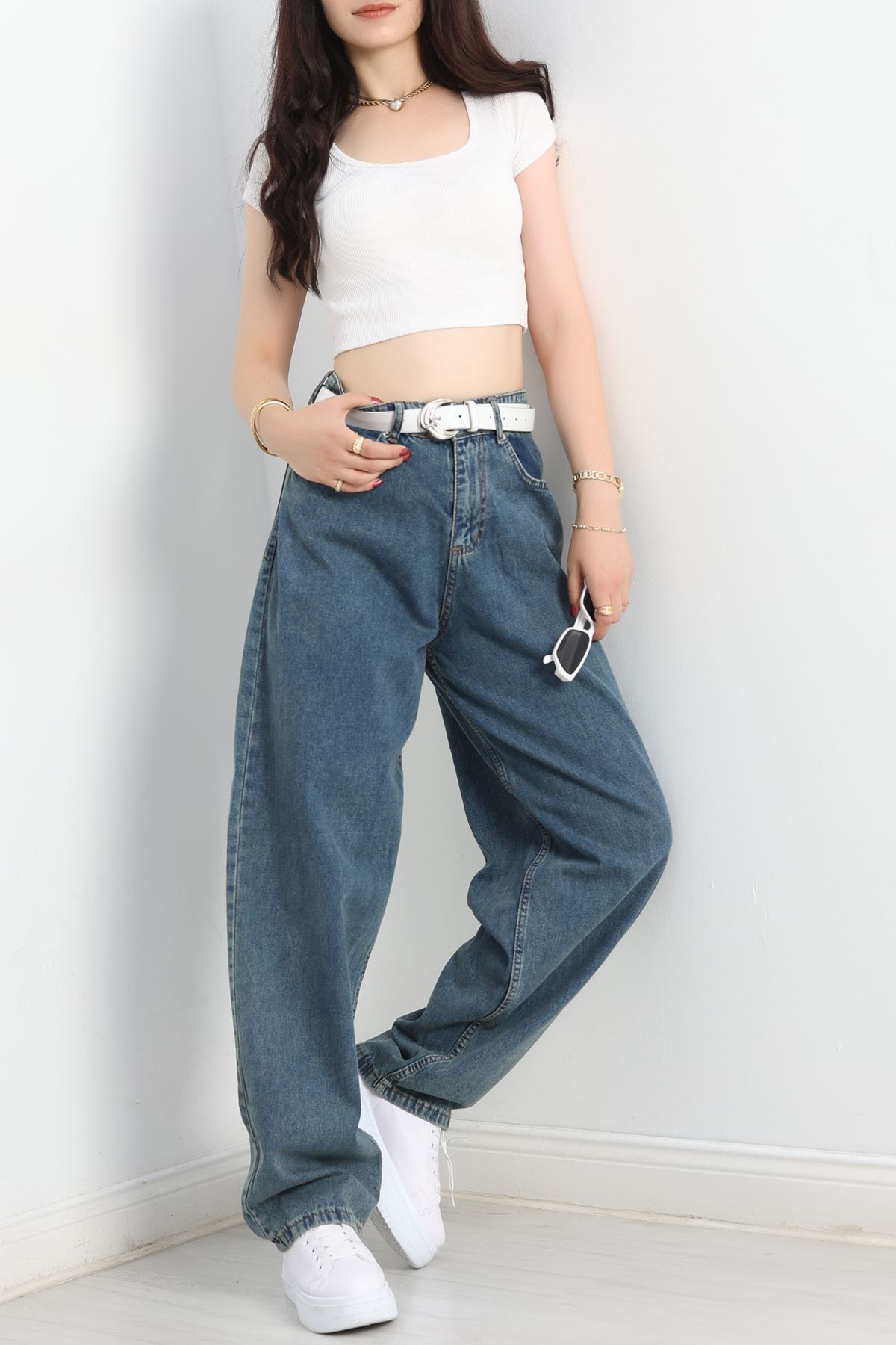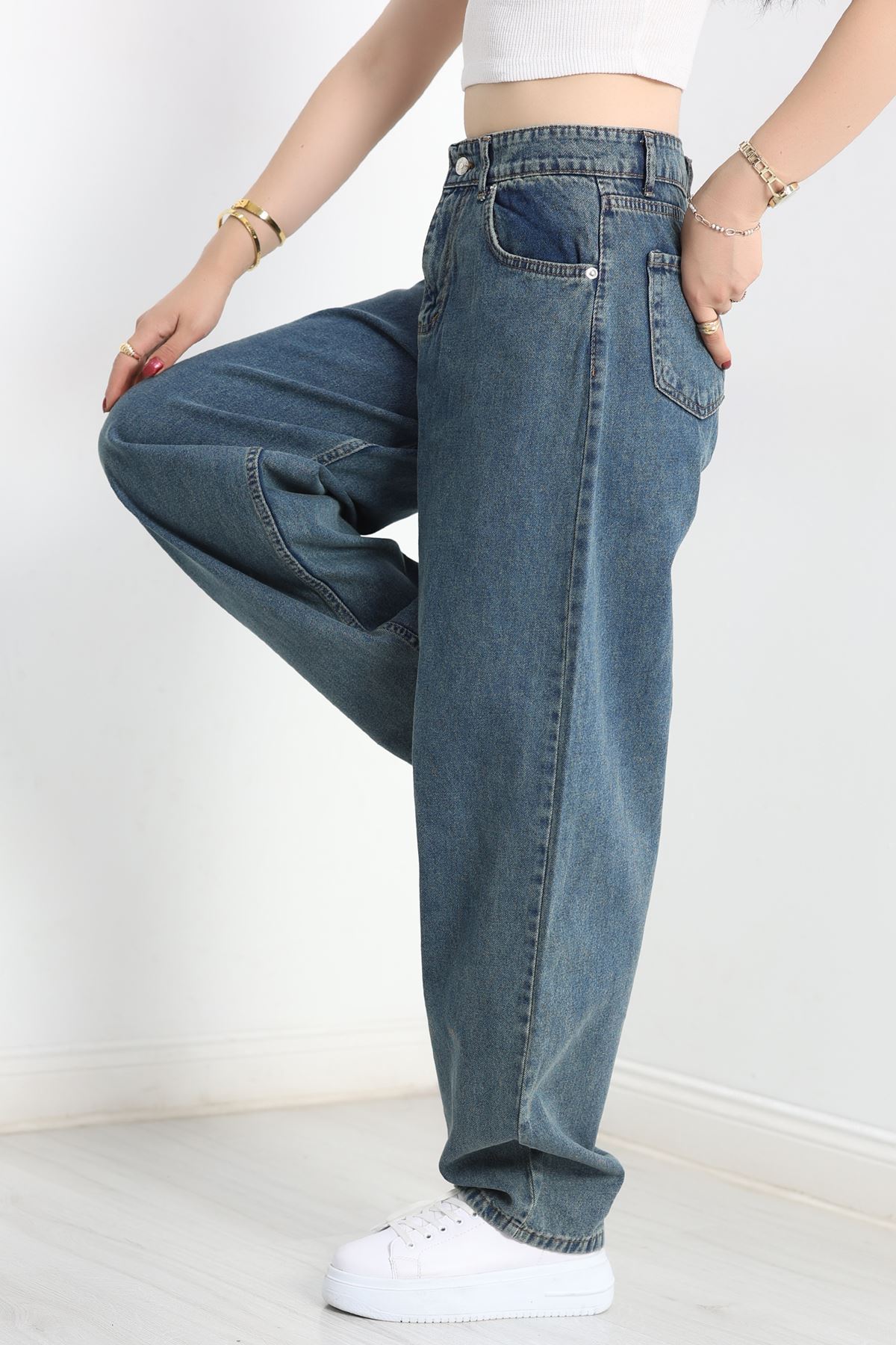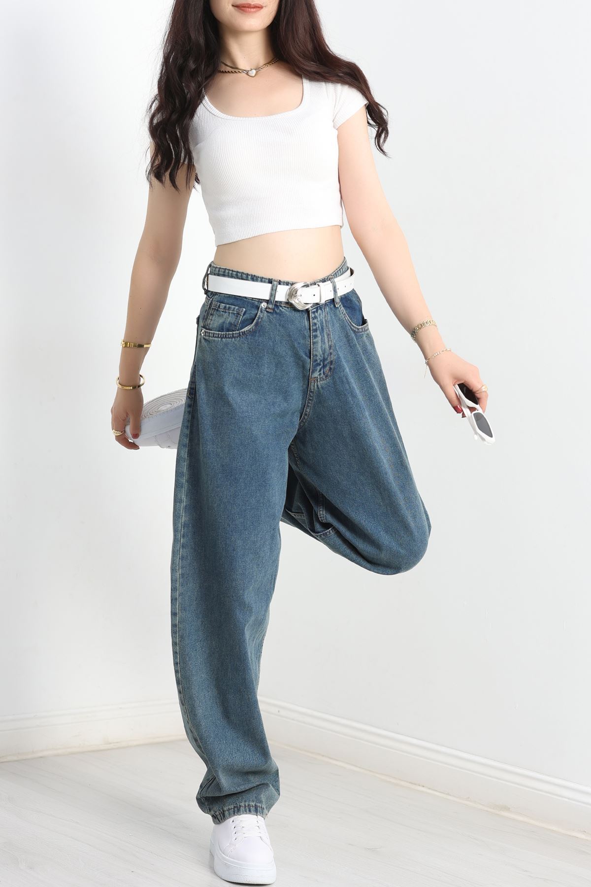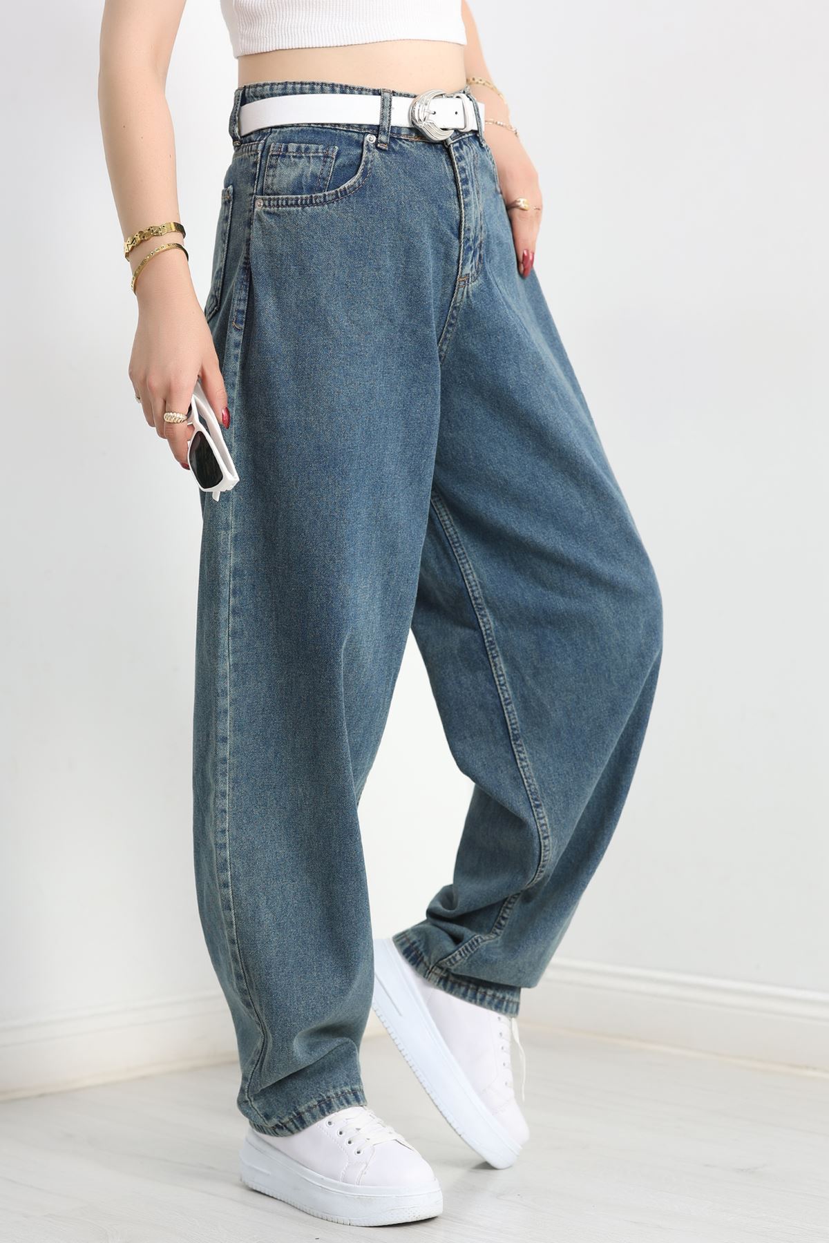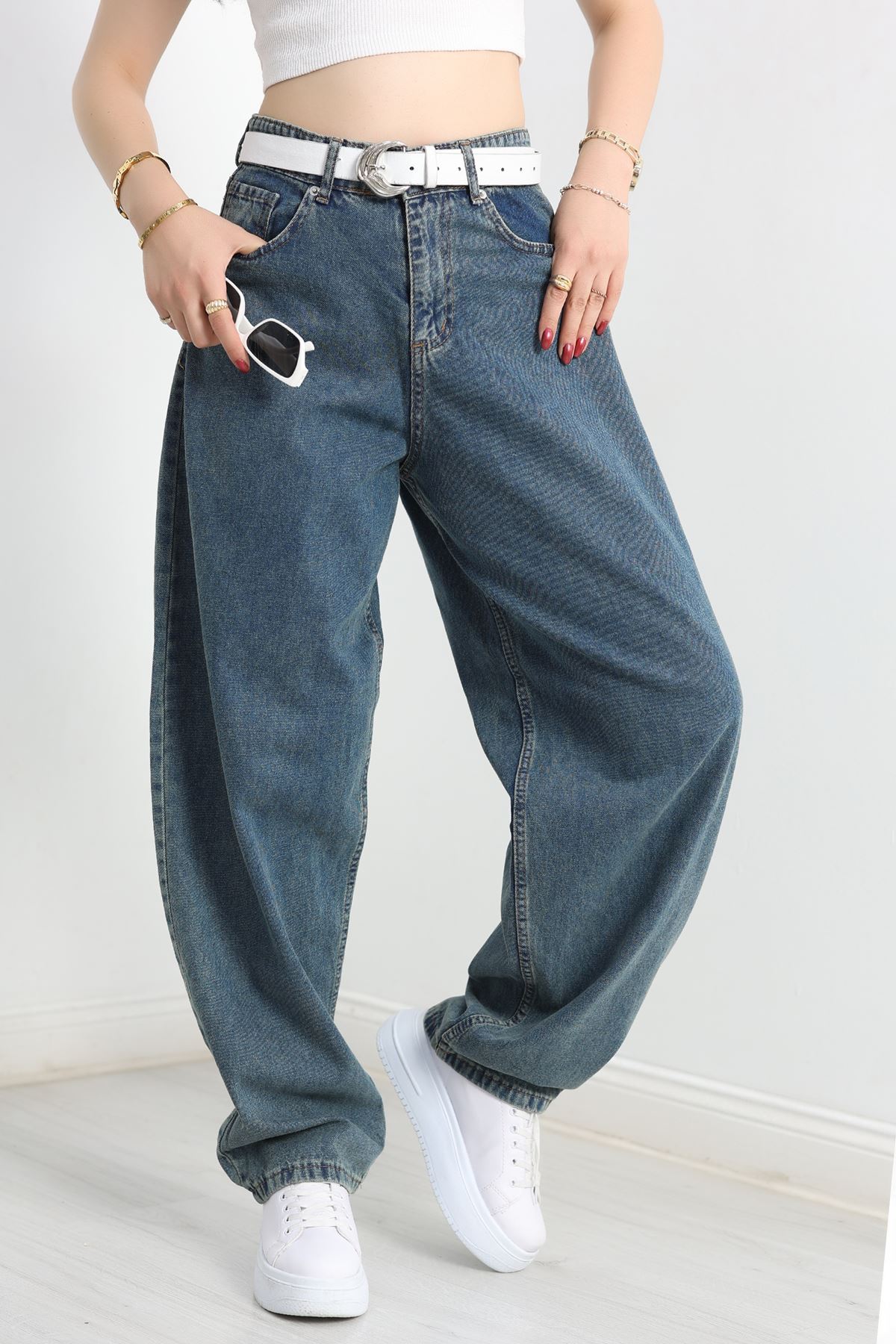 Yanları Tokalı Baggy Kot Pantolon Mavi - 31153.1590.