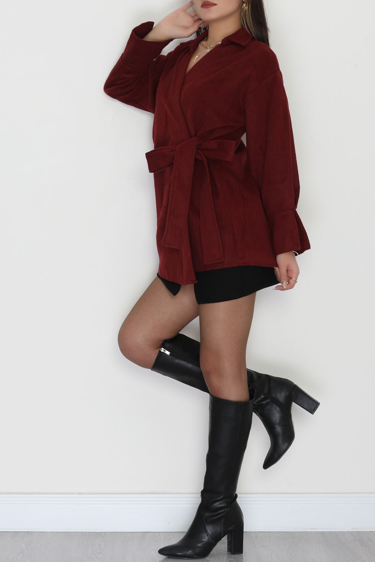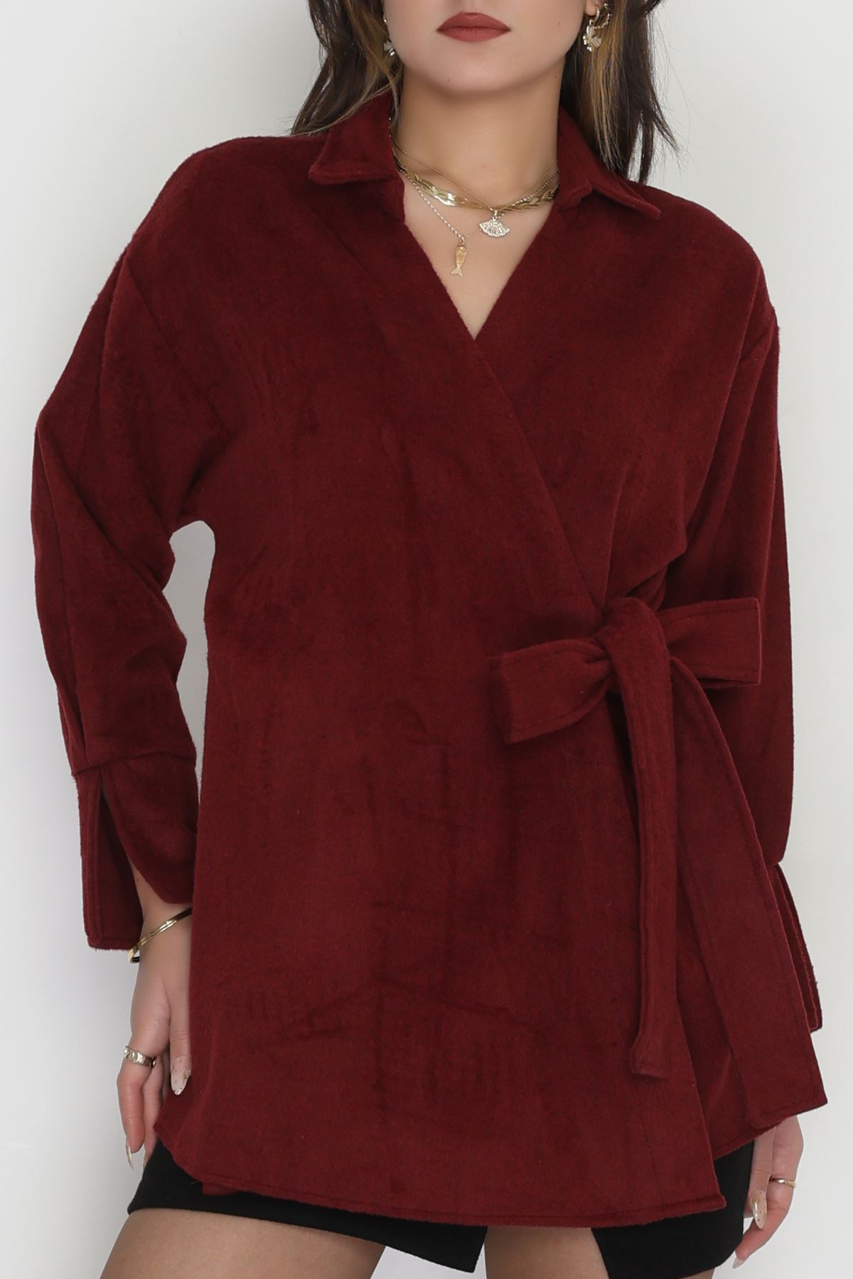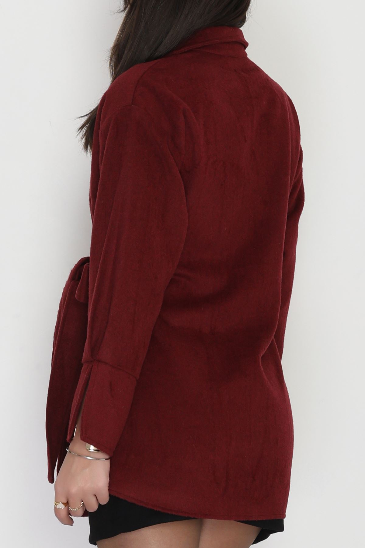 Bağlamalı Kruvaze Yaka Kaşe Ceket Bordo1 - 70993.1775.