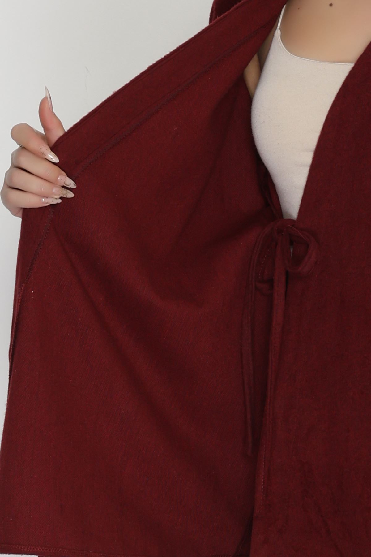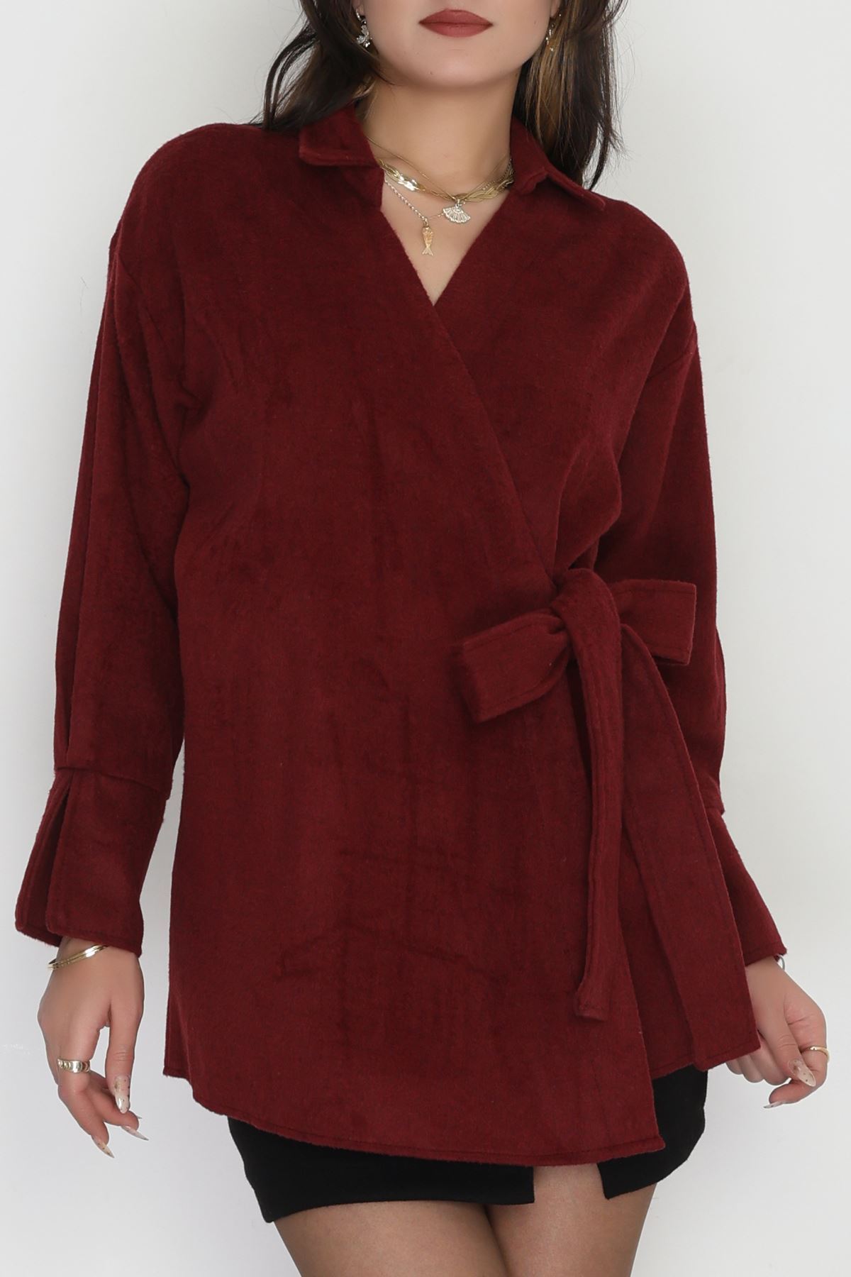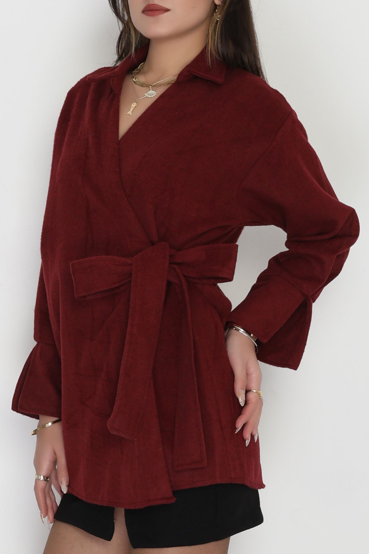 Bağlamalı Kruvaze Yaka Kaşe Ceket Bordo1 - 70993.1775.