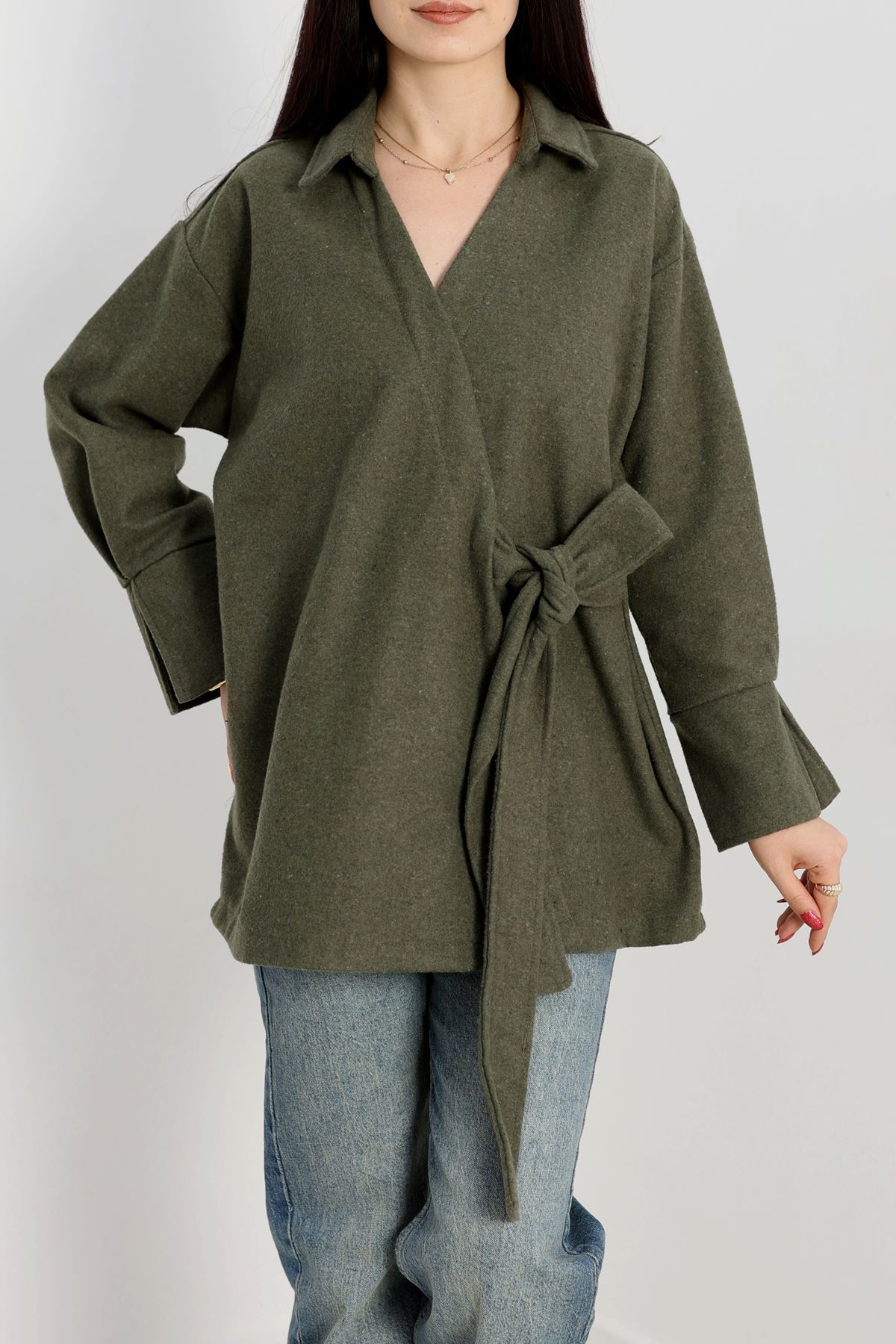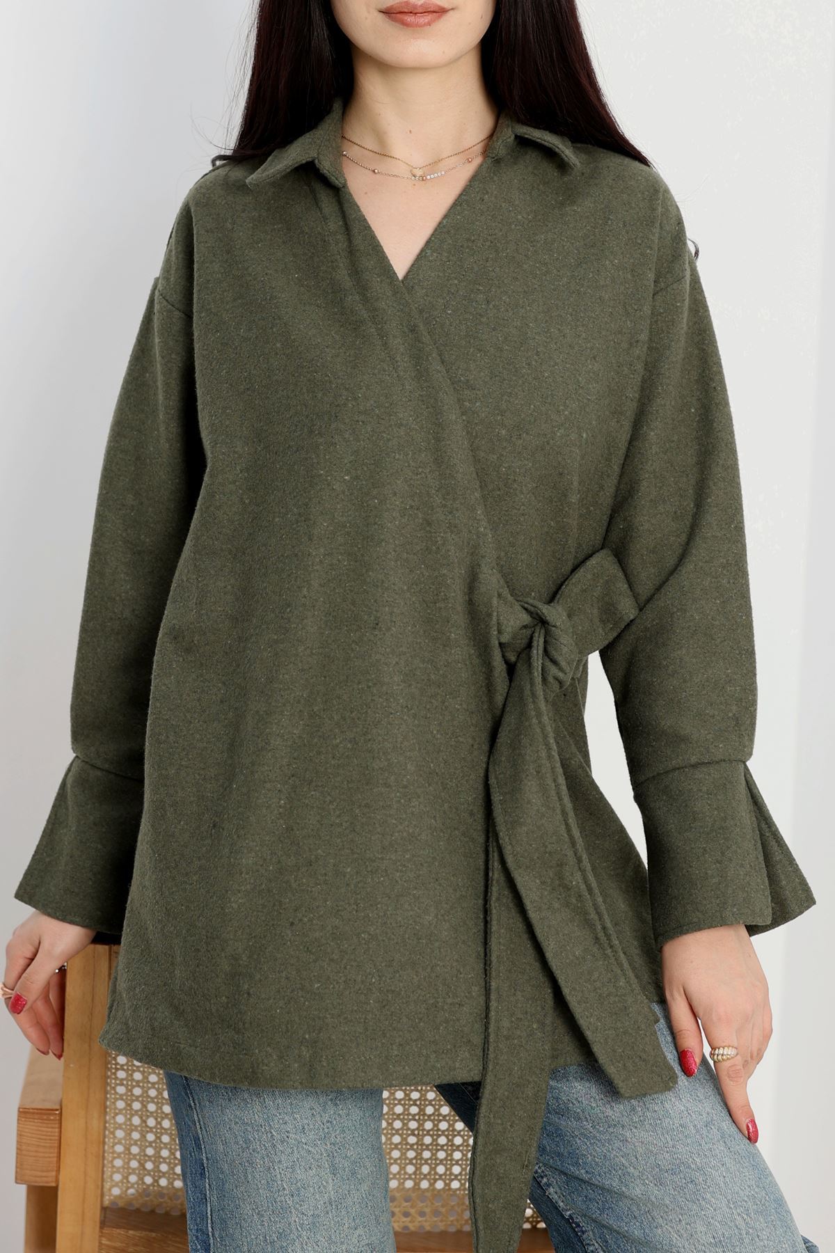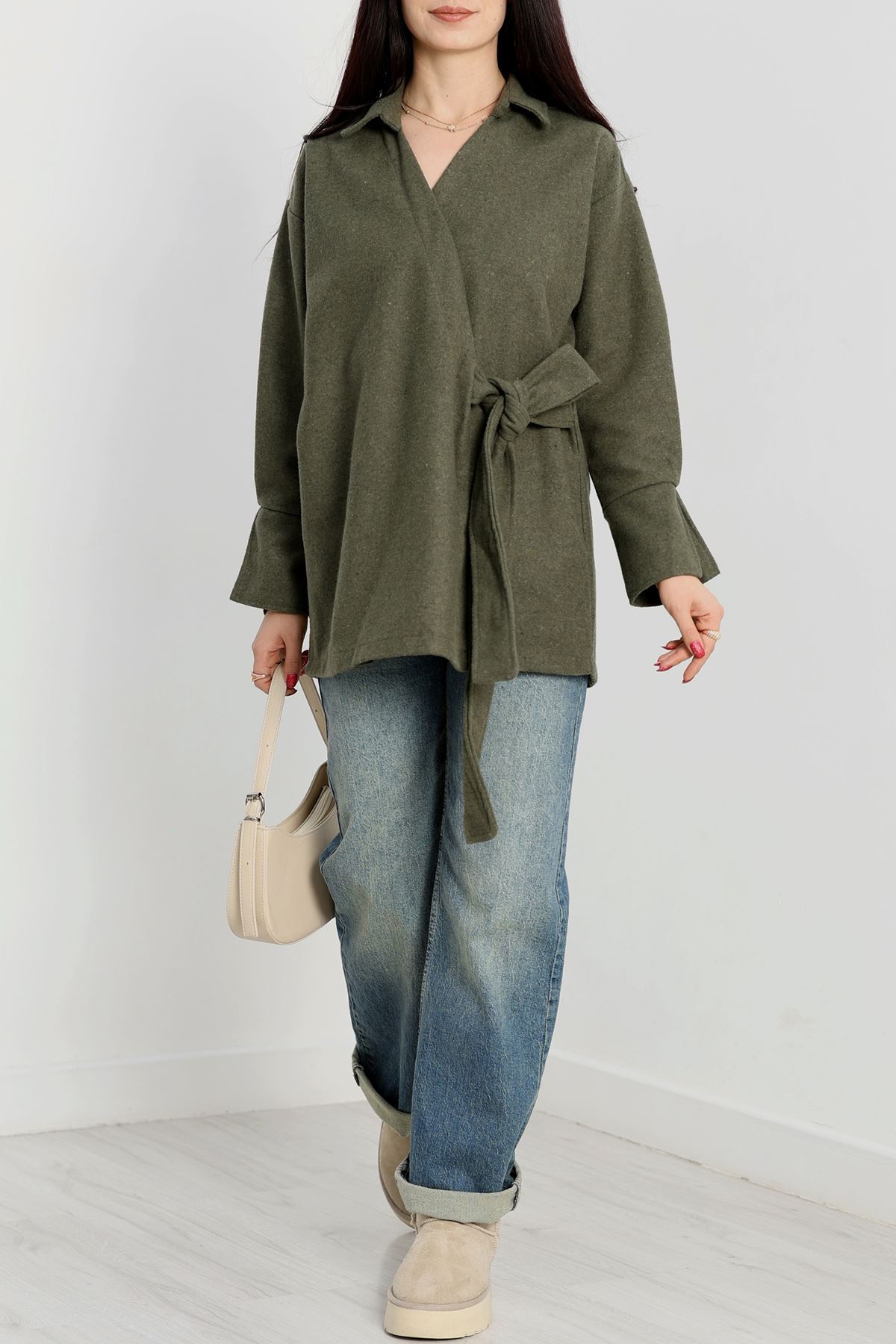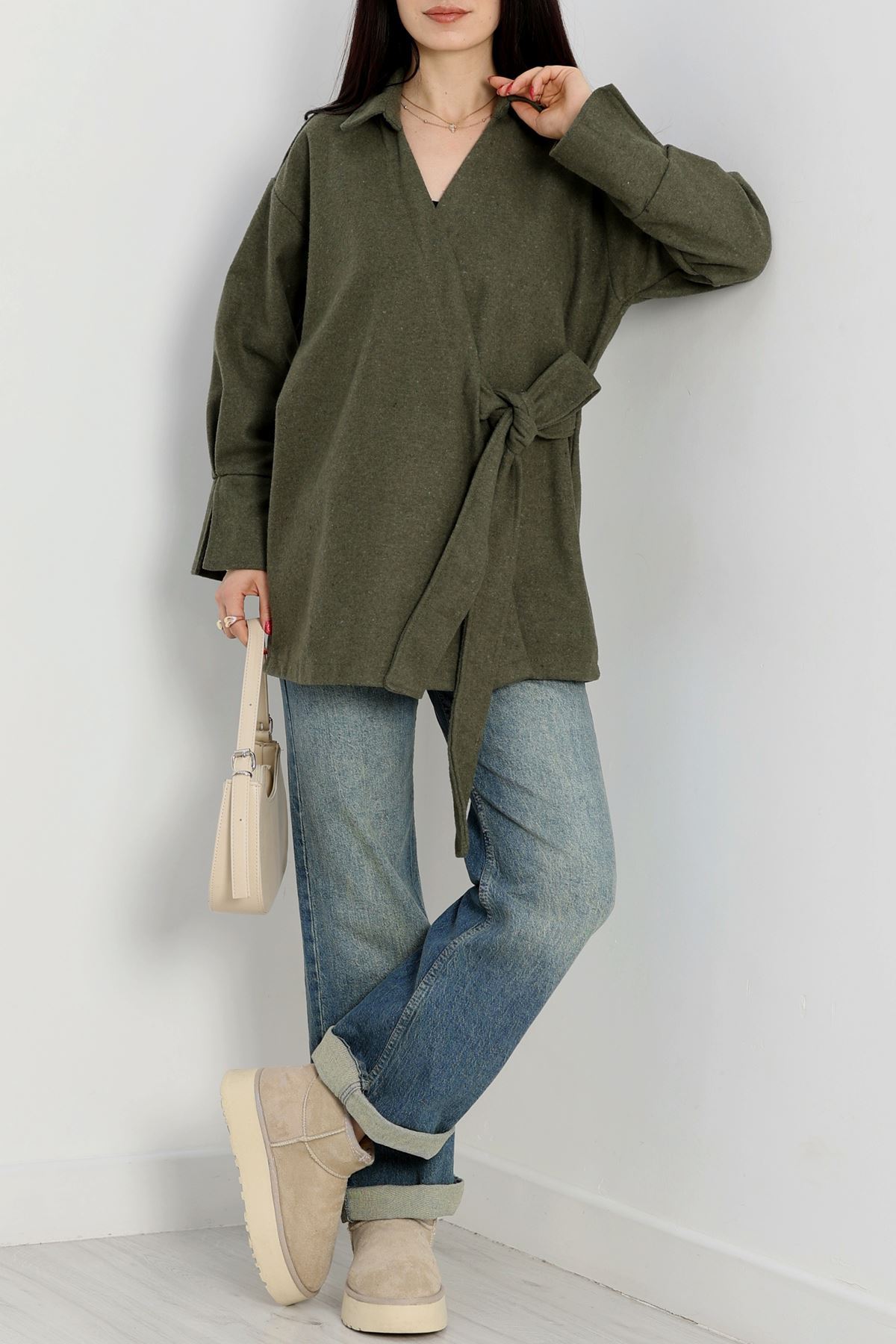 Bağlamalı Kruvaze Yaka Kaşe Gömlek Haki - 70993.1775.