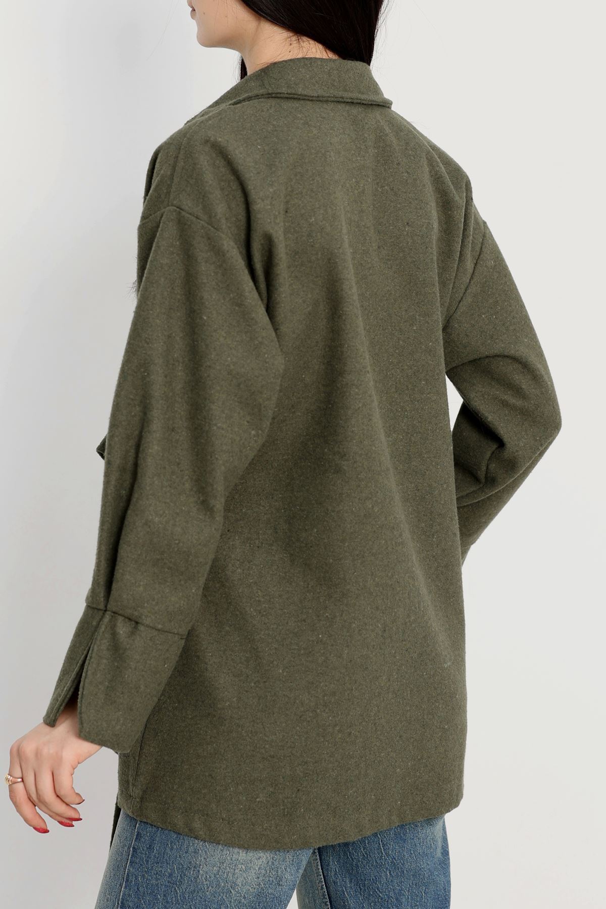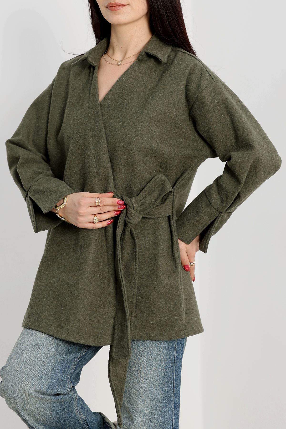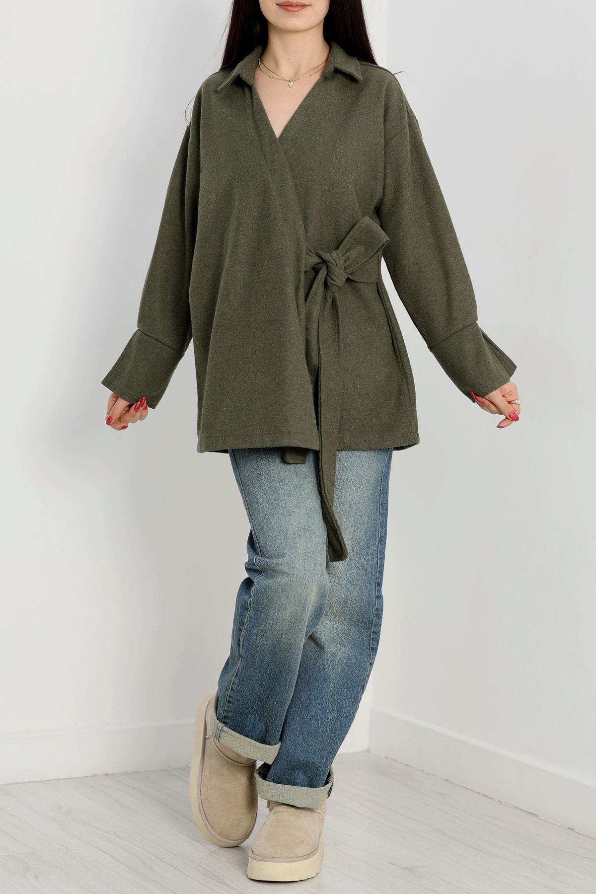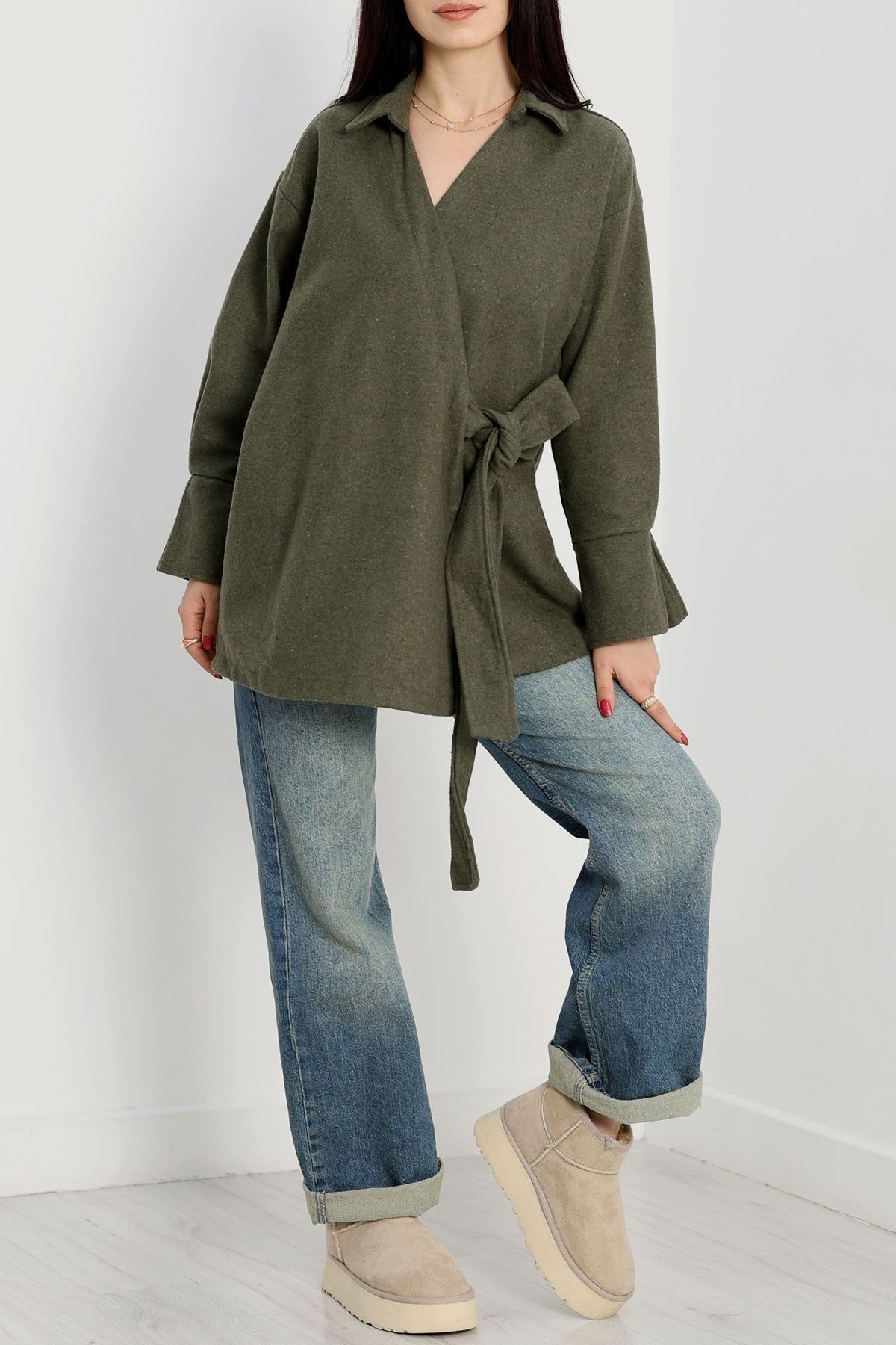 Bağlamalı Kruvaze Yaka Kaşe Gömlek Haki - 70993.1775.