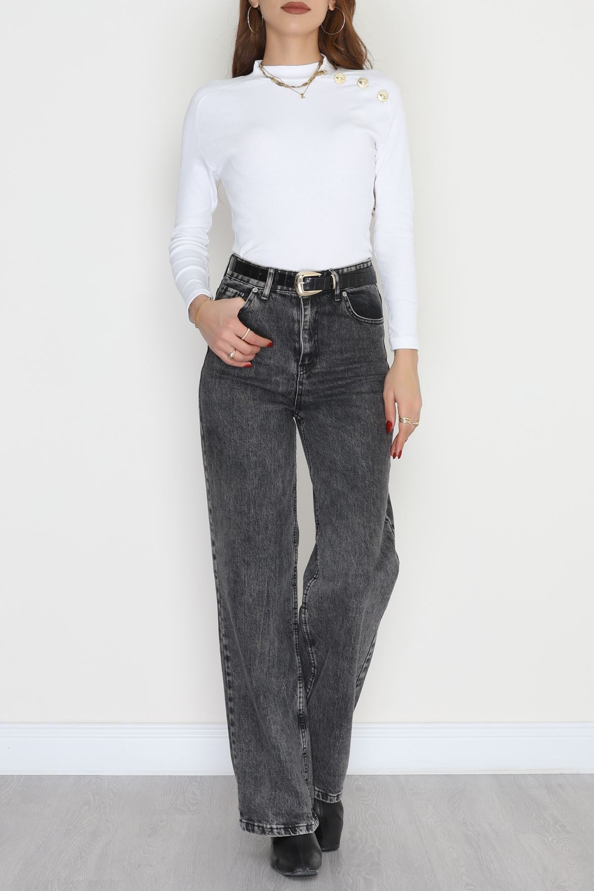 Balıkçı Yaka Düğme Detaylı Kaşkorse Body Beyaz - 70784.599.