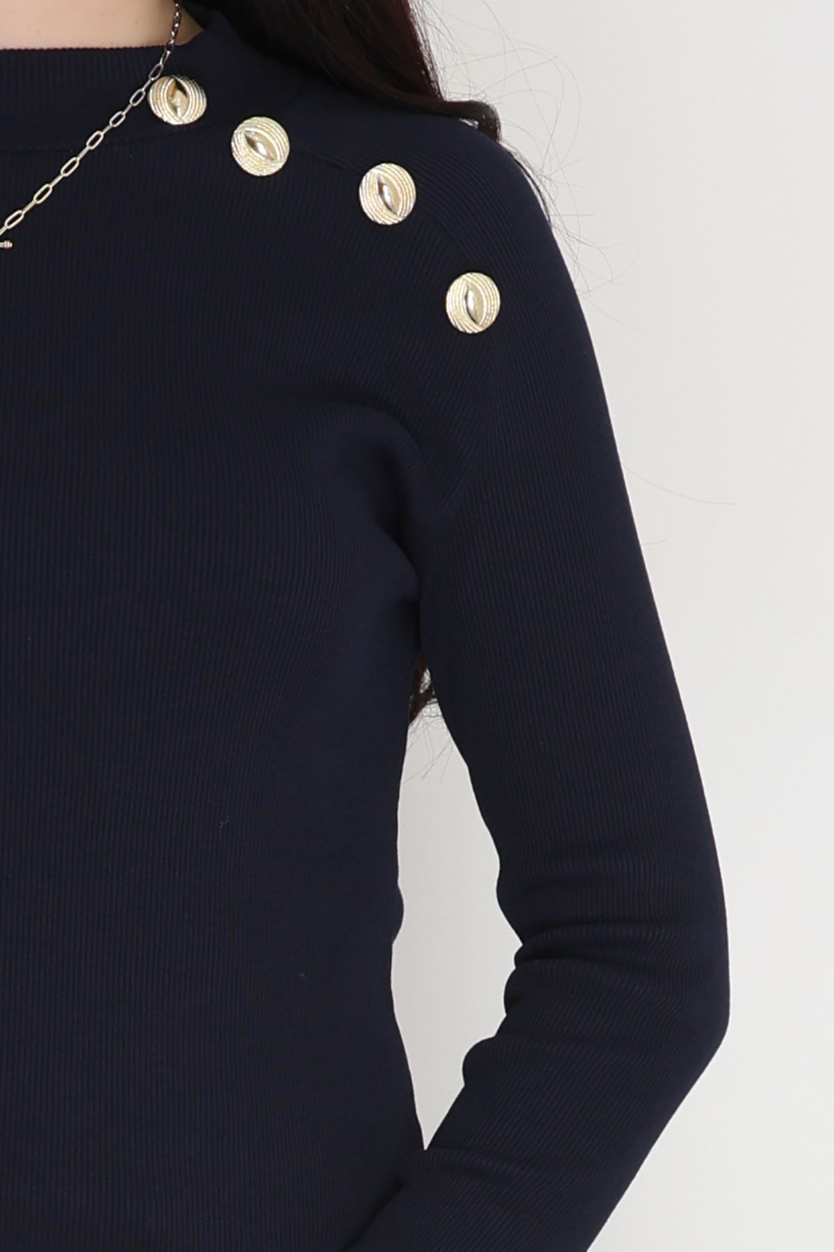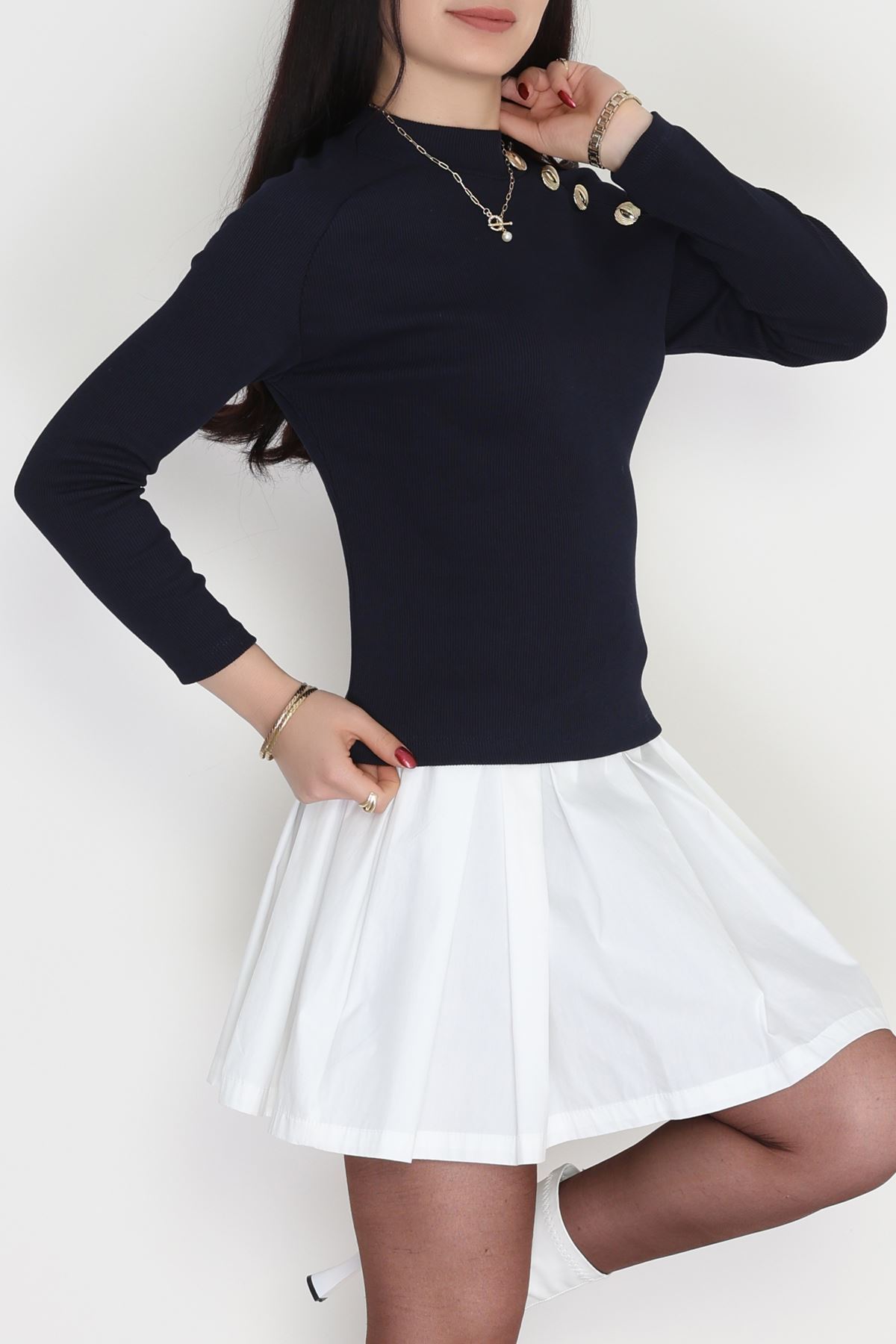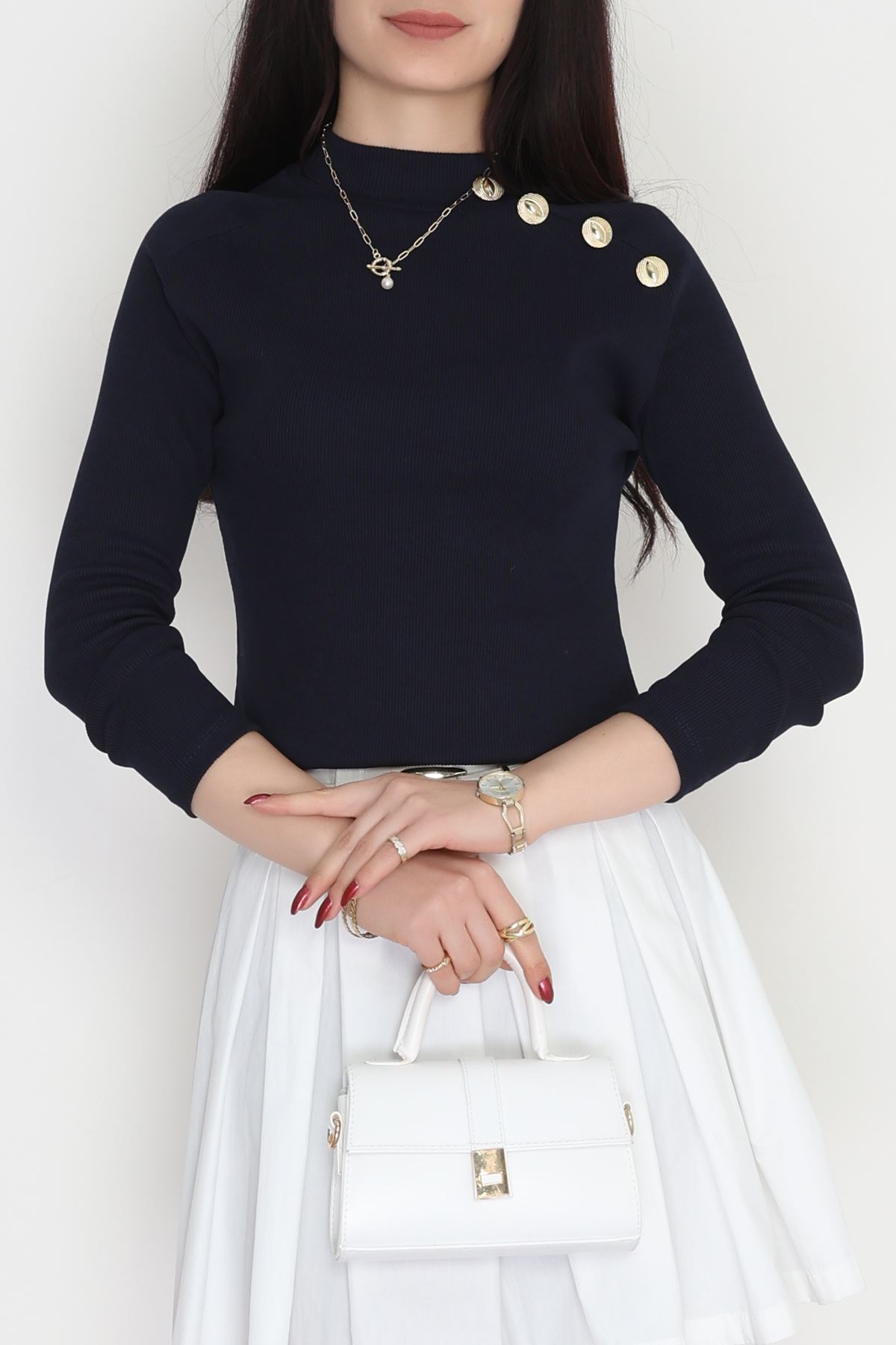 Balıkçı Yaka Düğme Detaylı Kaşkorse Body Lacivert - 70784.599.
