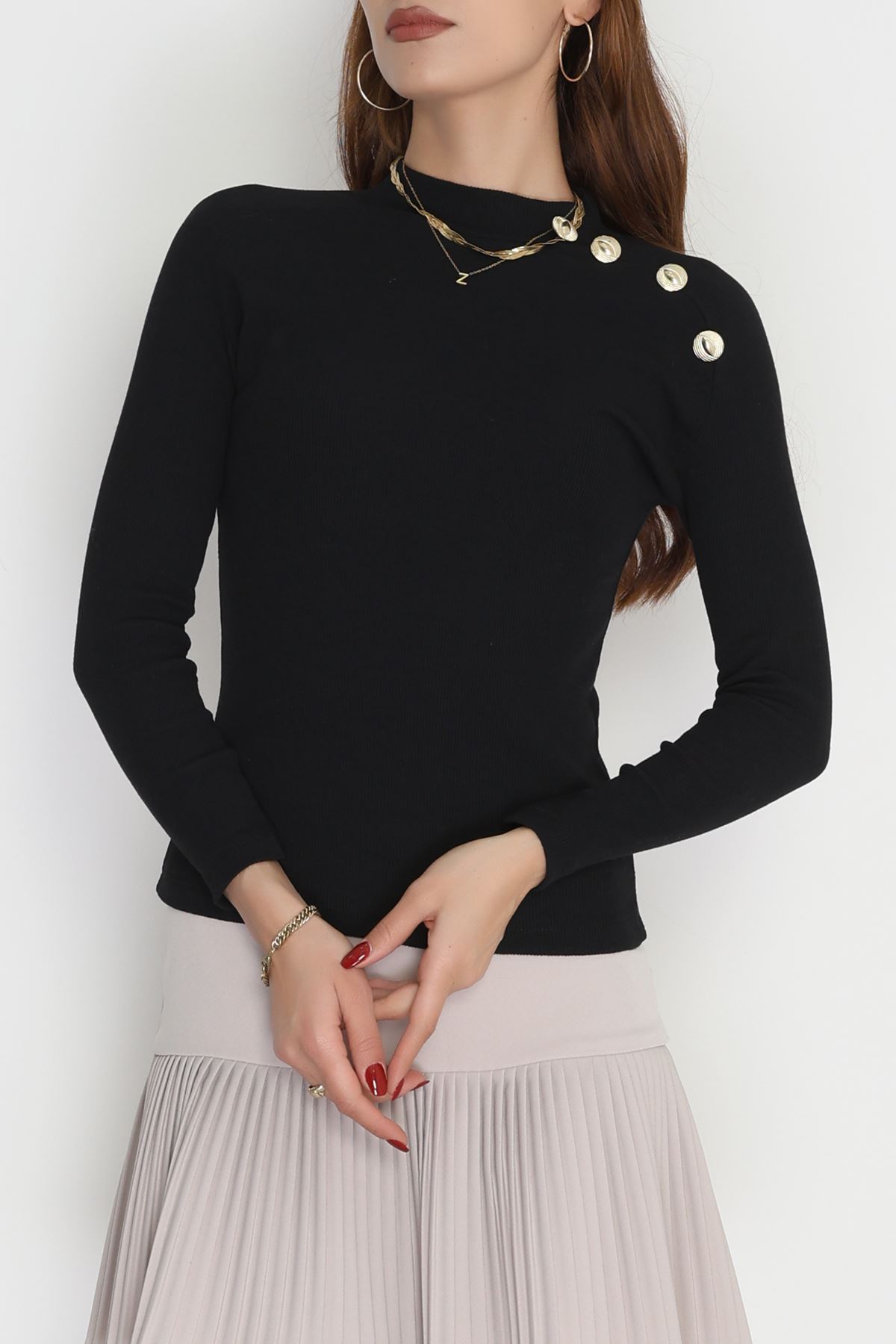 Balıkçı Yaka Düğme Detaylı Kaşkorse Body Siyah - 70784.599.