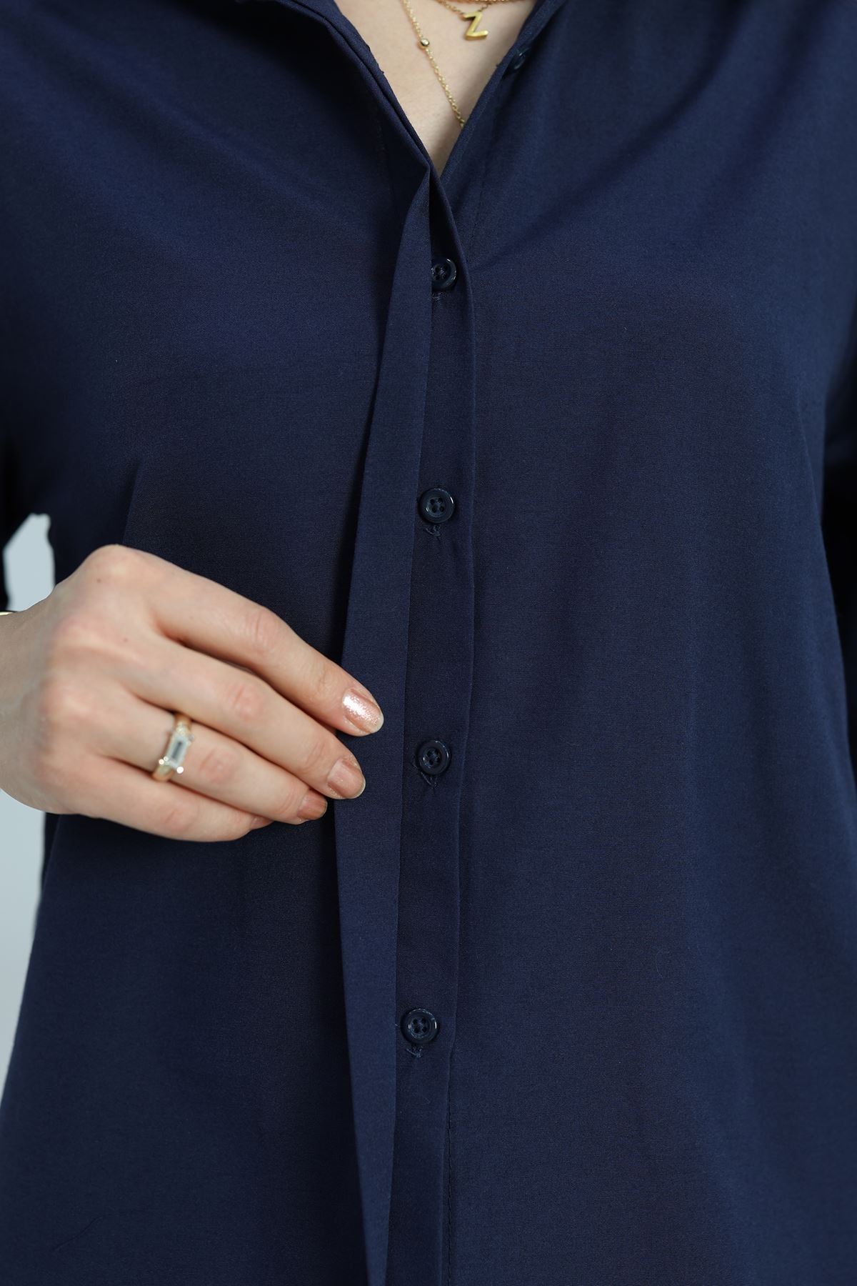 Geniş Kol Tek Cepli Oversize Terikoton Gömlek Lacivert - 2029.1949.