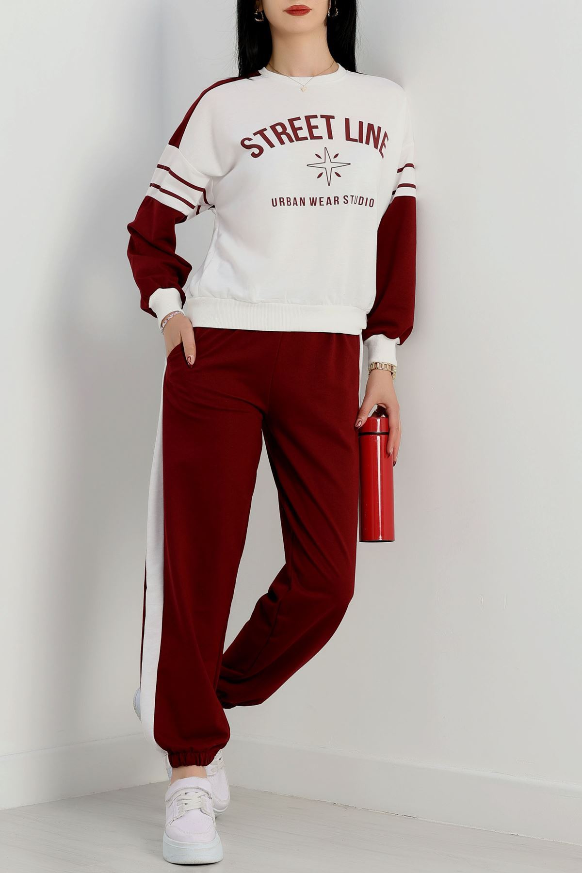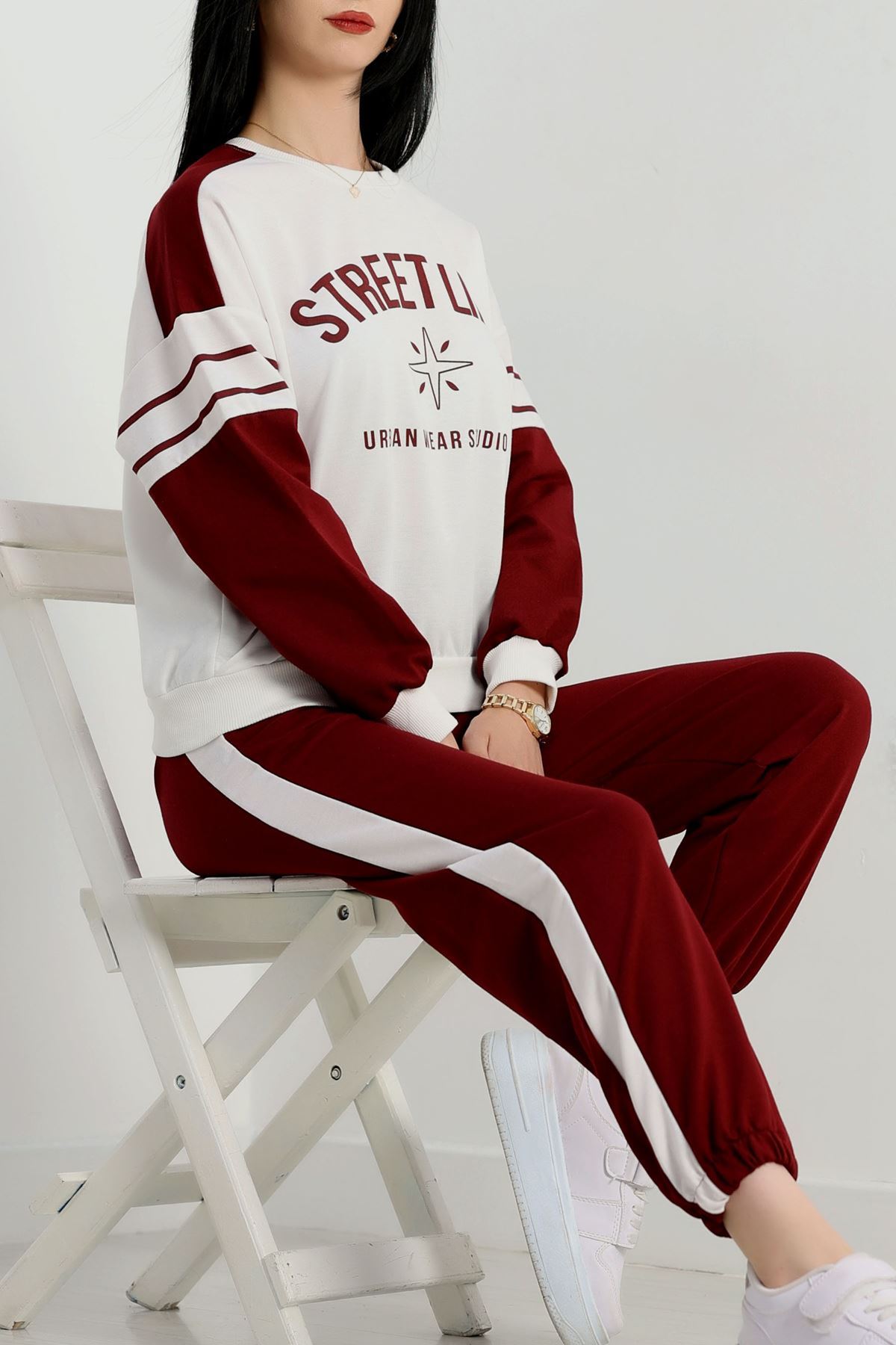 Baskılı 2 İplik Eşofman Takımı Bordo - 50736.1005.
