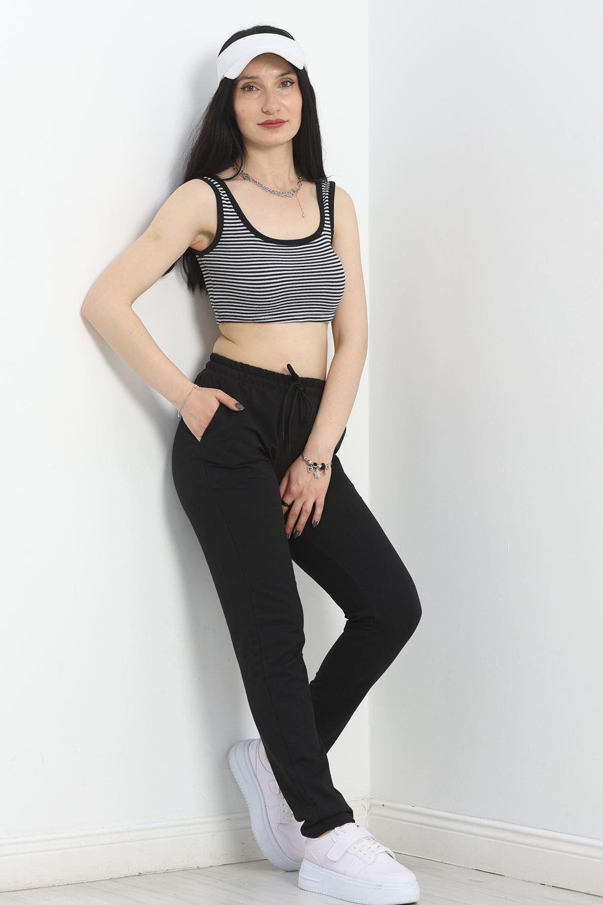 Bel Detaylı 2 İplik Eşofman Altı Siyah - 70169.1857.
